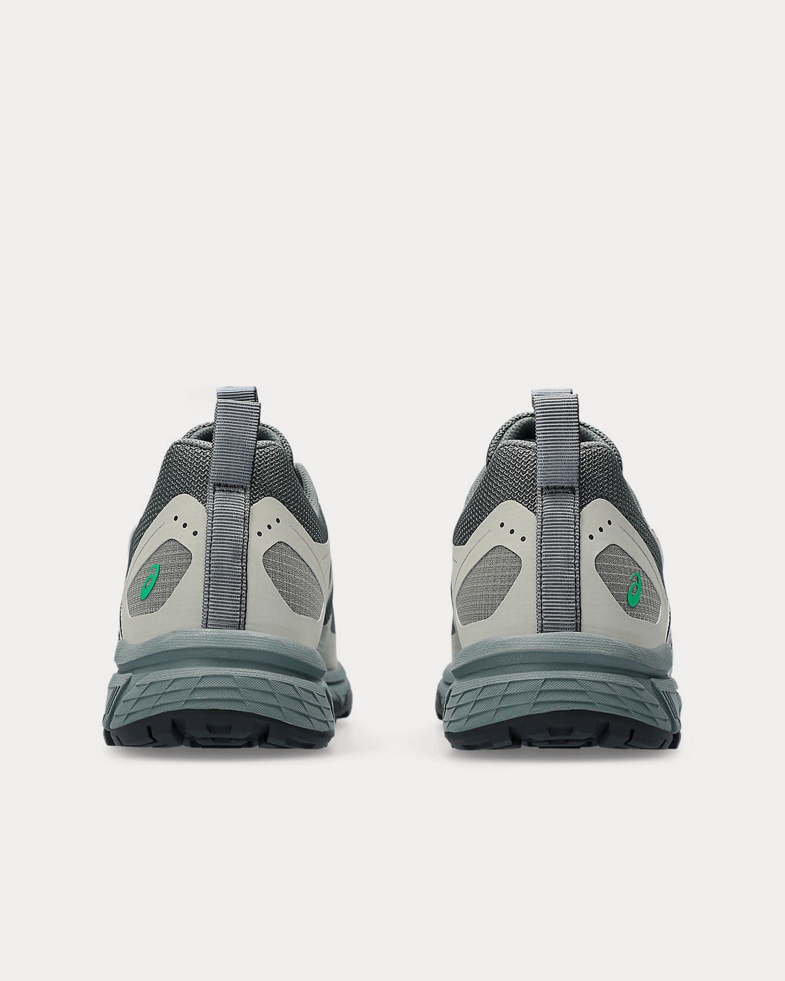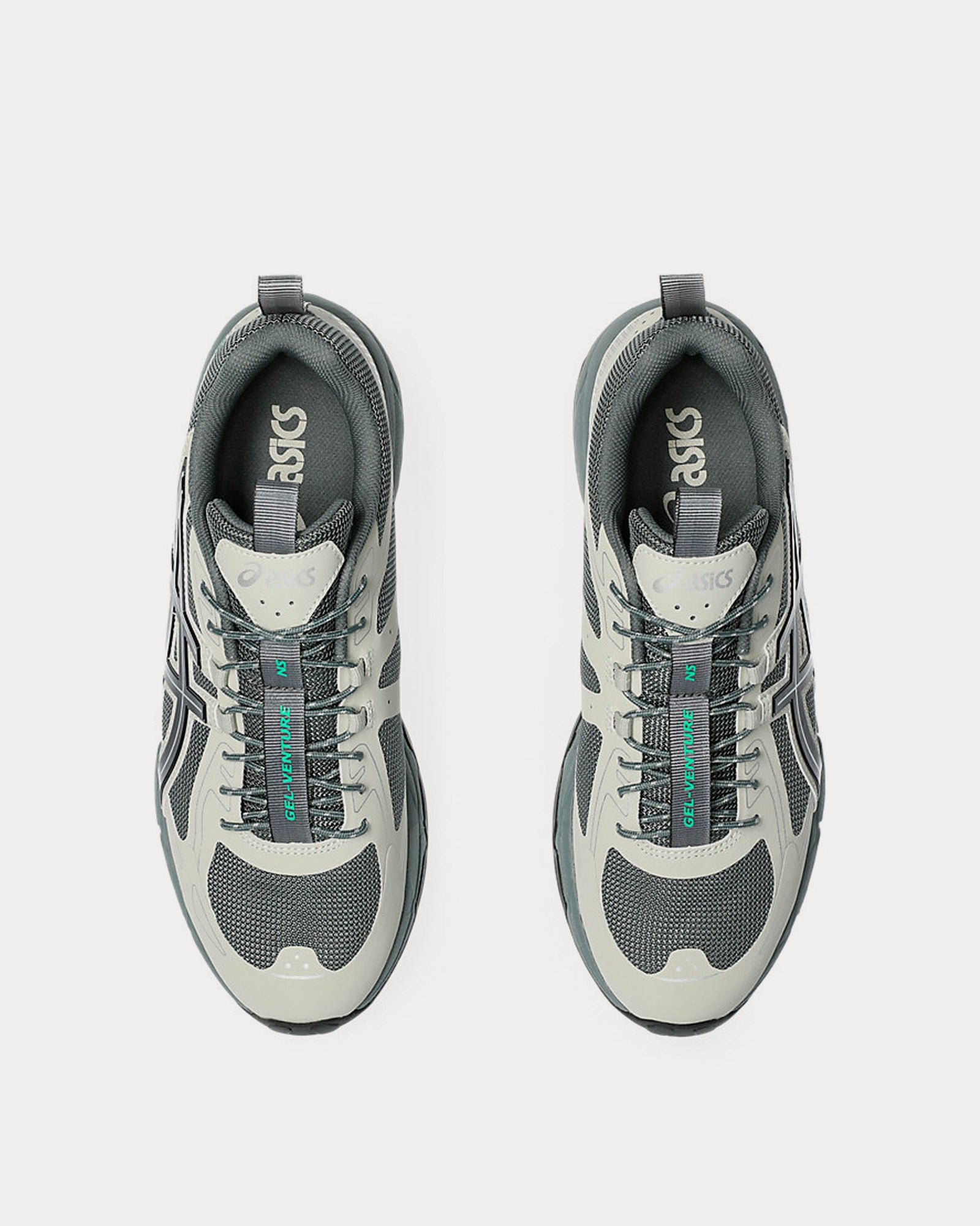 The men’s AsicsGel-Venture 6 NS low top sneakers in dark pewter and graphite grey are based on trail-running sportstyle designs and feature synthetic leather uppers, panels with targeted support, rearfoot GEL™ technology, and a trail-specific traction pattern.