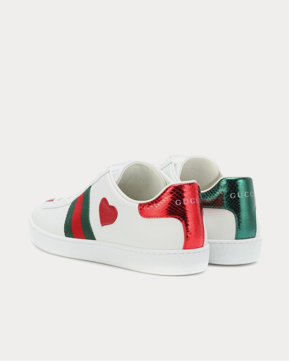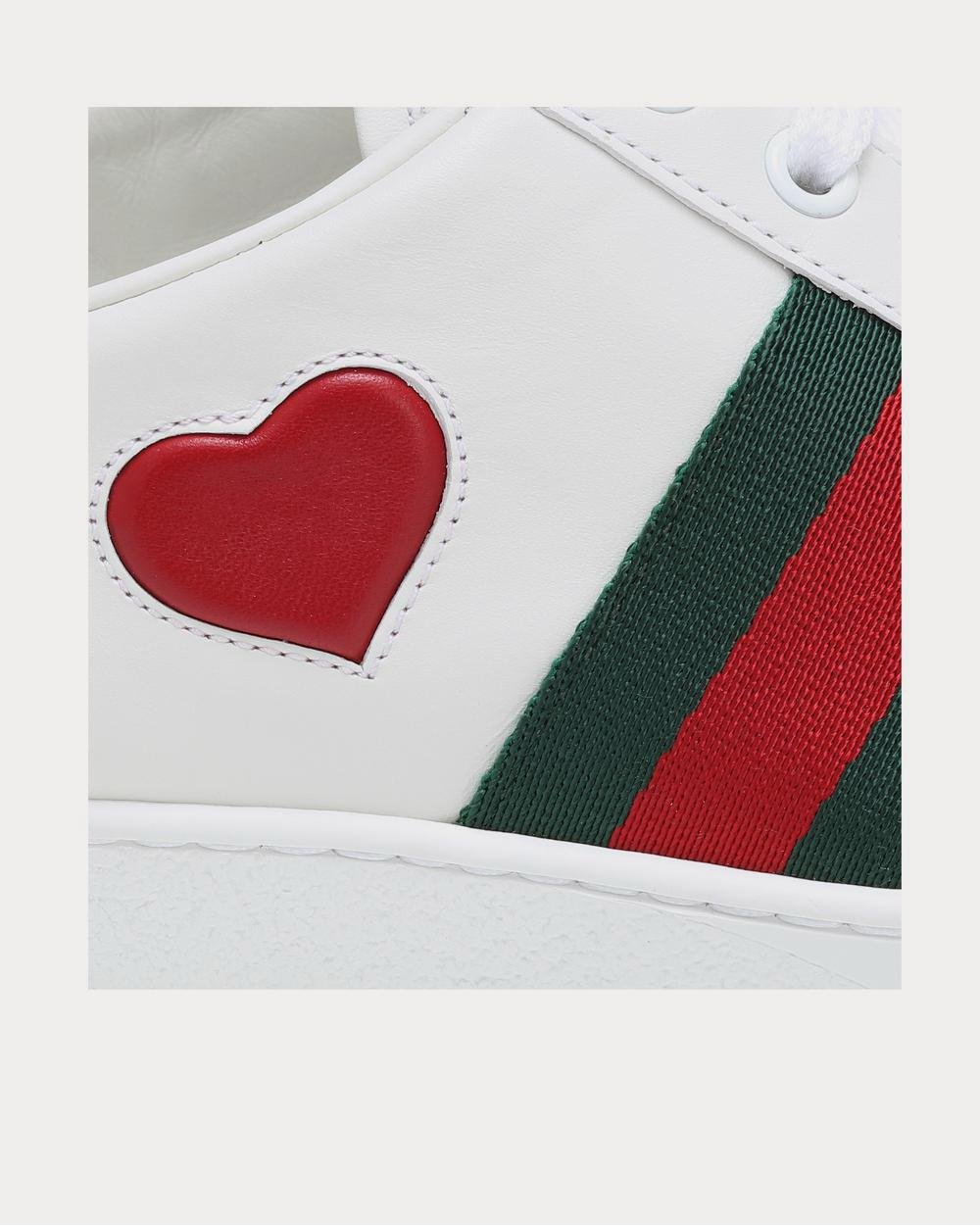 Les baskets Ace de Gucci sont devenues un modèle emblématique pour les connaisseurs, et nous avons un coup de cœur pour cette version romantique ornée d’un cœur pour la nouvelle saison. Ce modèle classique en cuir blanc est orné de la bande Web rayée rouge et verte emblématique de la marque et d’un empiècement en peau de serpent métallisé à l’arrière. Ce modèle décontracté et luxueux se porte aussi bien avec une minijupe qu’avec un jean.