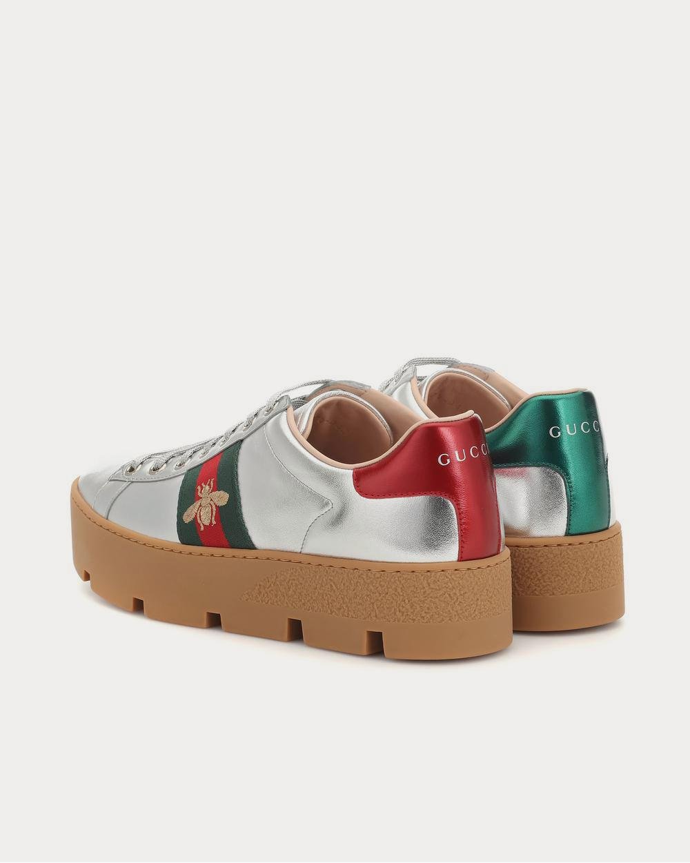 Baskets basses argentées à plateforme en cuir Gucci Ace
