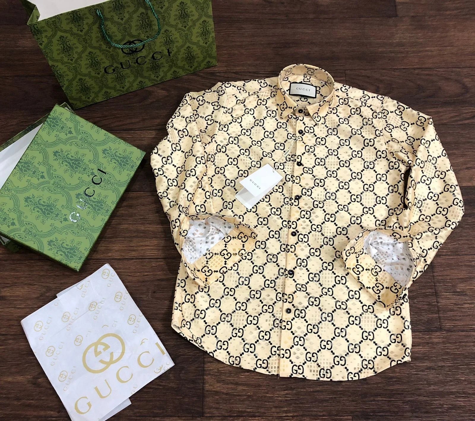 GUCCI || Chemise à manches longues avec logo GG et monogramme