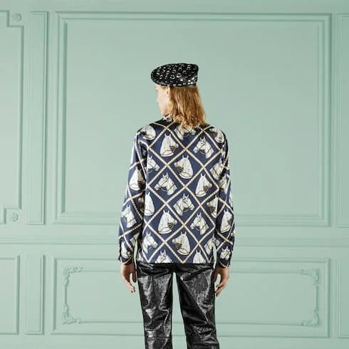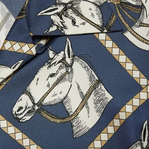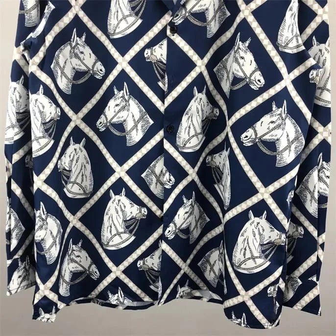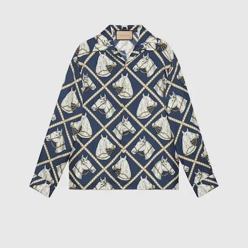 Cette chemise GUCCI Horse Serie est le rêve de toute personne avant-gardiste. Confectionnée dans une palette de bleu et de marron, elle dégage une impression de luxe et de sophistication. Confectionnée avec les meilleurs matériaux, elle arbore le motif cheval emblématique de la marque, ce qui en fait un incontournable de toute garde-robe. Sublimez votre style avec cette pièce intemporelle.
