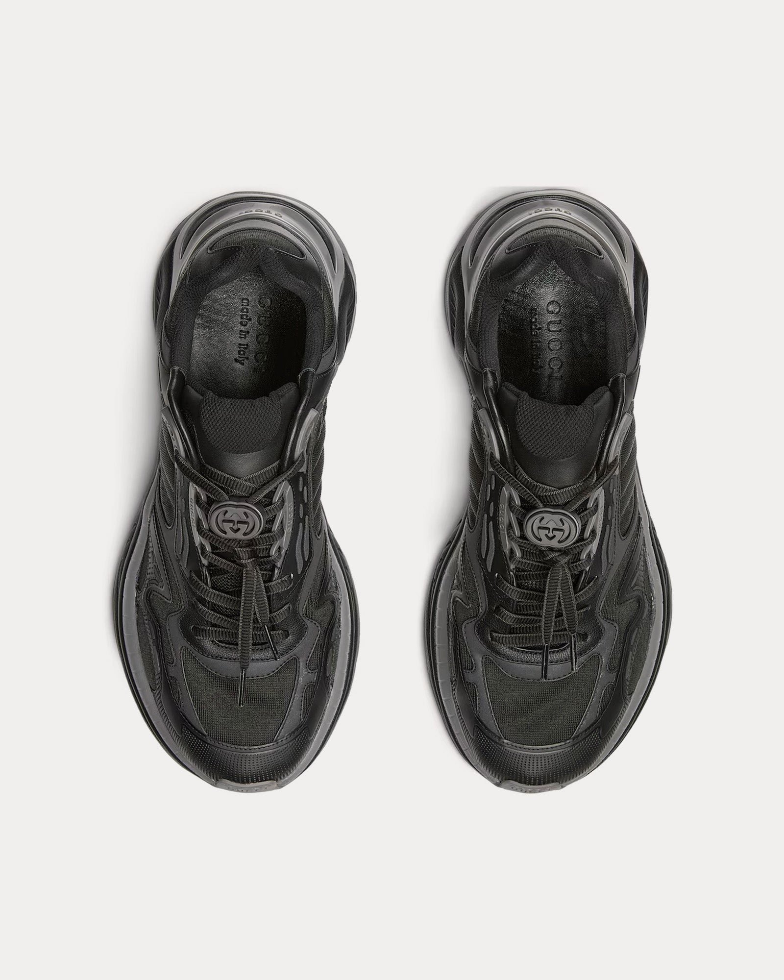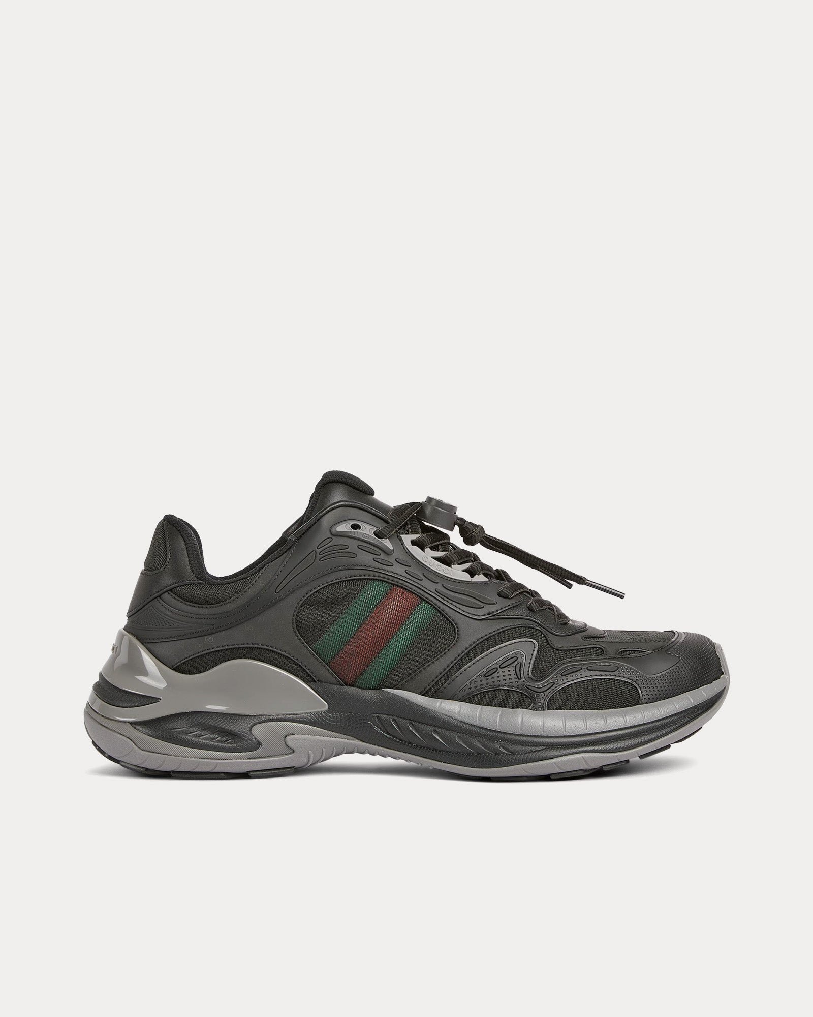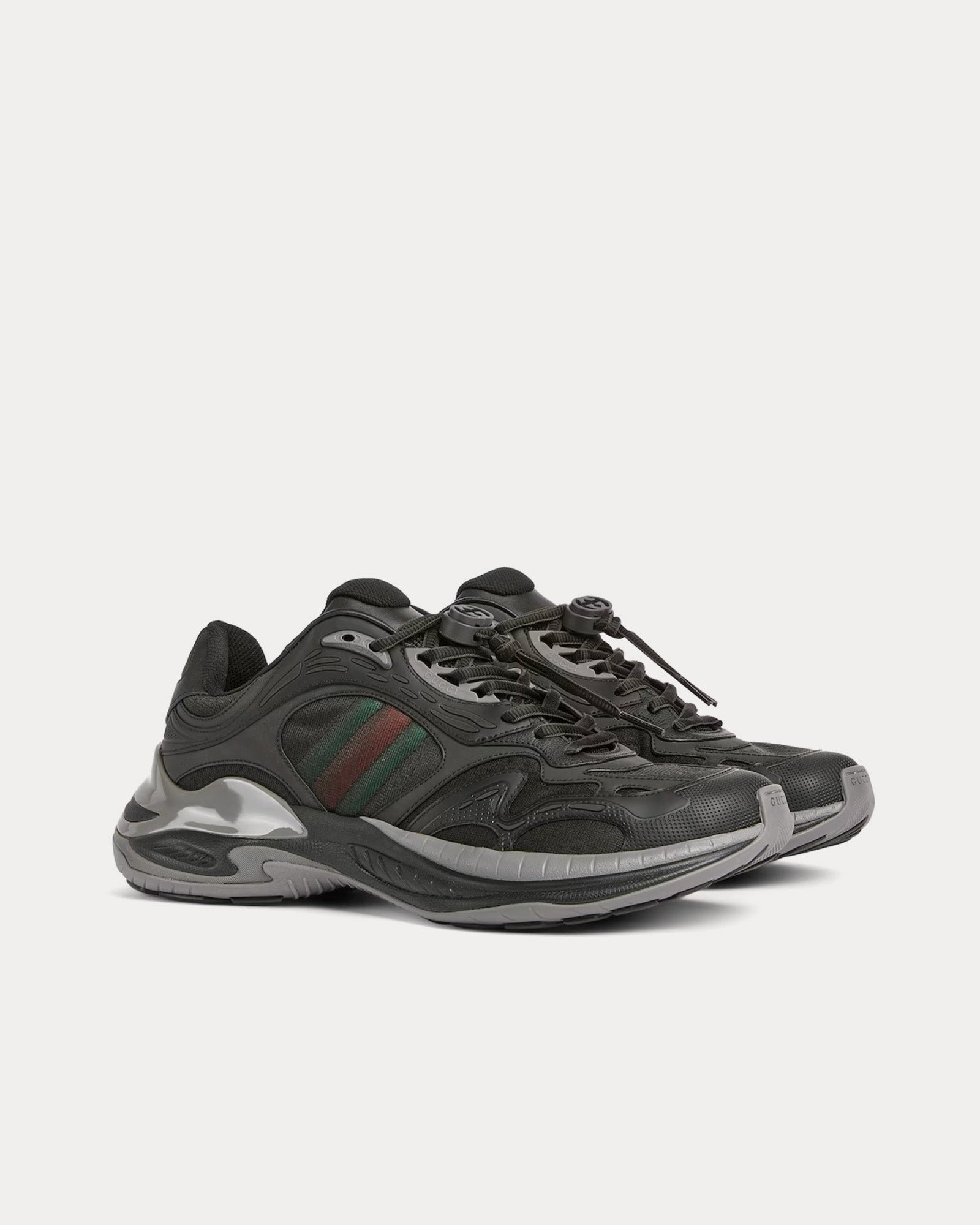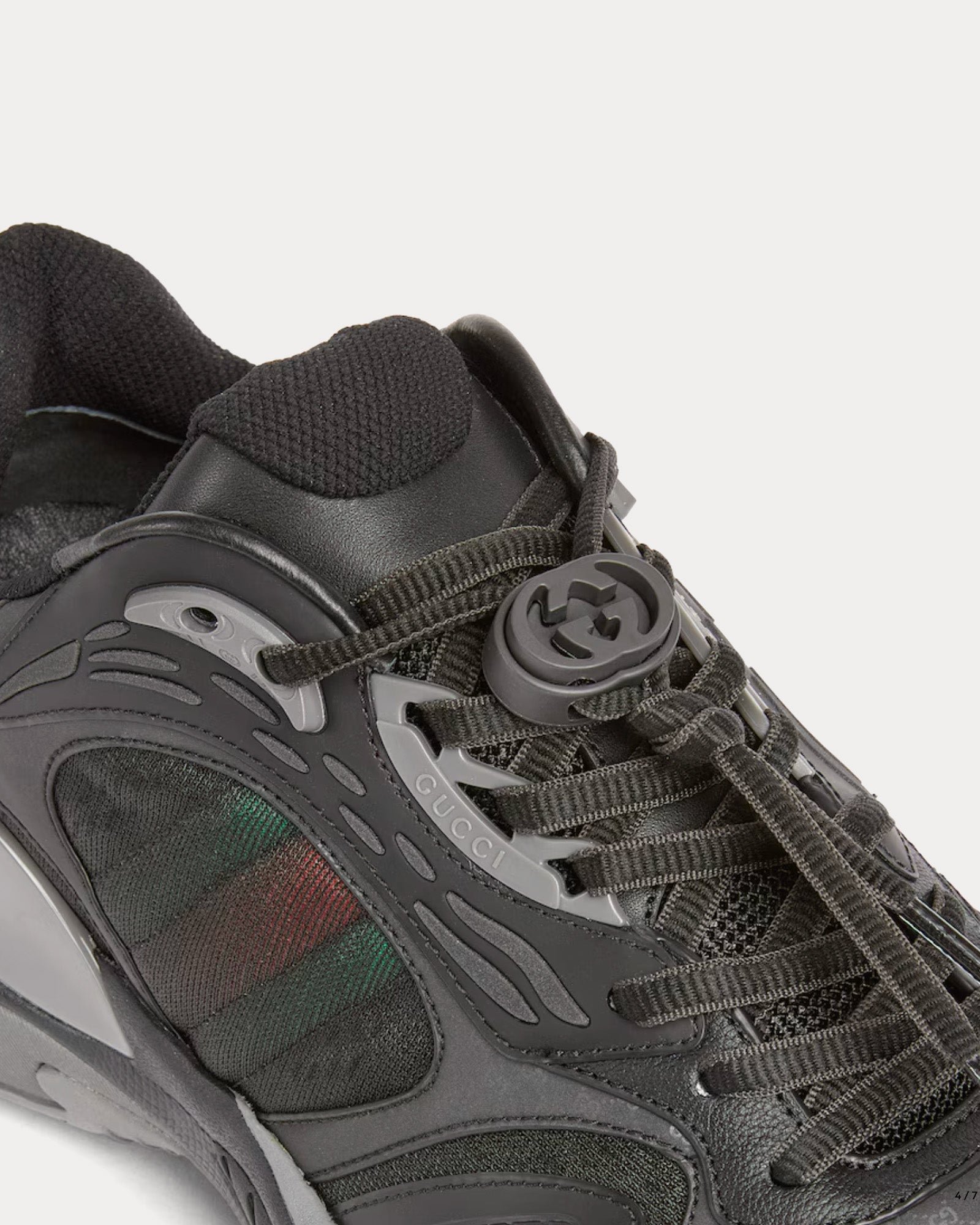 L’empeigne associe mesh respirant et empiècements en cuir, créant une esthétique à la fois raffinée et sportive. Les détails réfléchissants ornés du logo GG ajoutent une touche subtile, tandis que le détail Web rembourré renforce le confort et l’identité de la marque.