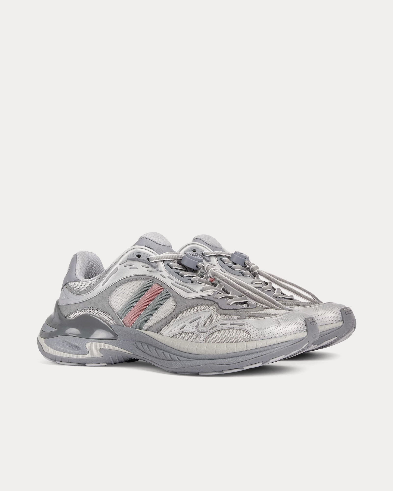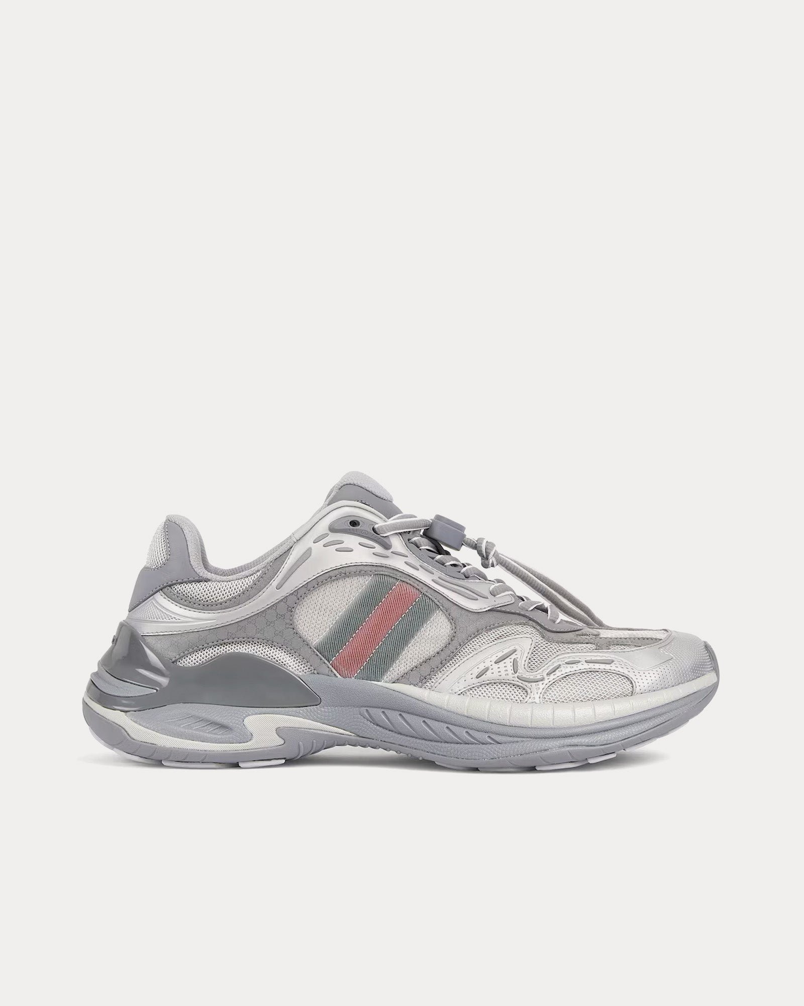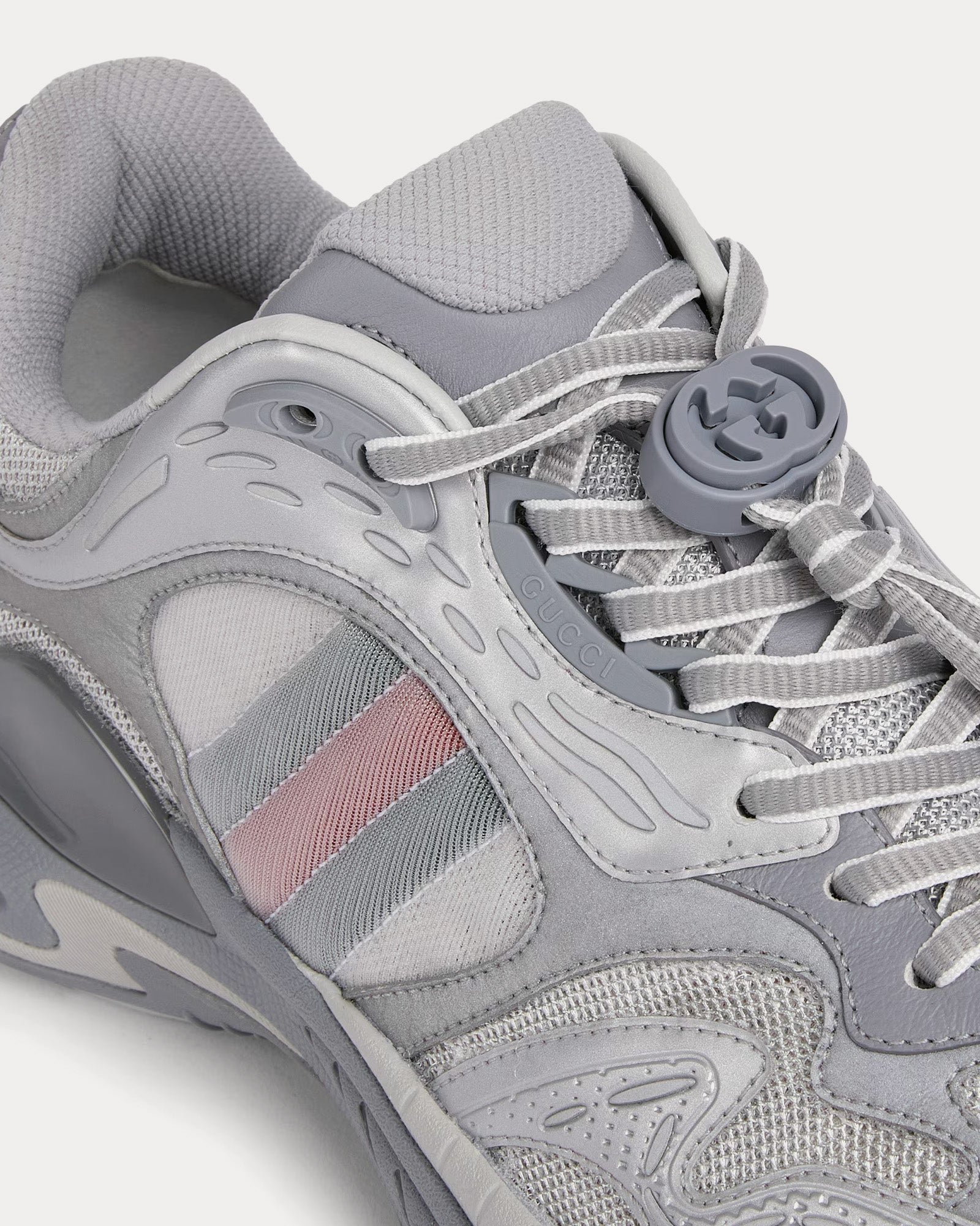 L’empeigne associe mesh respirant et empiècements en cuir, créant une esthétique à la fois raffinée et sportive. Les détails réfléchissants ornés du logo GG ajoutent une touche subtile, tandis que le détail Web rembourré renforce le confort et l’identité de la marque.
