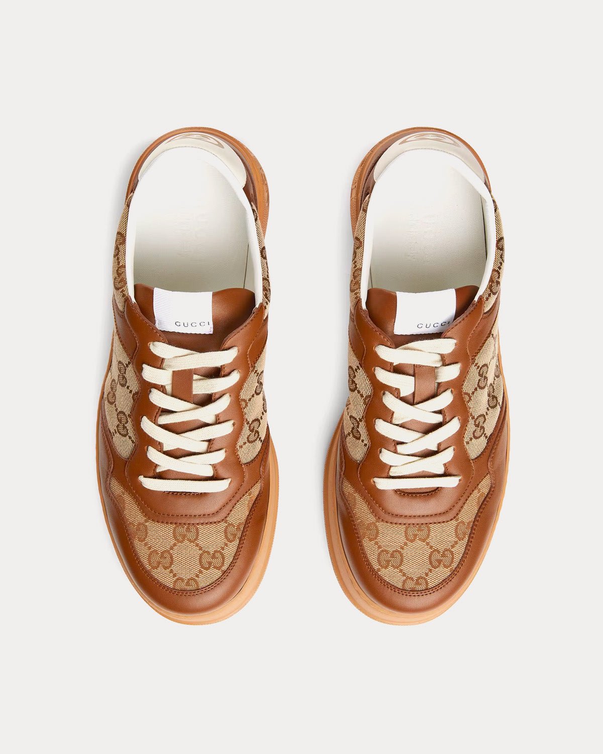 Baskets basses Gucci en toile GG beige et cuir ébène marron