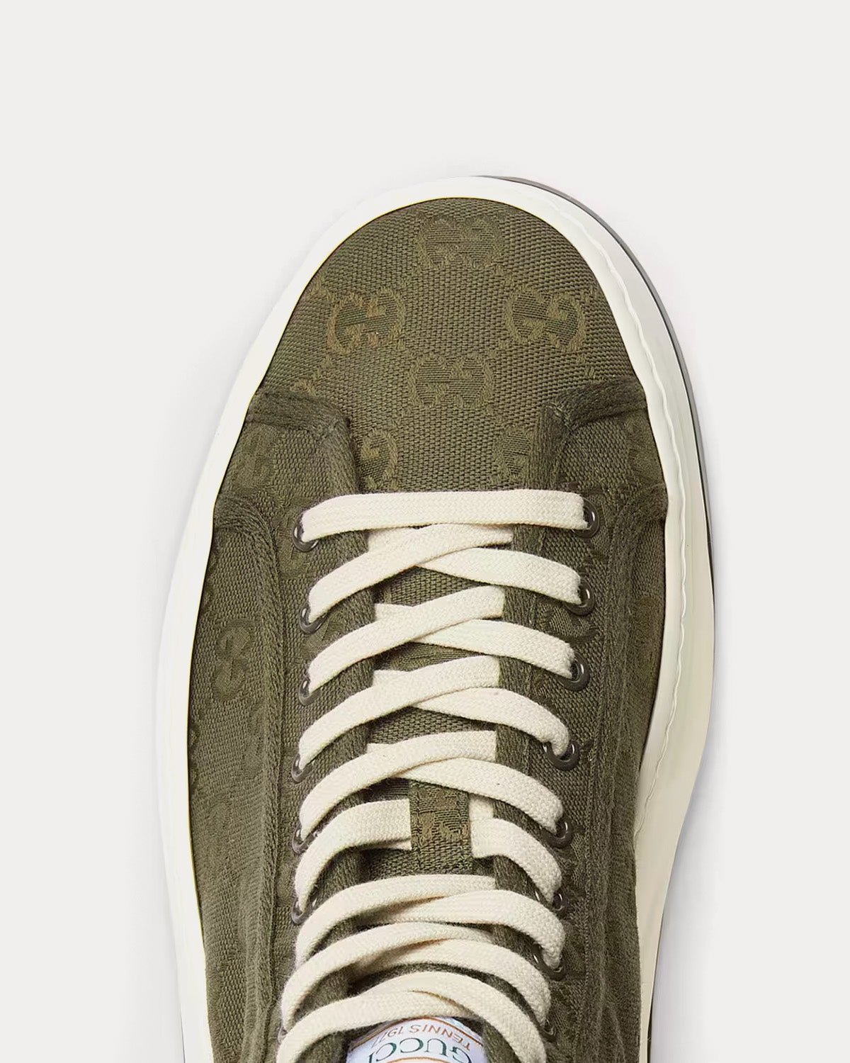 Les baskets montantes pour hommes GucciGG Canvas en toile GG verte originale présentent une silhouette de basket inspirée des courts de tennis, des bordures en gros-grain blanc et des semelles en caoutchouc avec adhérence en G entrelacés. Fabriquées en Italie.