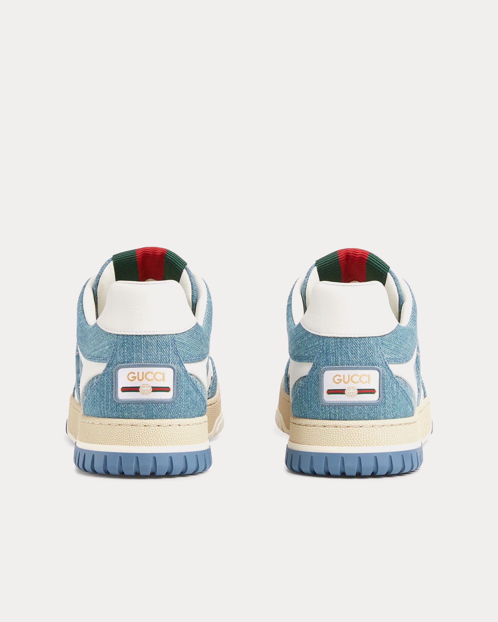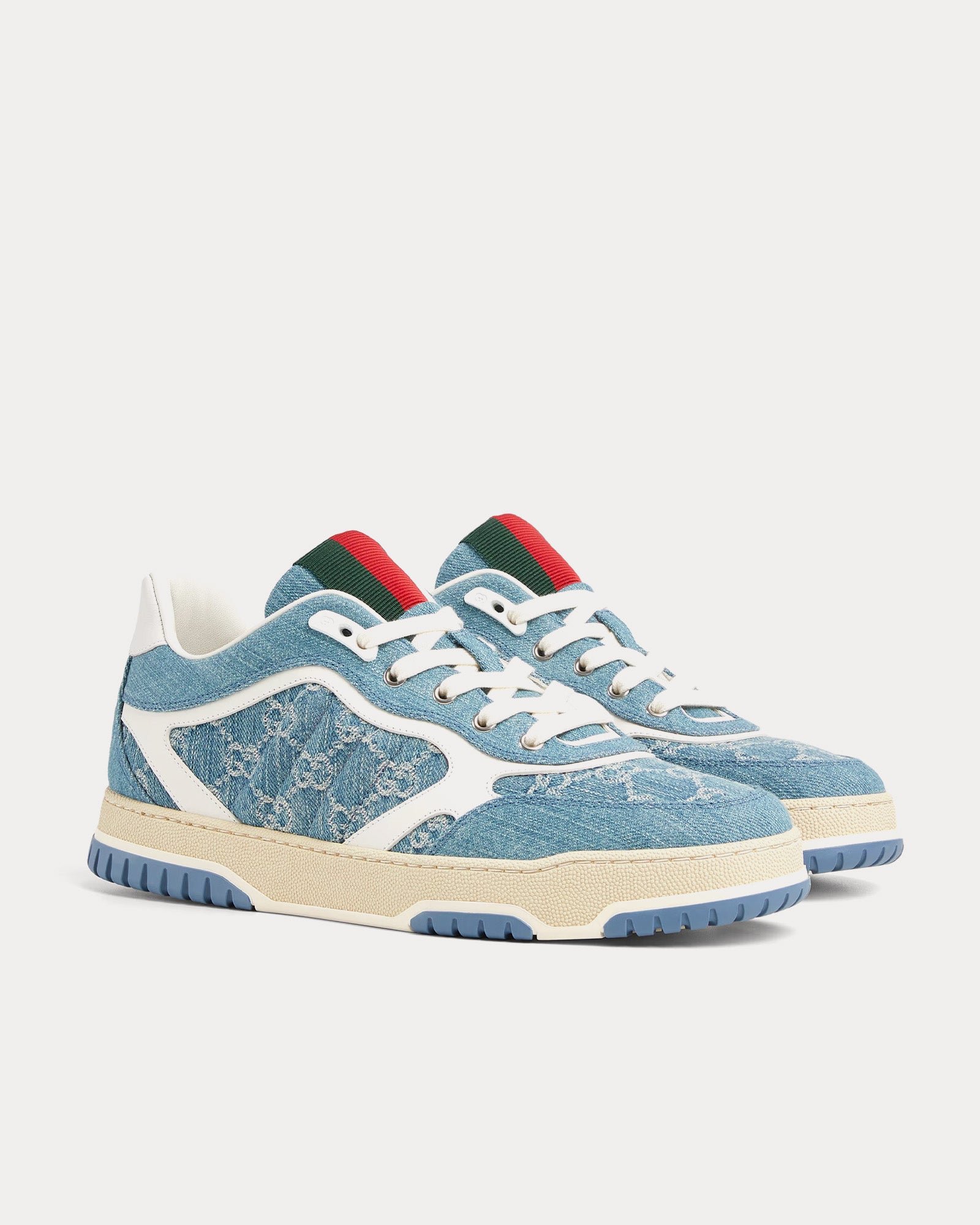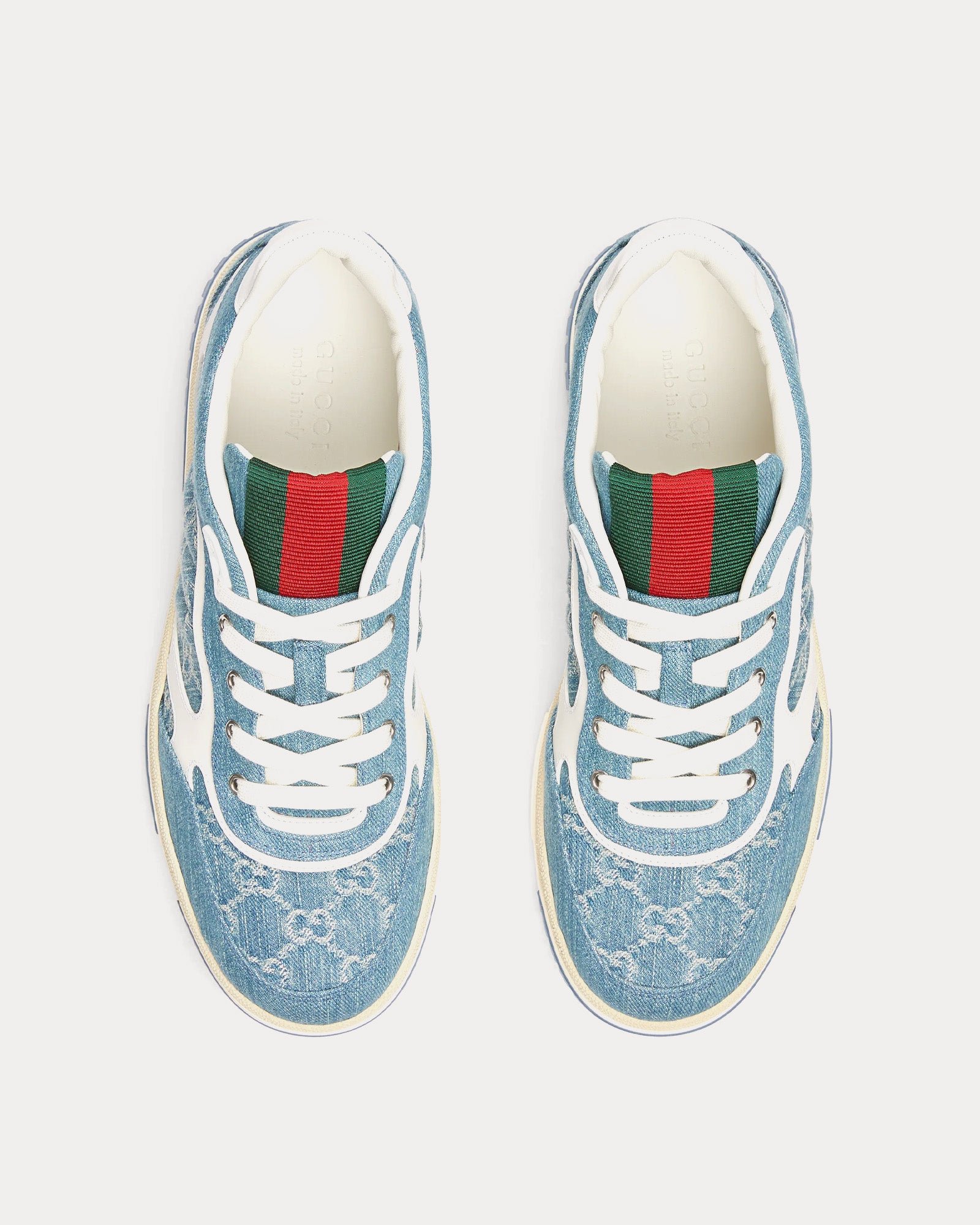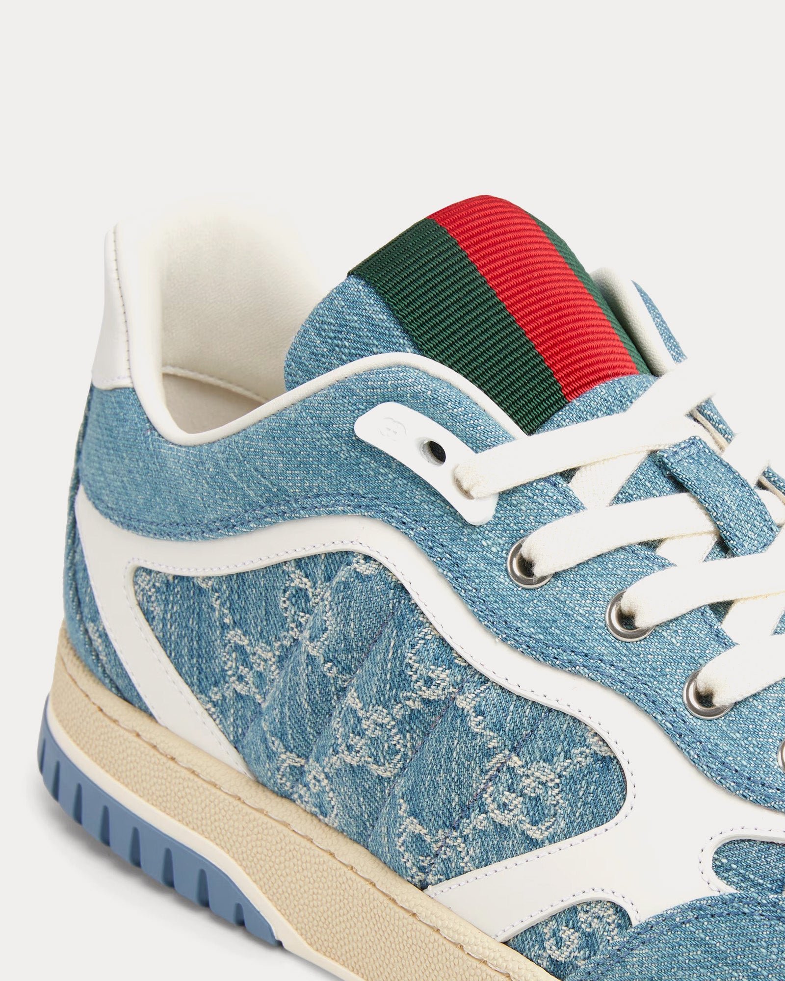 Confectionnées en Italie à partir de denim GG bleu clair haut de gamme, la tige présente une bordure en cuir blanc impeccable pour un contraste saisissant et une finition raffinée. Une languette Web verte et rouge remarquable rappelle les rayures emblématiques de Gucci tout en les redéfinissant comme un détail central.