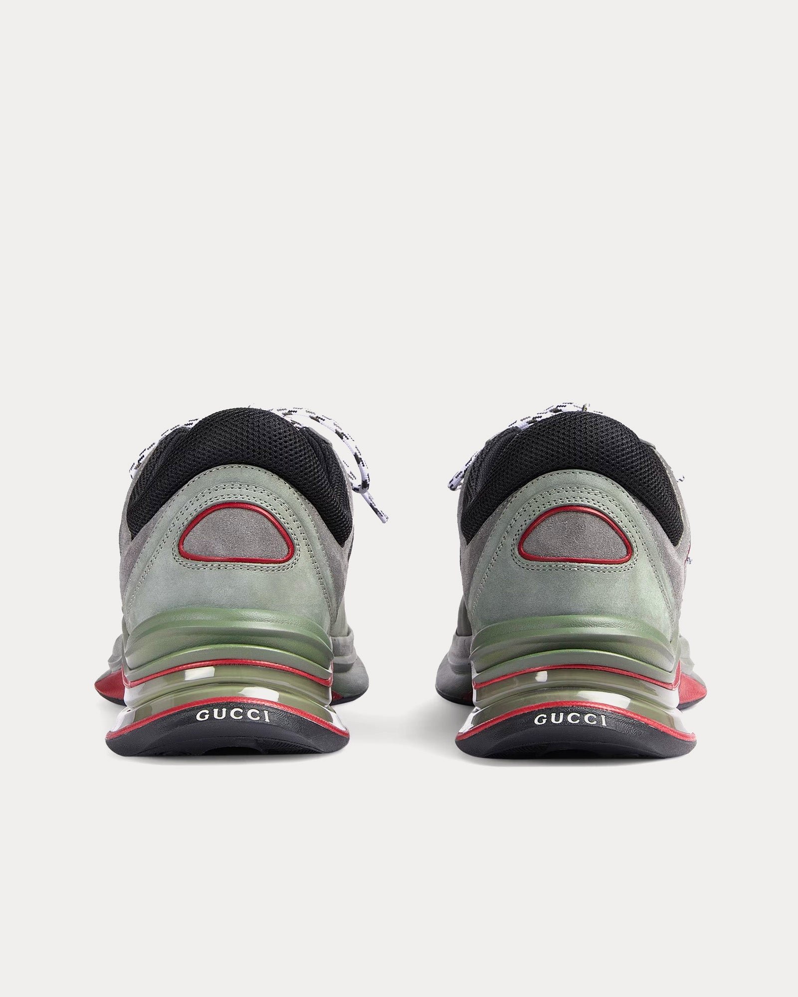 Les baskets basses pour homme Gucci Run GG gris et vert poudré sont confectionnées en daim et présentent des bordures en tissu perforé, l’inscription « Gucci » à l’arrière, un détail G entrelacé contrastant, une semelle en caoutchouc bicolore, une boucle à l’arrière et des lacets. Fabriquées en Italie.