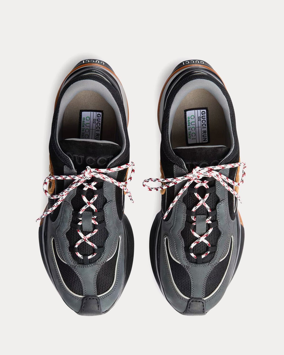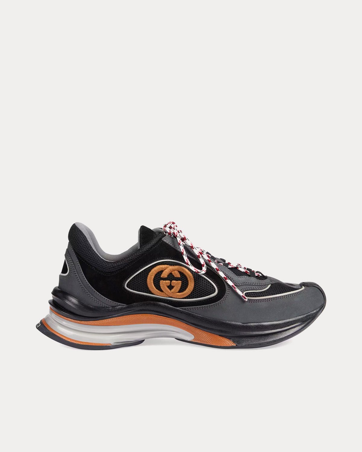 Les baskets basses Gucci Run pour homme en daim gris et finitions en daim noir s’inspirent des baskets sportives et arborent un G entrelacé, une semelle en caoutchouc bicolore, une fermeture à lacets et un talon bas. Fabriquées en Italie.