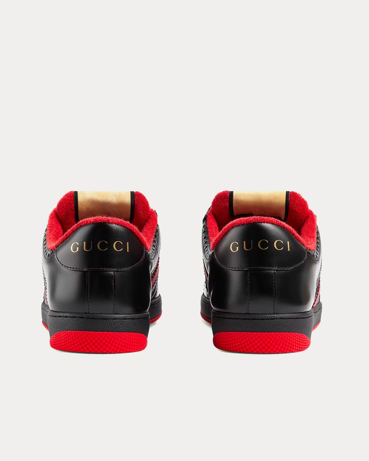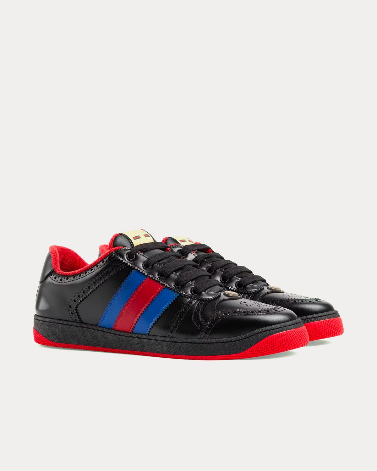 Baskets basses noires en cuir Gucci Screener bleu et rouge avec bande Web