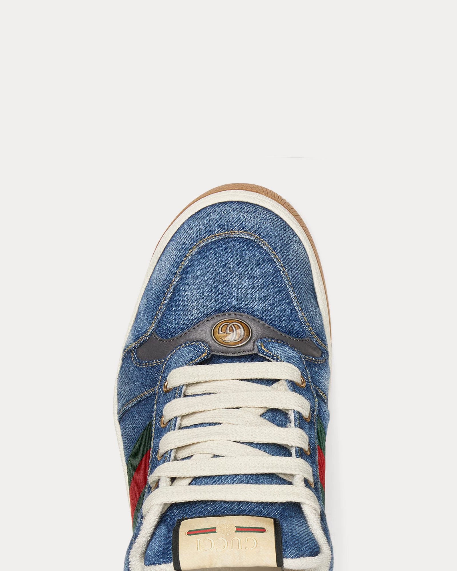 Baskets basses Gucci Screener avec bande Web en denim bleuBaskets basses Gucci Screener avec bande Web en denim bleu