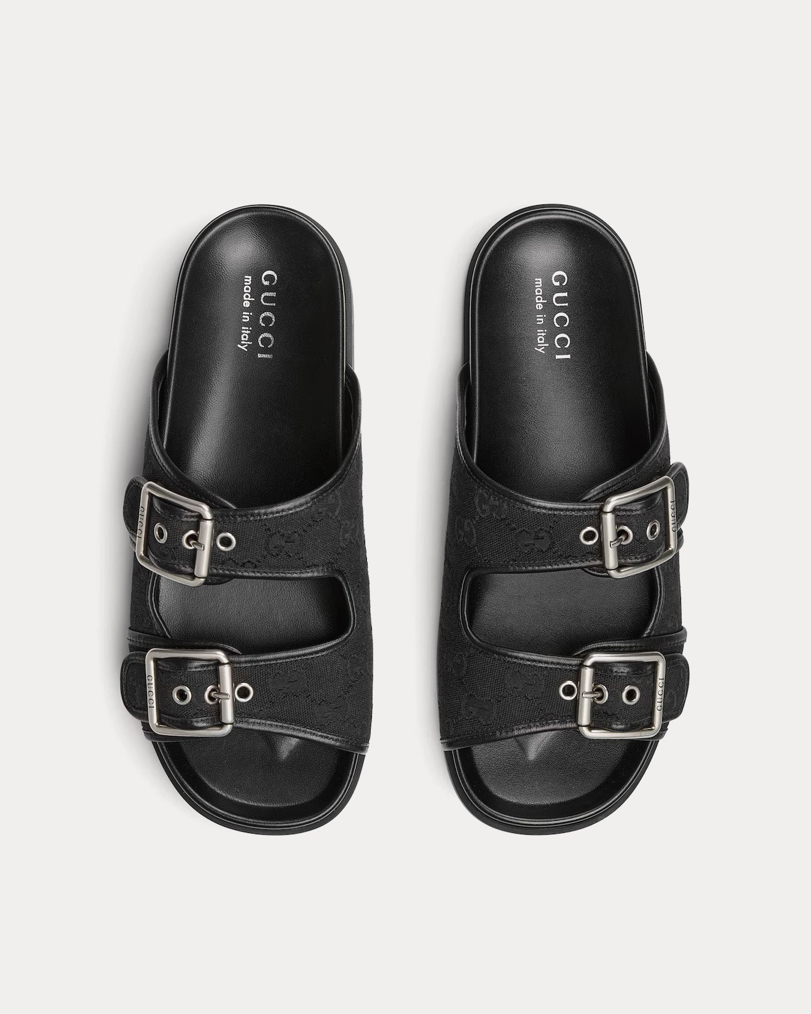 Les sandales pour homme Gucci Slide Buckle en toile GG noire allient savoir-faire traditionnel et modernité. Confectionnées dans l’emblématique toile GG de Gucci, signature de la Maison depuis sa création, ces sandales élégantes sont dotées d’une grande boucle audacieuse qui allie design classique et détails contemporains.