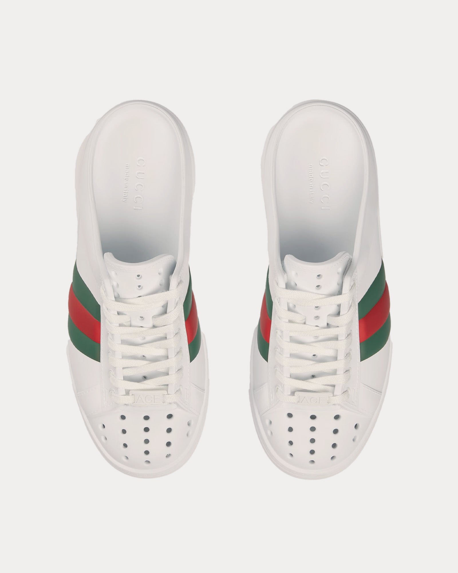 Mules blanches en caoutchouc Gucci Ace avec bande Web