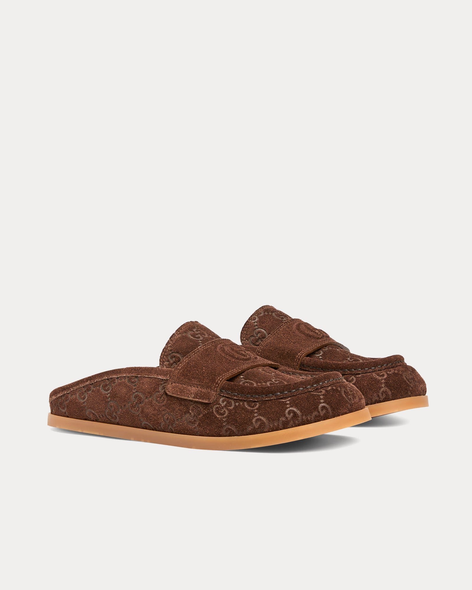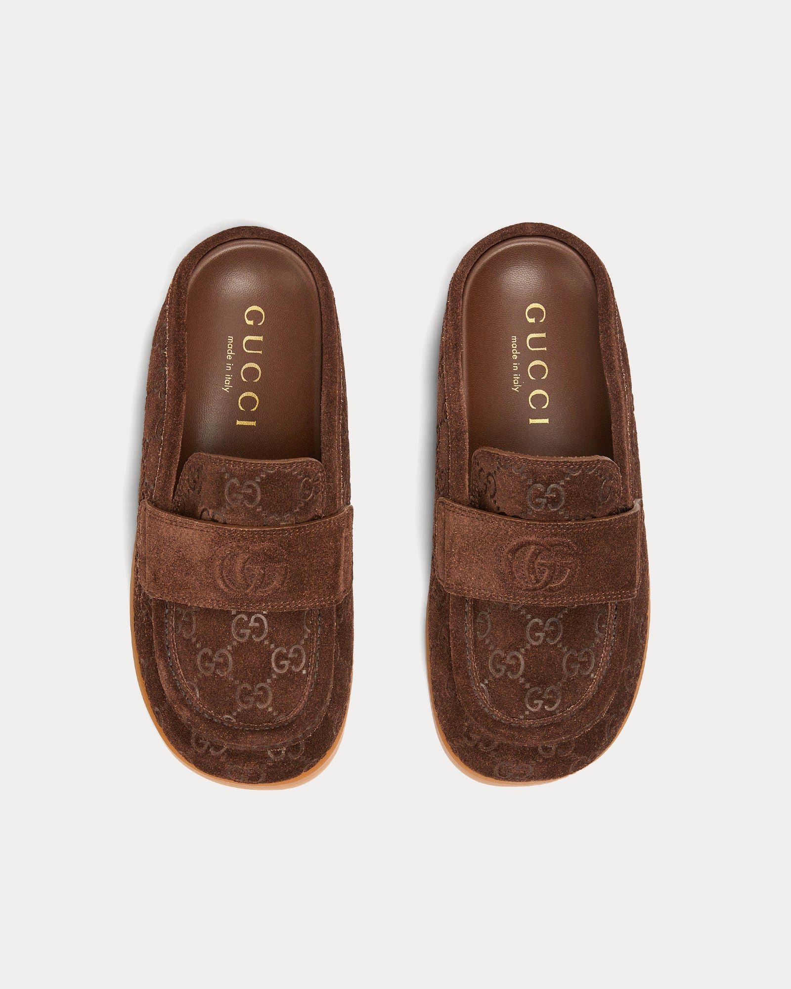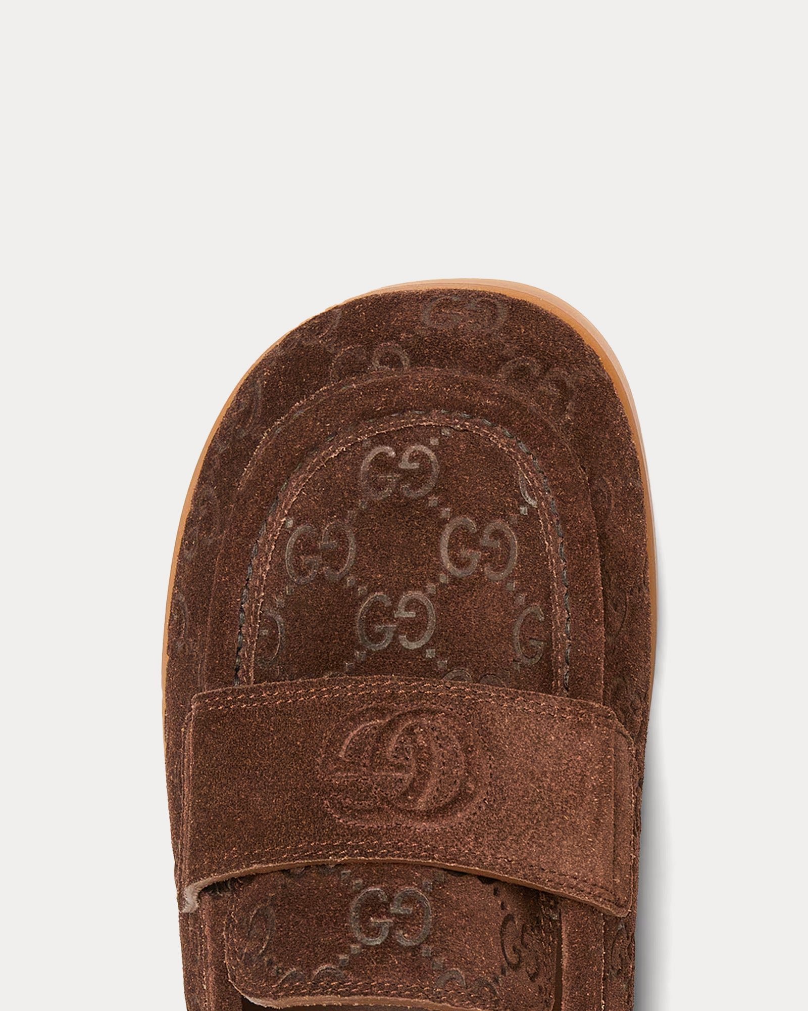 Les mules Gucci Double G en daim marron GG pour femme allient héritage intemporel et élégance contemporaine. Ornées du monogramme GG intégral, ces mules élégantes sont rehaussées d’un emblème Double G en relief, un clin d’œil subtil et emblématique à l’héritage historique de la Maison.