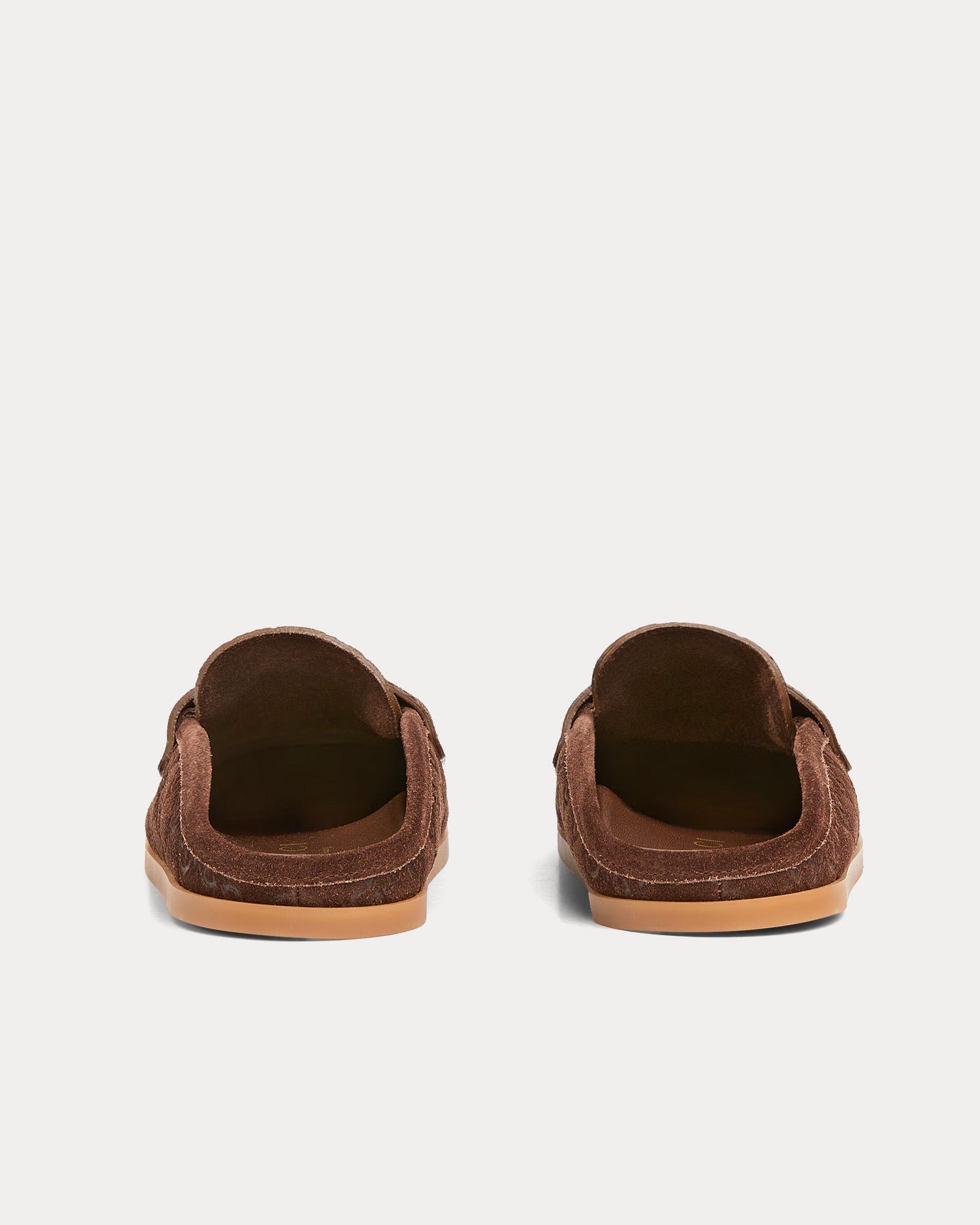 Confectionnées en Italie en daim doux et luxueux, ces mules reposent sur une semelle plate en caoutchouc résistante, alliant style et fonctionnalité au quotidien. Chic et facile à porter, elles sont polyvalentes et apportent un confort raffiné aux looks décontractés comme aux looks plus raffinés.