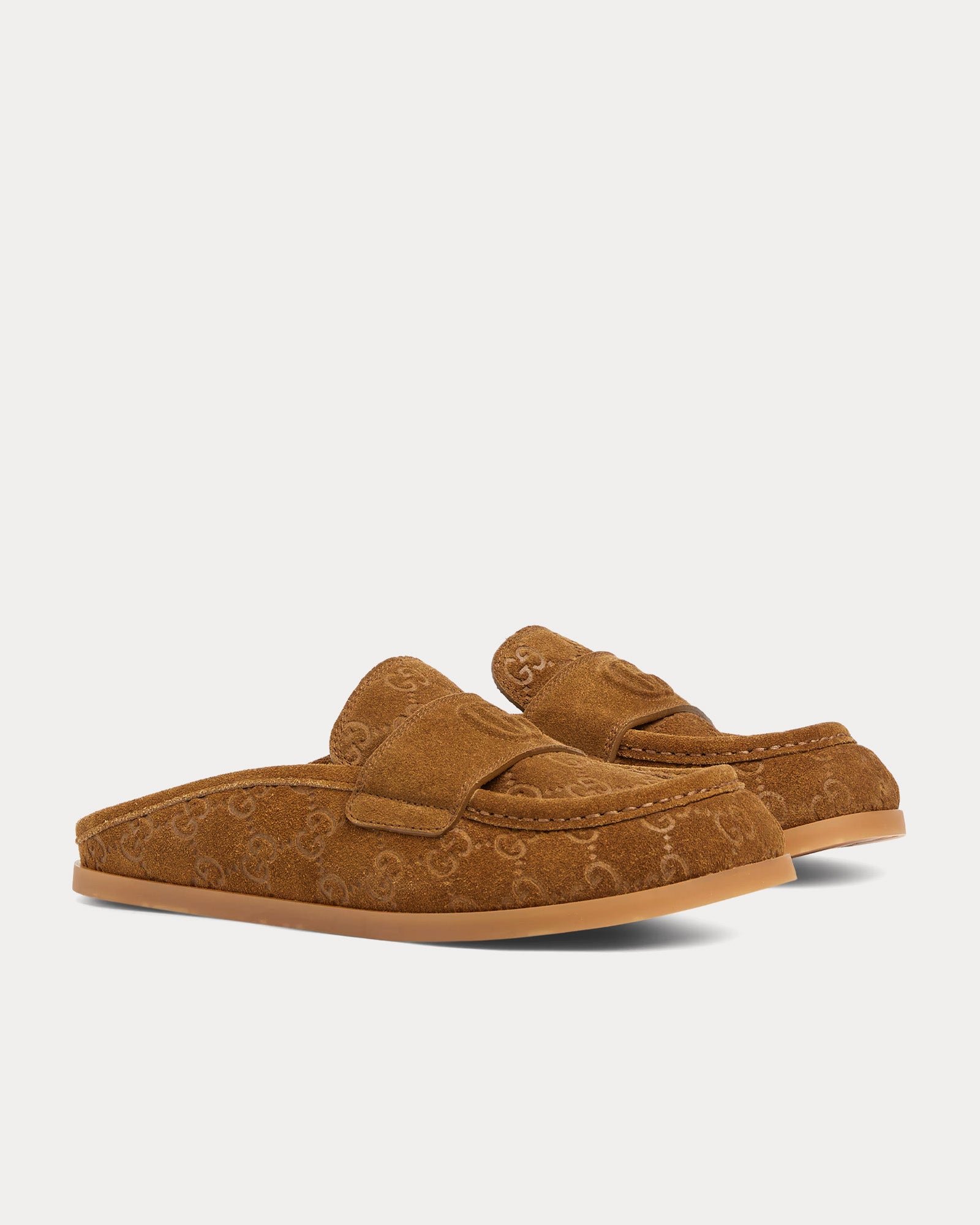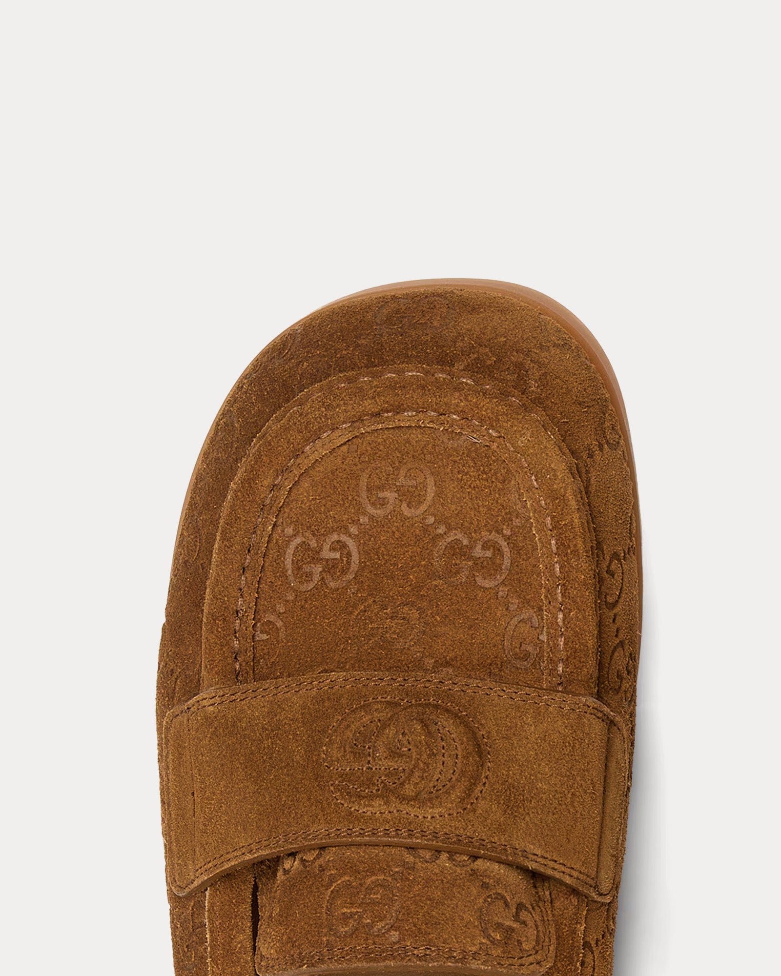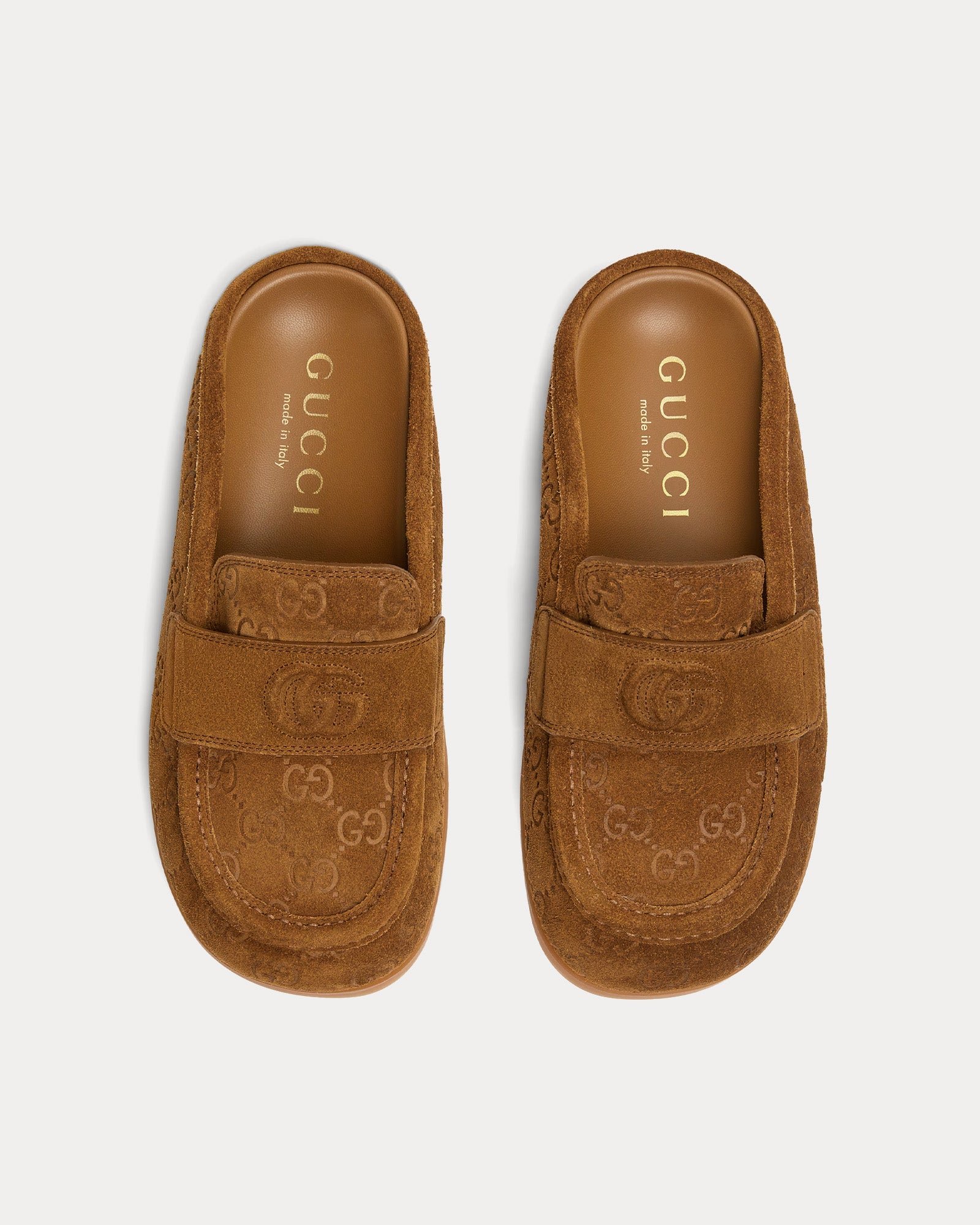 Mules Gucci Double G avec GG en daim marron clairMules Gucci Double G avec GG en daim marron clair
