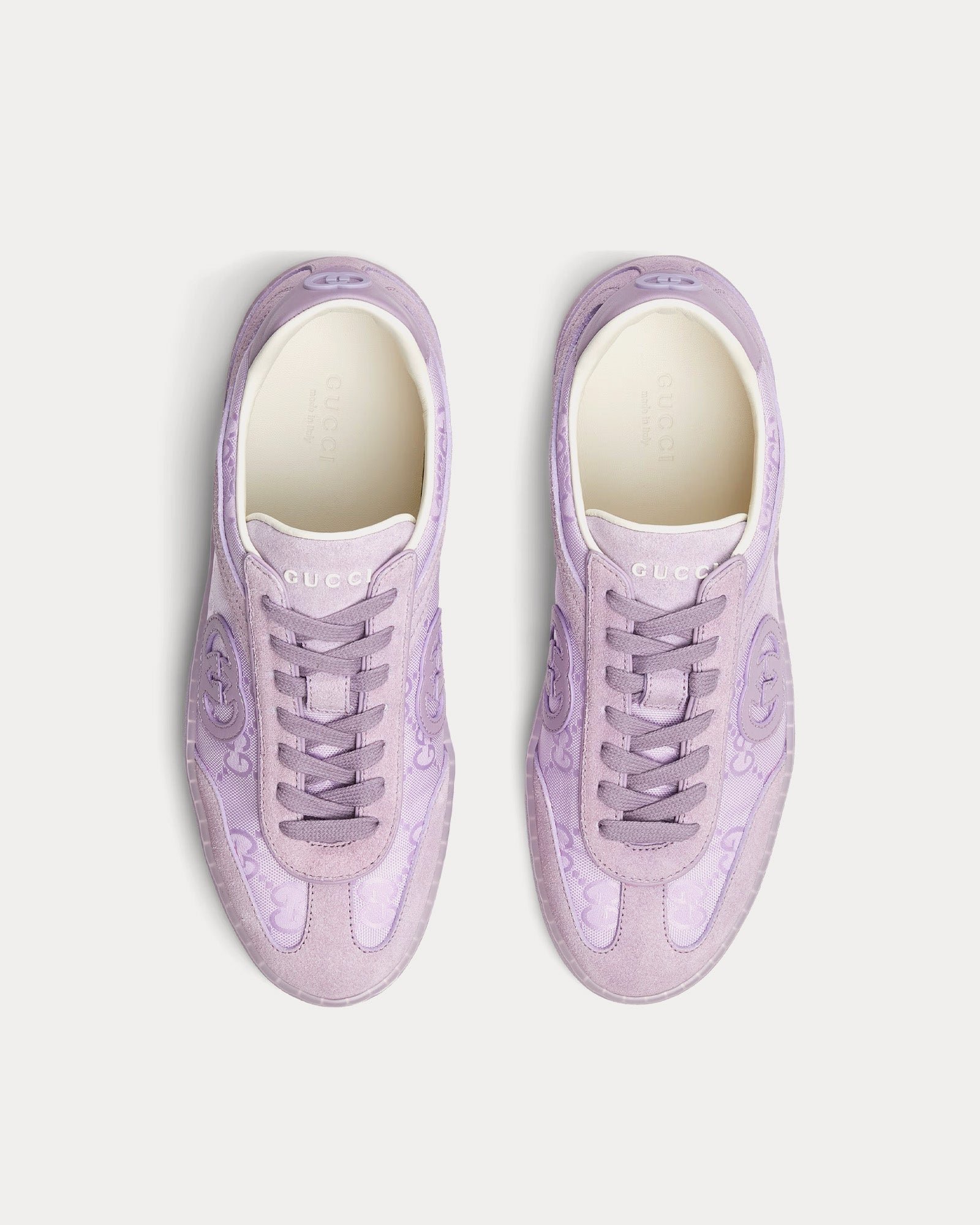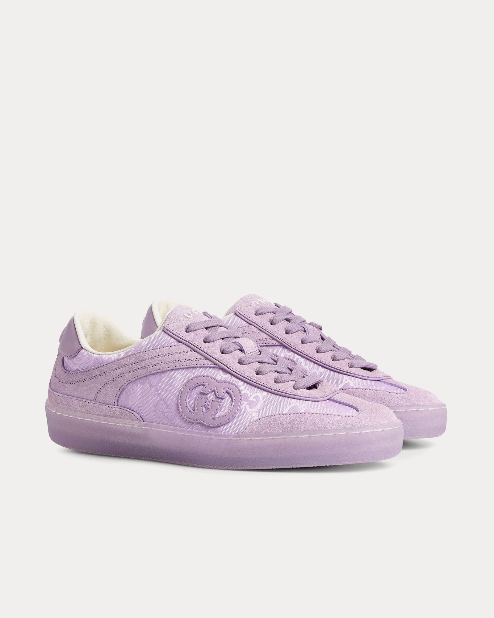 Les baskets basses Gucci G75 pour femme en lilas rendent hommage à l’esthétique classique du basket-ball des années 70 tout en incorporant des détails raffinés, signature de Gucci. Confectionnées en daim doux, ces baskets basses présentent des empiècements en cuir perforé qui ajoutent à la fois respirabilité et texture d’inspiration vintage.