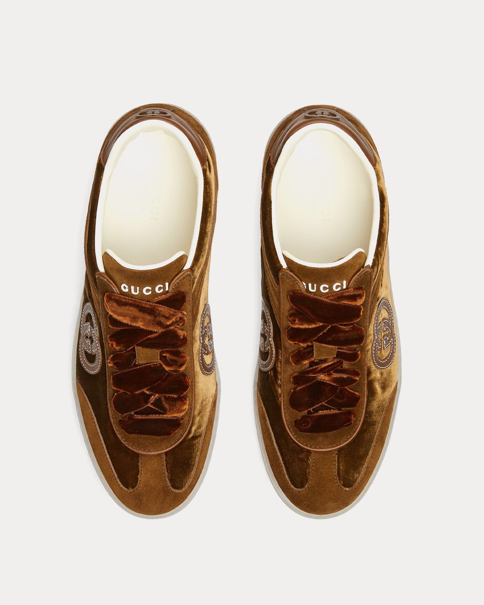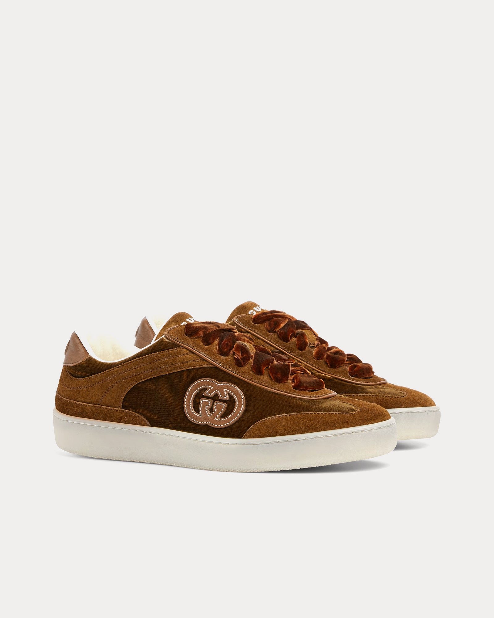 Leur silhouette épurée est agrémentée d’une fermeture à lacets et d’une semelle plate pour plus de confort et de polyvalence. Une paire de lacets supplémentaire est incluse pour personnaliser encore plus votre look. Faisant partie de la collection automne-hiver 2025 et fabriquées en Italie, les baskets Gucci G75 baskets en velours marron offrent une version luxueuse d’un classique intemporel.
