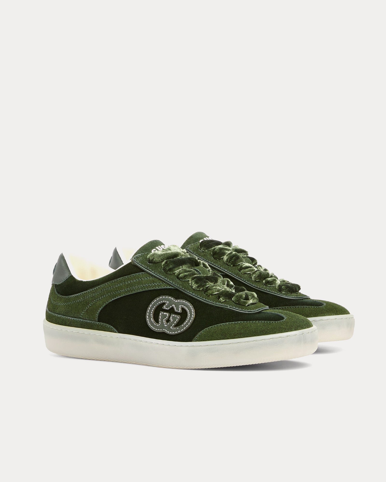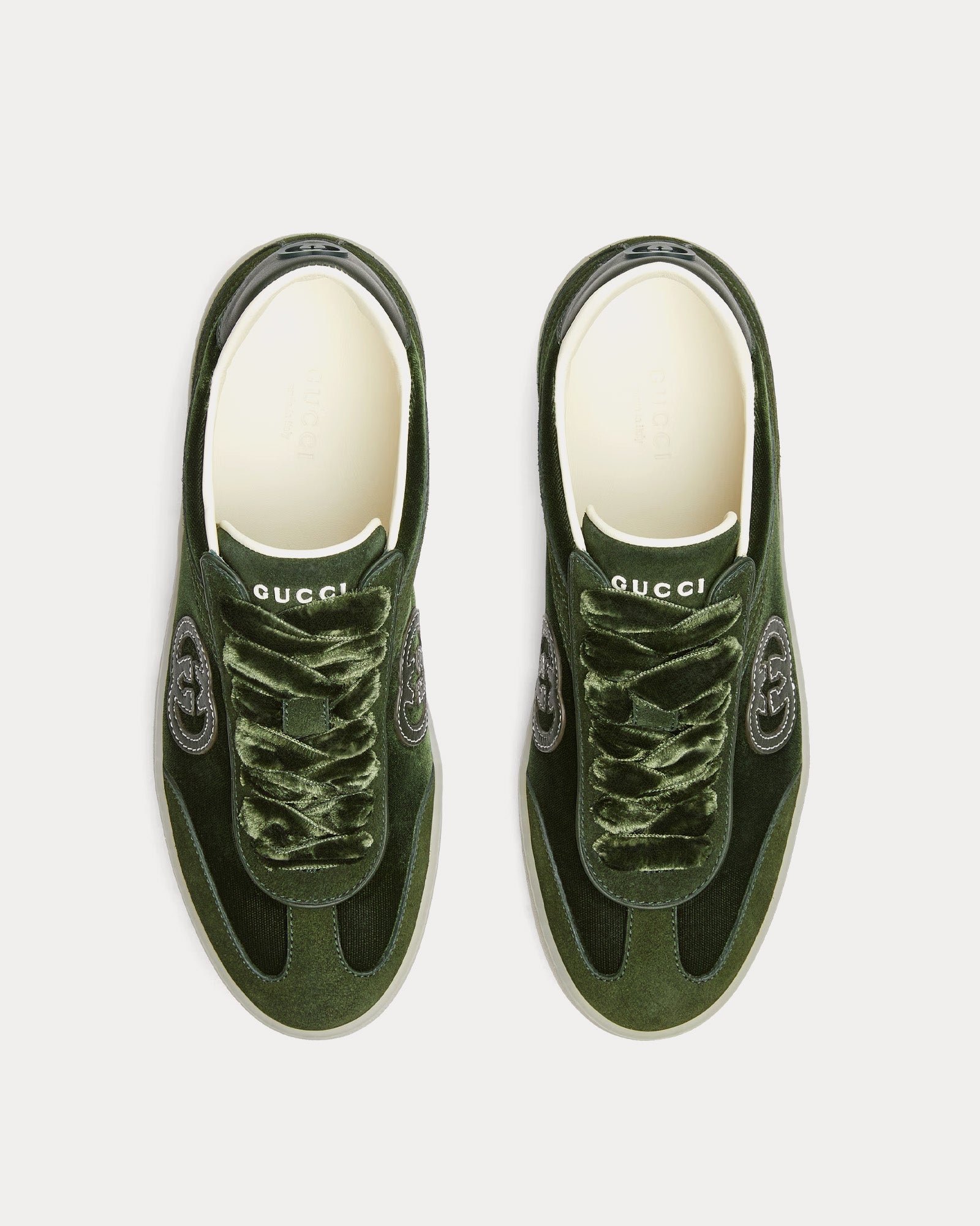 Baskets basses Gucci G75 en velours vert foncéBaskets basses Gucci G75 en velours vert foncé