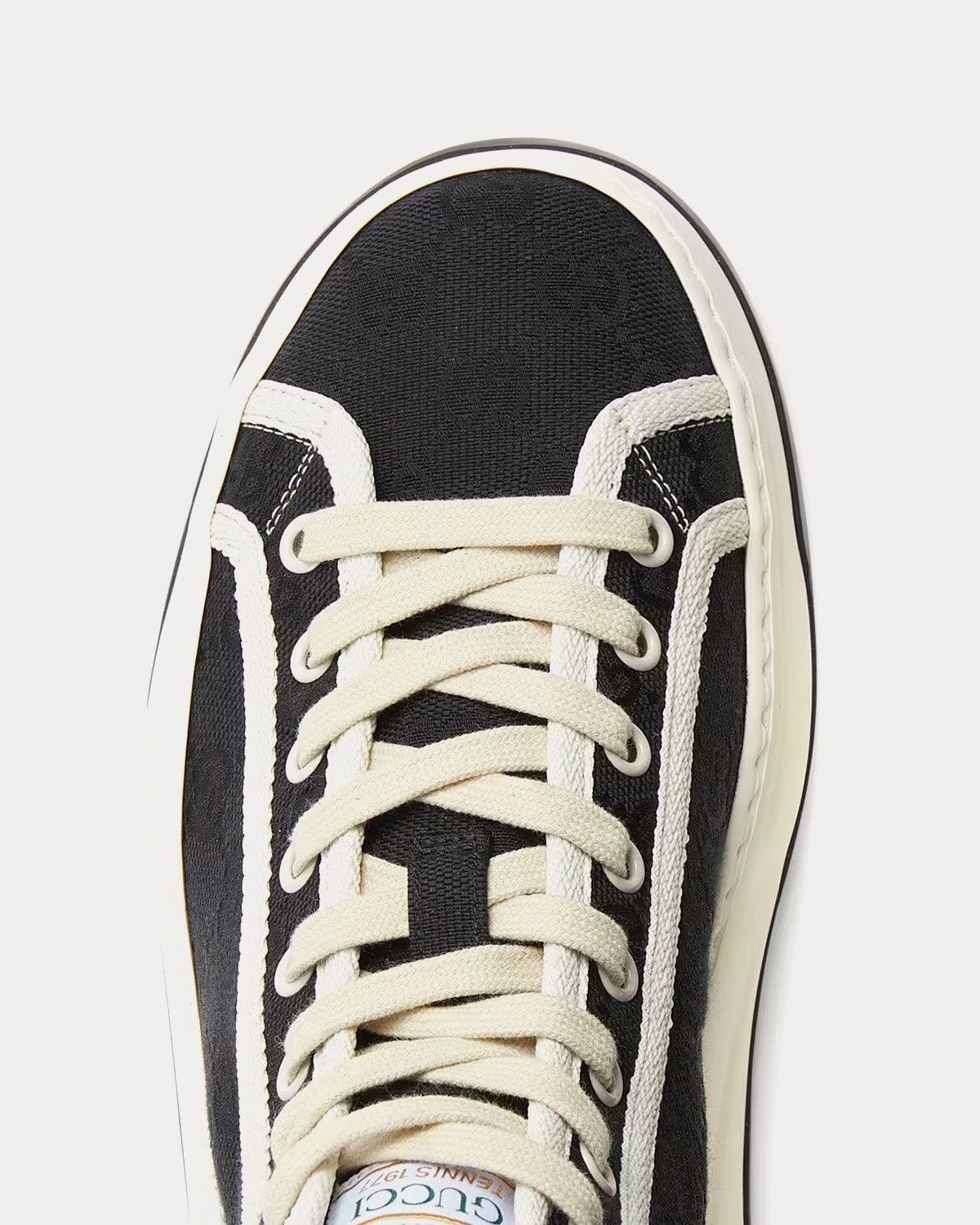 Les baskets montantes Gucci GG Canvas pour femmes sont dotées d’une toile GG noire, d’une bordure en gros-grain blanc et de semelles en caoutchouc avec adhérence G entrelacées. Fabriquées en Italie.