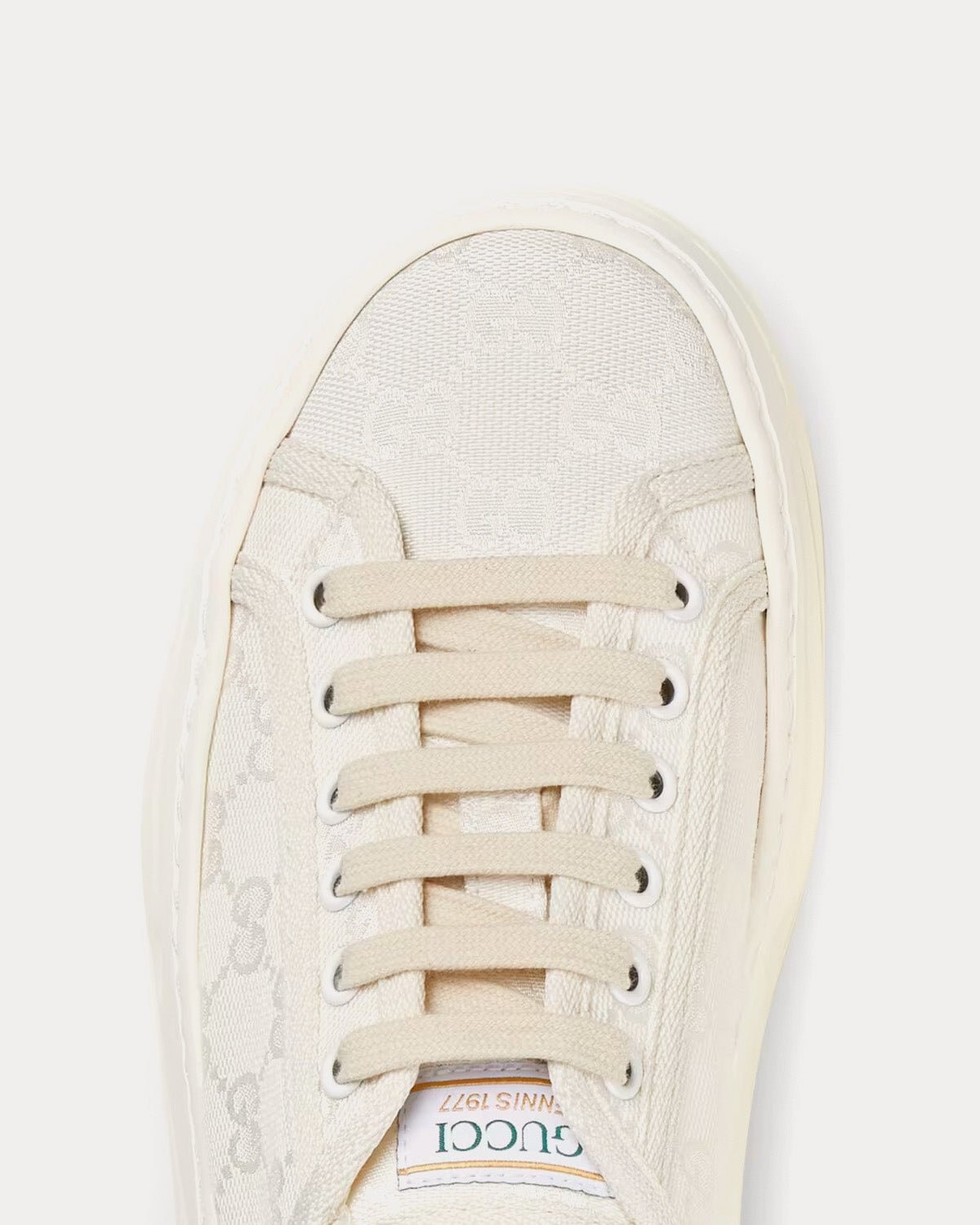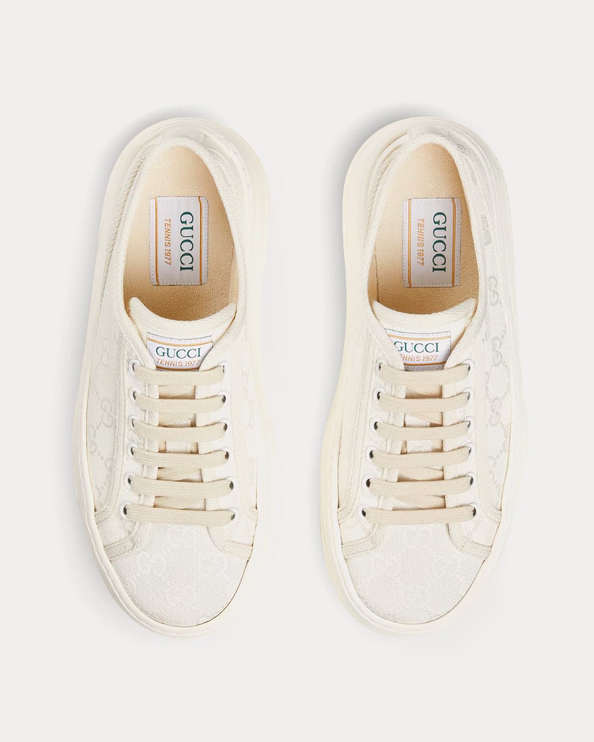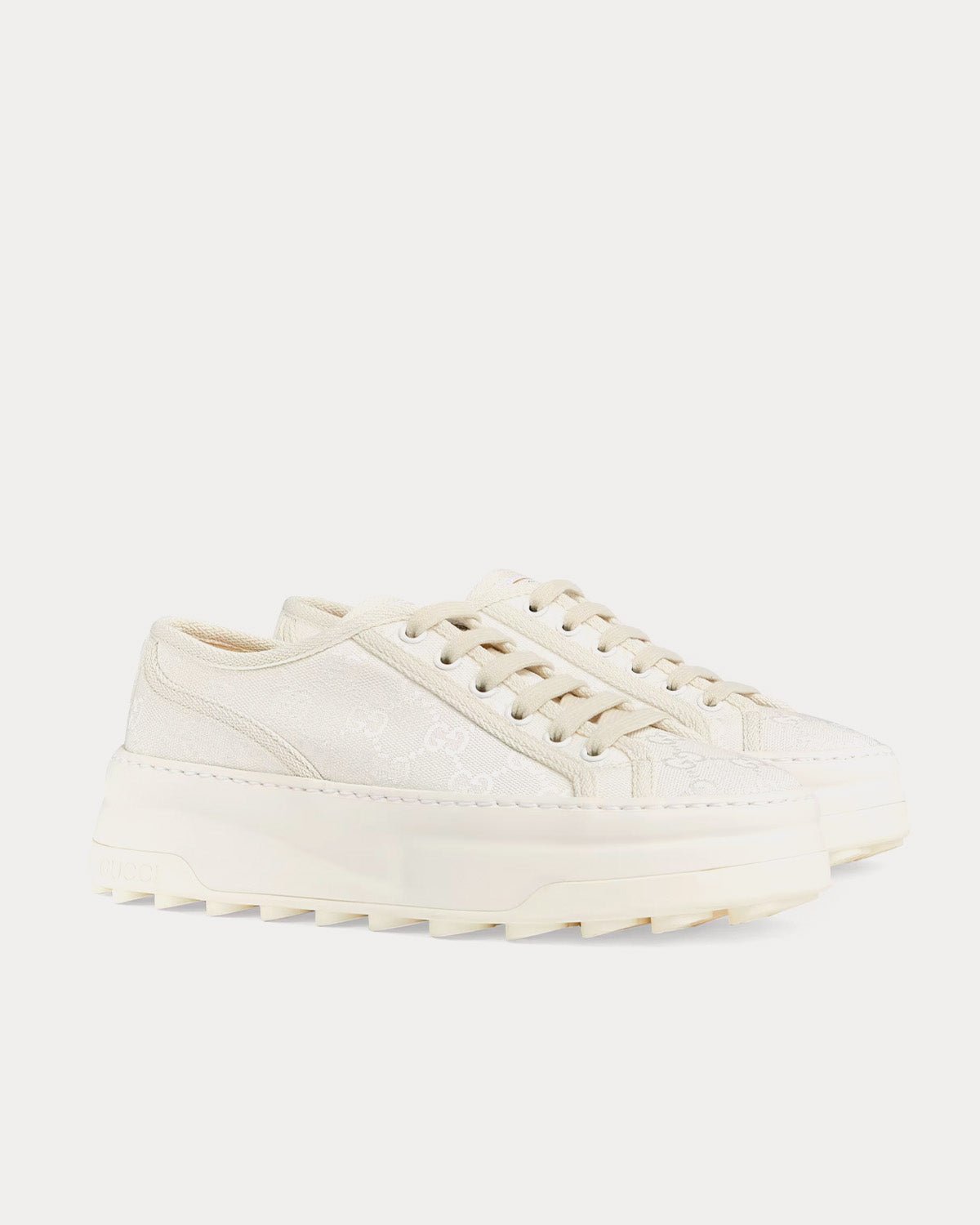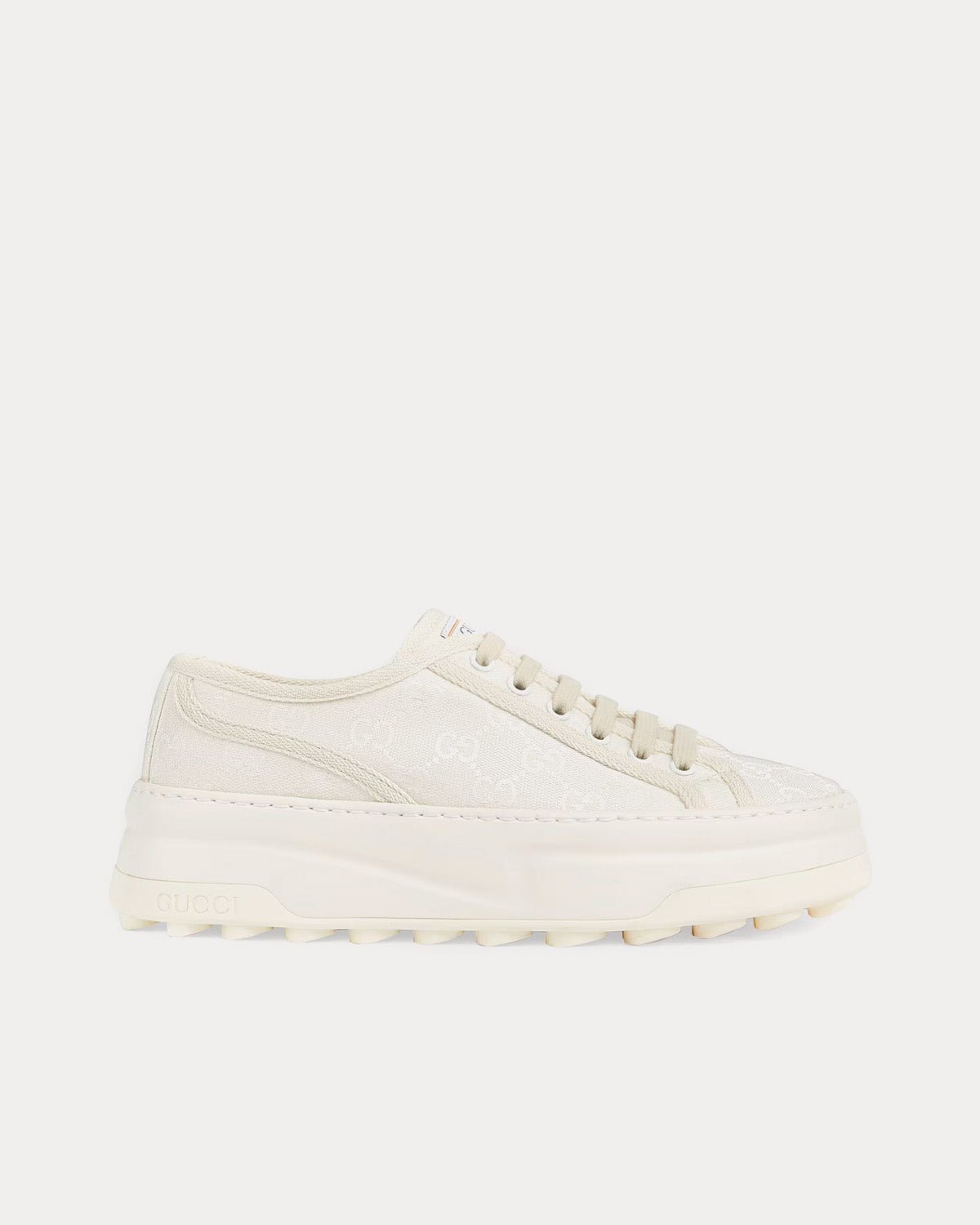 Les baskets basses Gucci GG Canvas pour femmes sont dotées d’une toile GG originale blanche, d’une bordure en gros-grain blanc et de semelles en caoutchouc avec adhérence G entrelacées. Fabriquées en Italie.