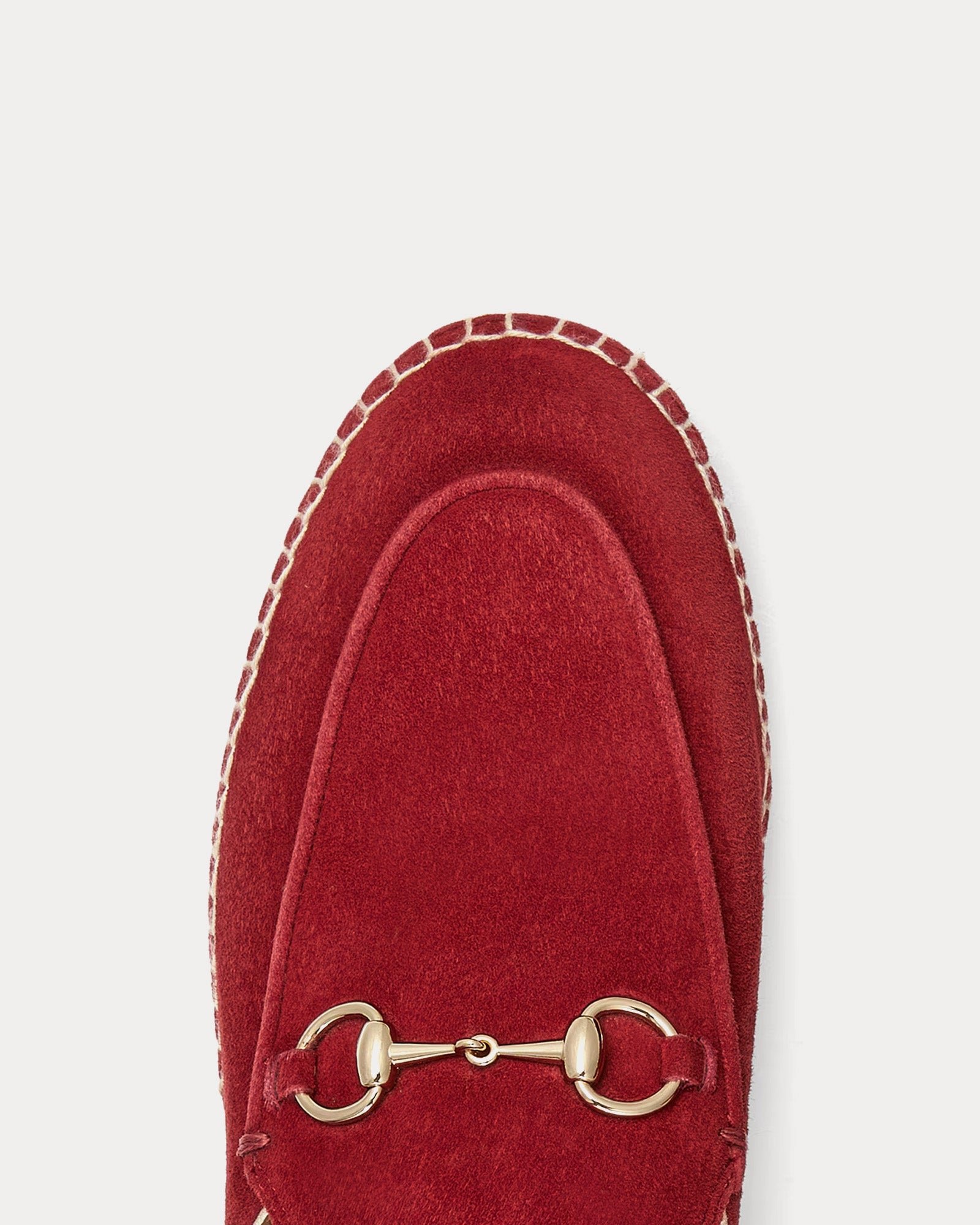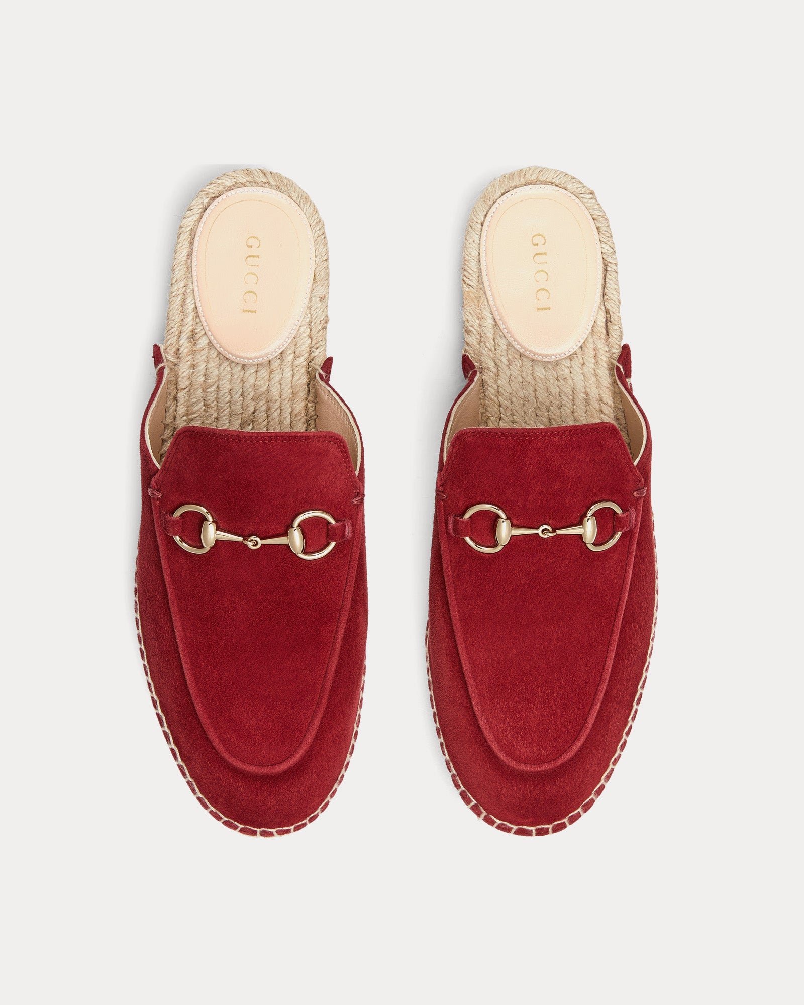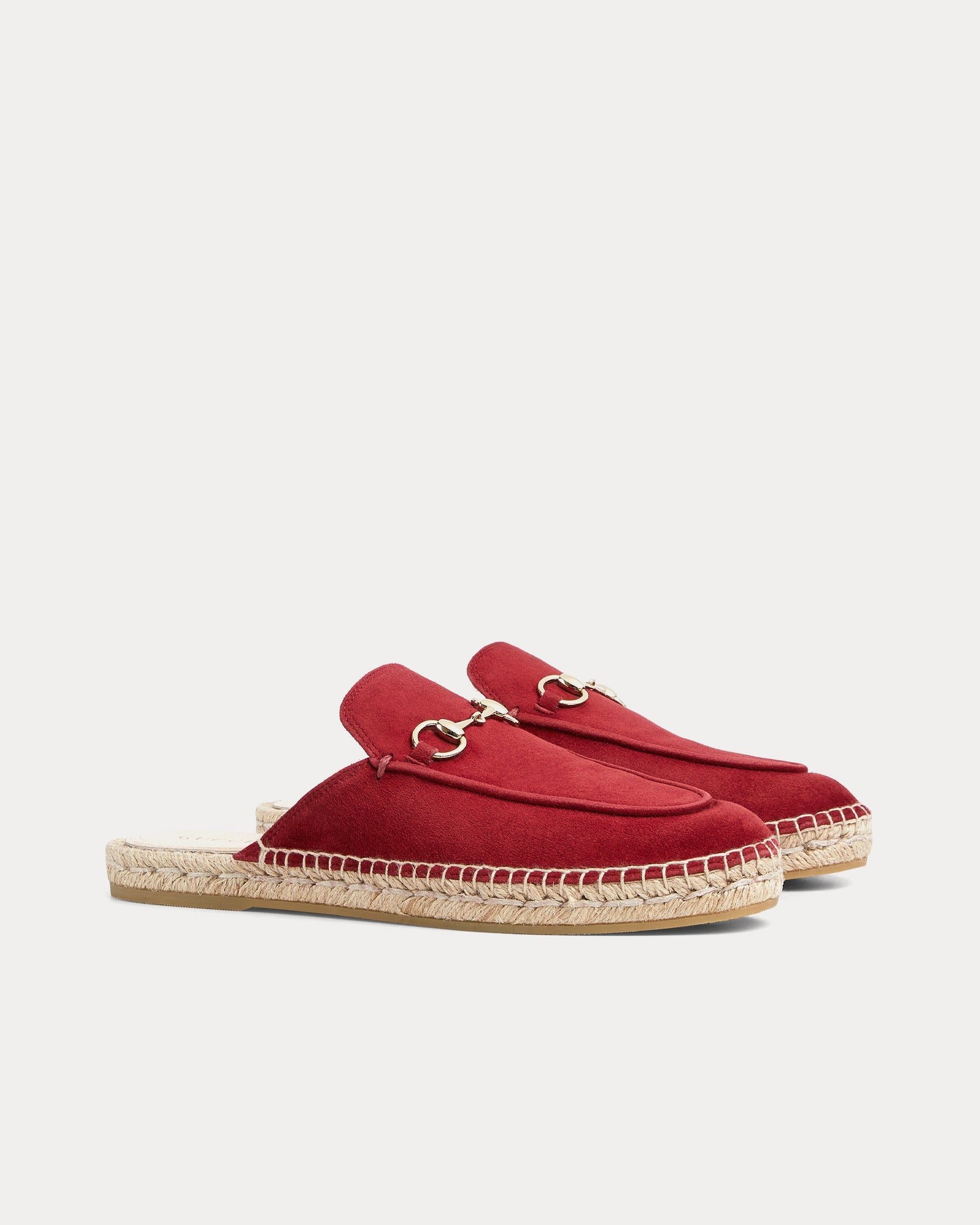 Les mules espadrilles à mors Gucci pour femme en daim Gucci Mules espadrilles à mors en daim Rosso Ancora allient héritage classique et élégance décontractée. Confectionnées en daim raffiné, ces mules à enfiler sont rehaussées du mors emblématique de Gucci en métal doré clair, un clin d’œil aux riches racines équestres de la marque.