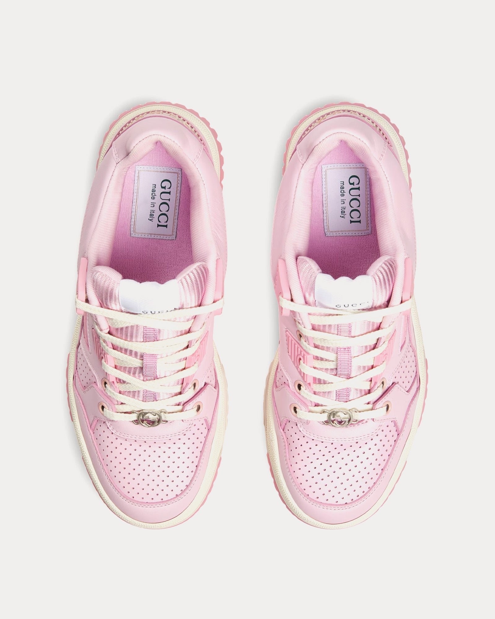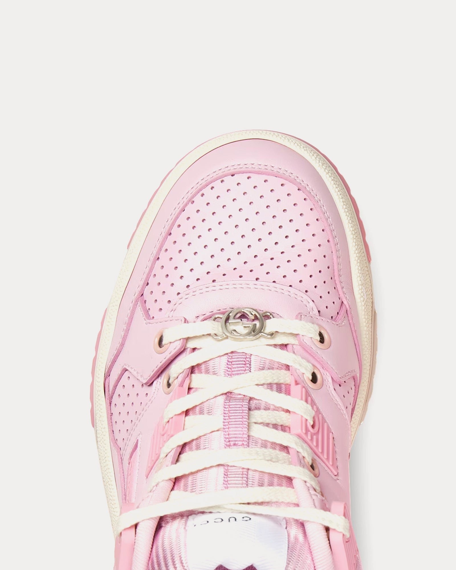 Les baskets basses Gucci pour femme GucciInterlocking G de couleur rose sont confectionnées en cuir et présentent des empiècements en tissu perforé, des détails en caoutchouc, l’inscription Gucci, des G entrelacés sur les lacets, des semelles en caoutchouc et une fermeture à lacets. Fabriquées en Italie.