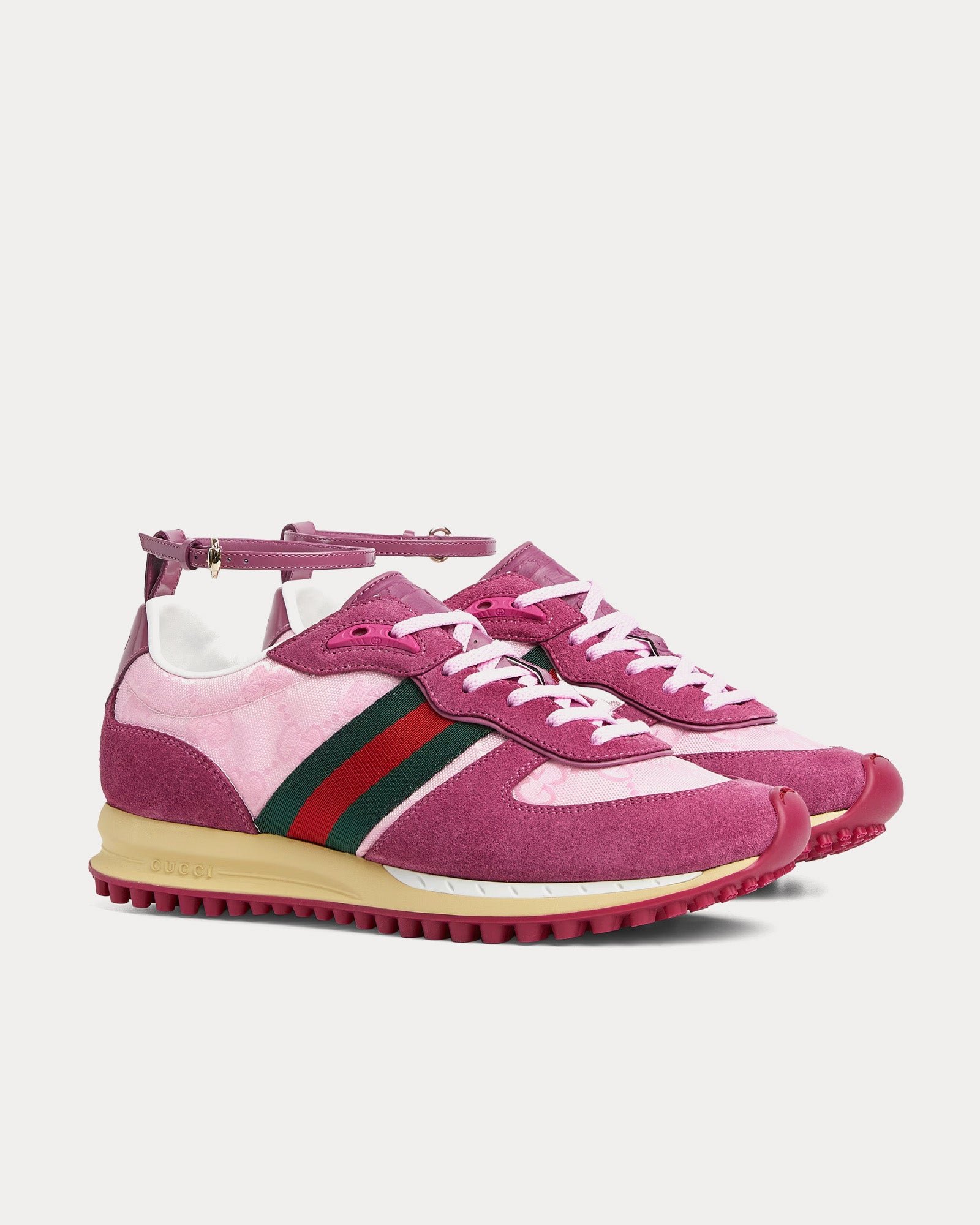 Les baskets basses Gucci Re-Motion pour femme en daim rose allient une esthétique d’inspiration rétro aux codes signature de la maison pour un look à la fois audacieux et raffiné. Confectionnées en Italie, ces baskets sportives arborent un luxueux mélange de daim marron clair et de nylon GG, rehaussé de la bande Web verte et rouge emblématique de Gucci pour une finition incomparable.
