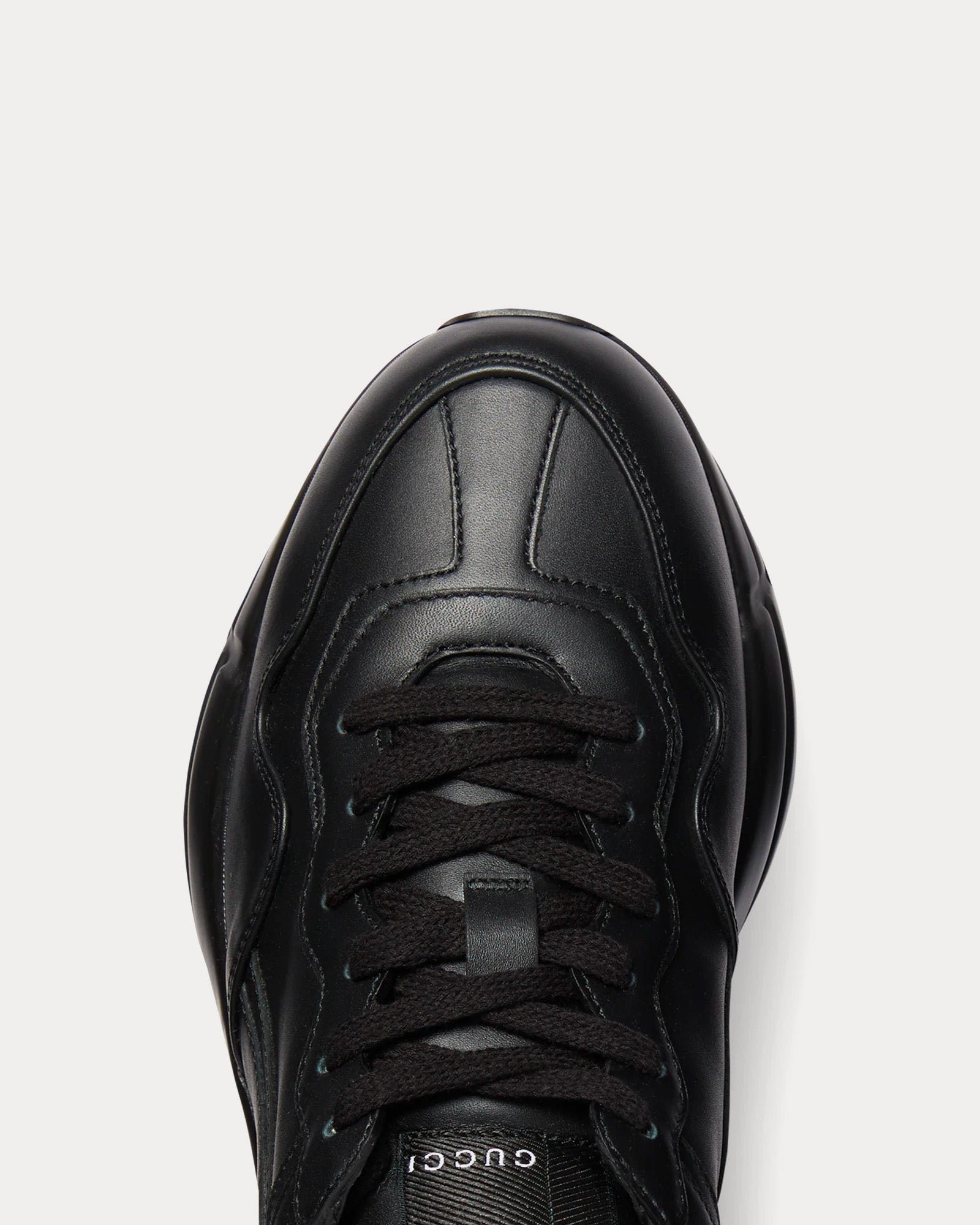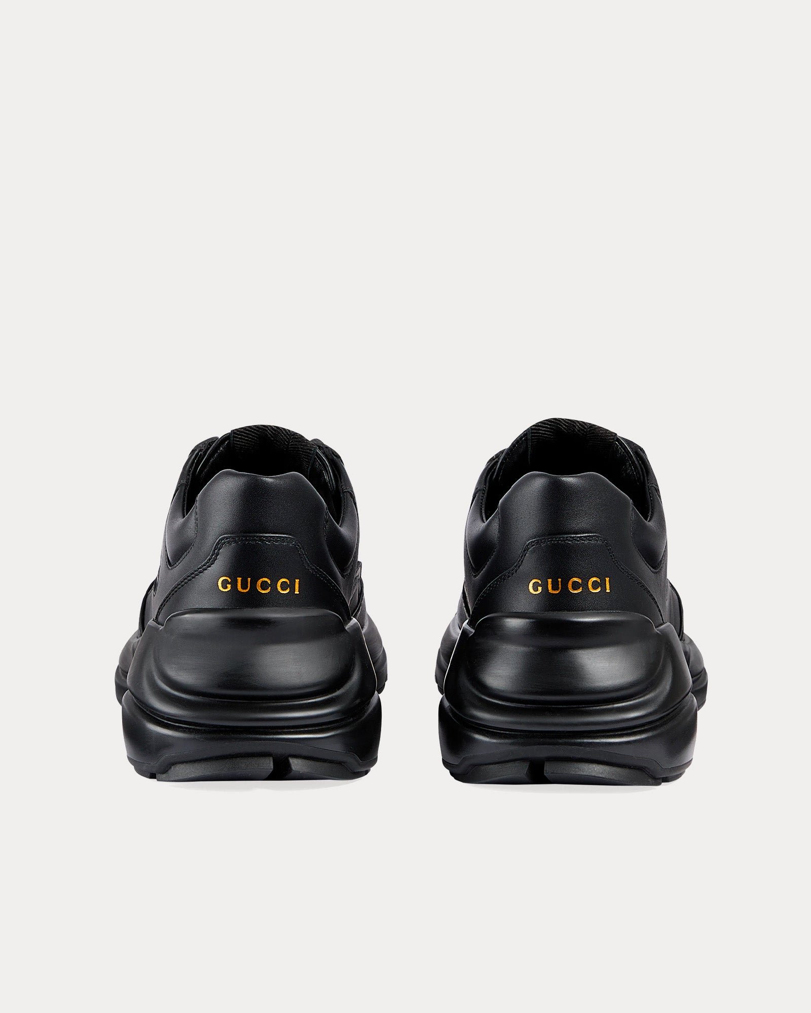 Les baskets basses pour femmes GucciRhyton en noir présentent un design élégant et sportif, des fermetures à lacets, un talon bas et des semelles en caoutchouc. Fabriquées en Italie.