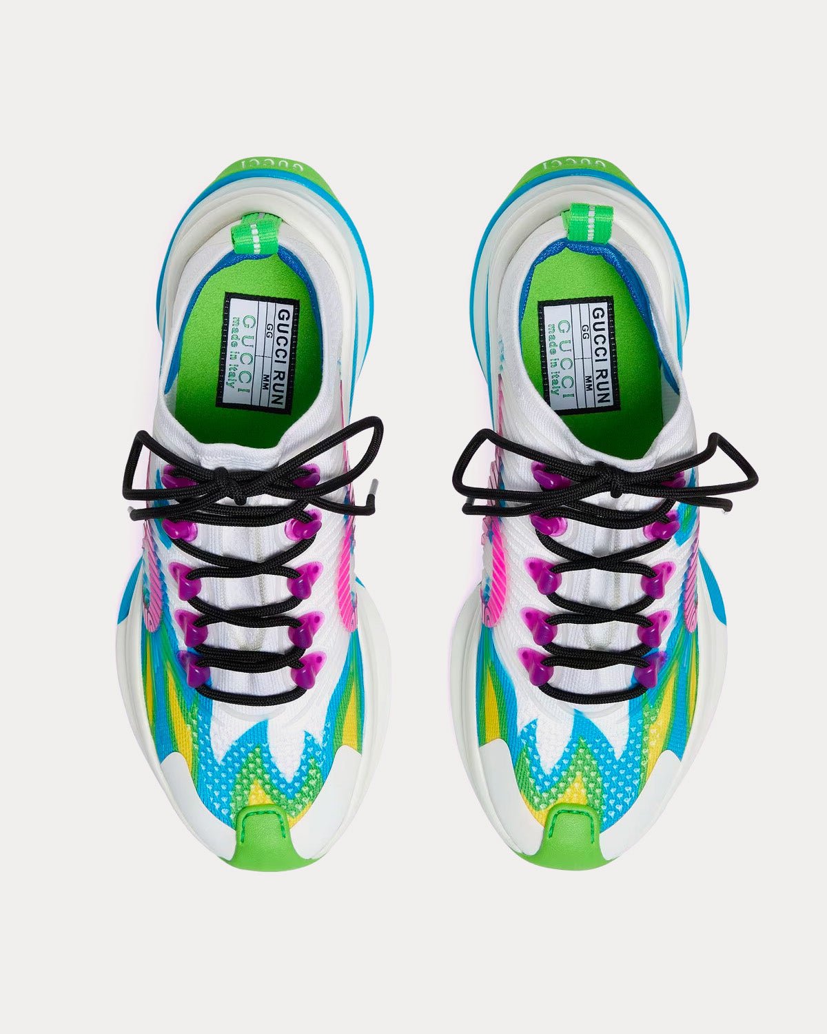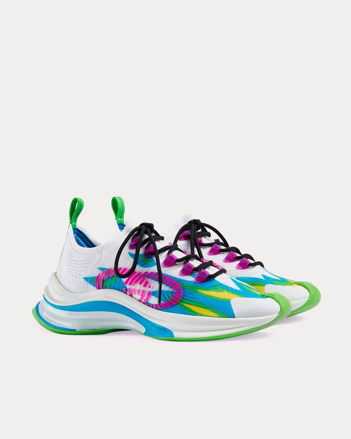 Baskets basses Gucci Run Flame Print blanches, bleues et vertesBaskets basses Gucci Run Flame Print blanches, bleues et vertes
