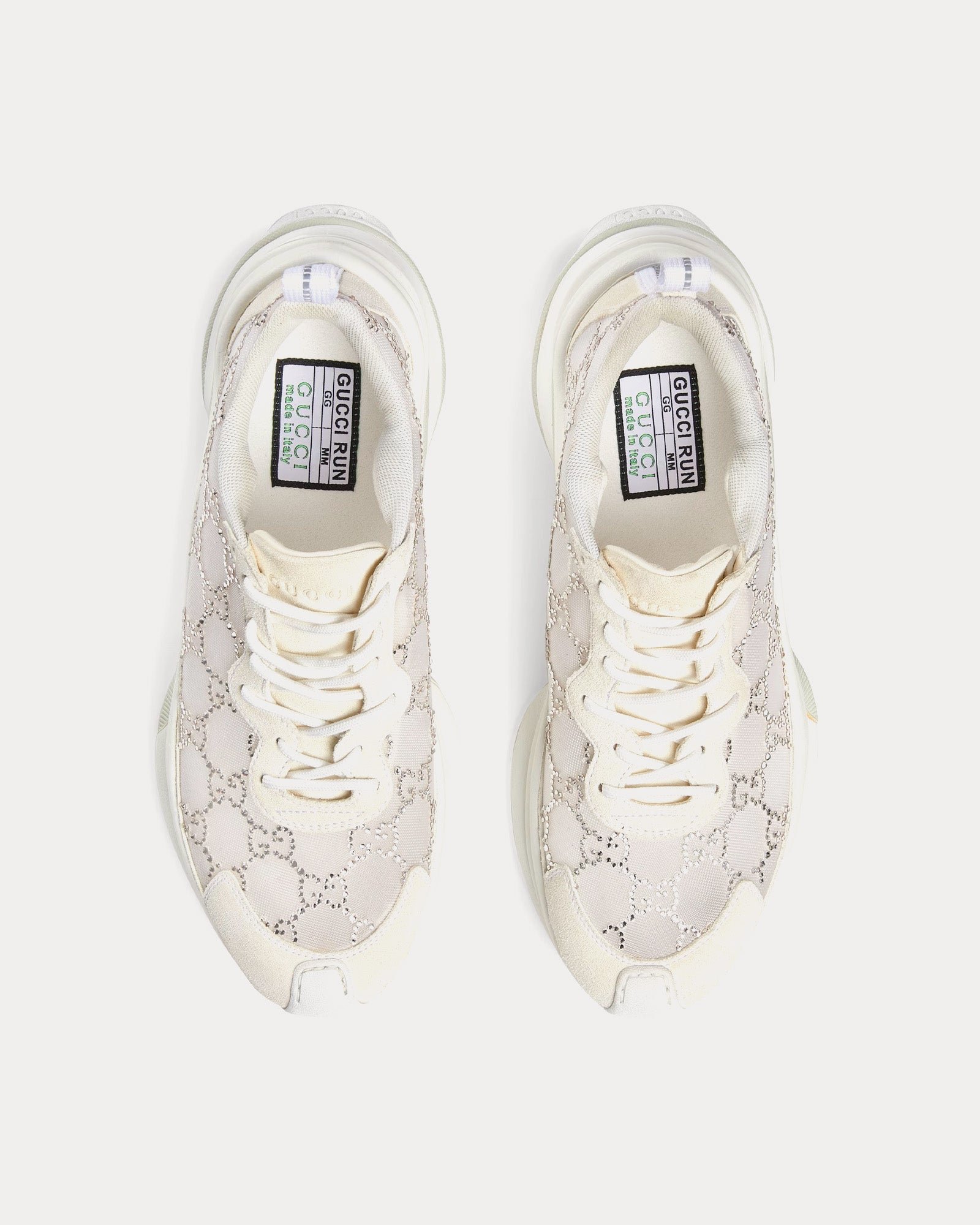 Baskets basses blanches Gucci Run GG Crystal Mesh