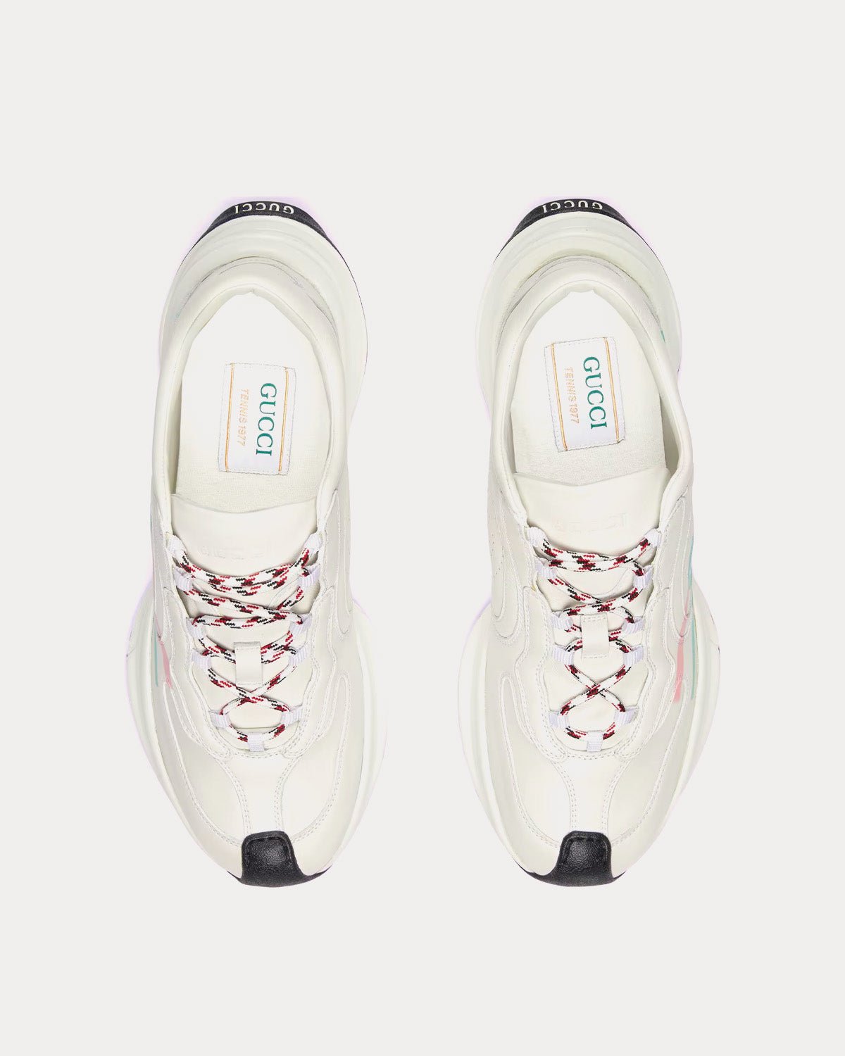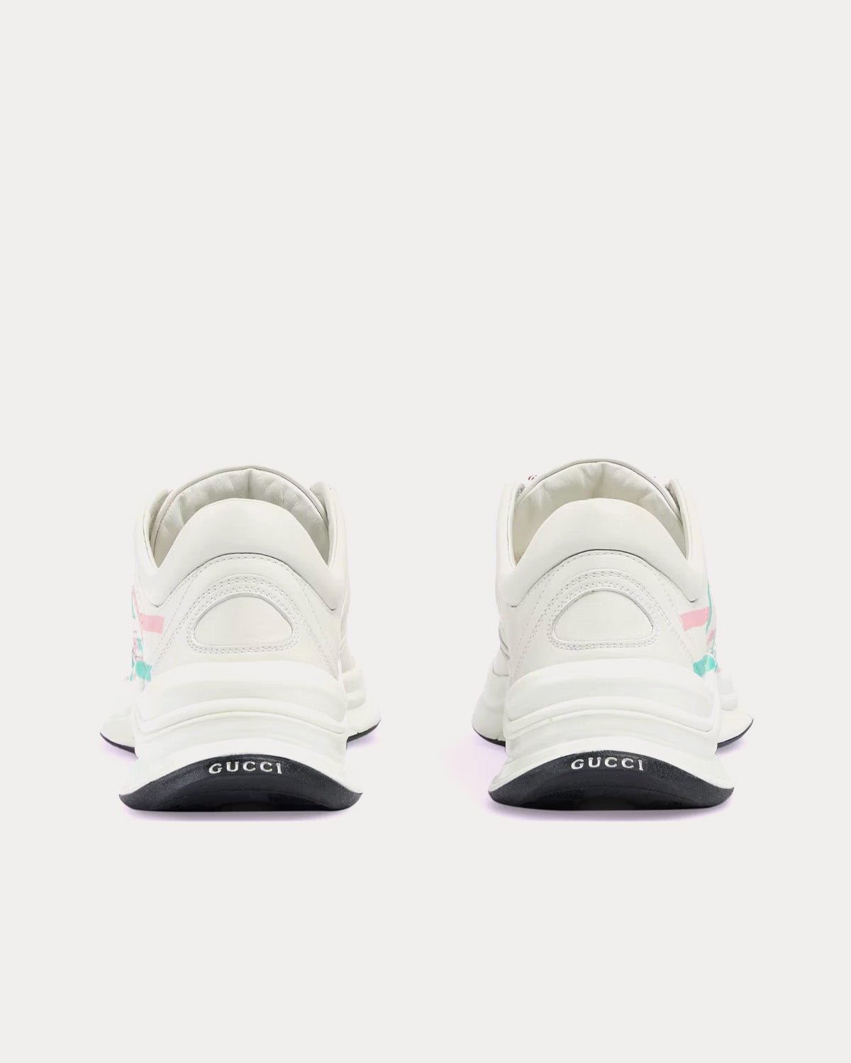 Baskets basses en cuir blanc/rose/turquoise à imprimé logo Gucci Run