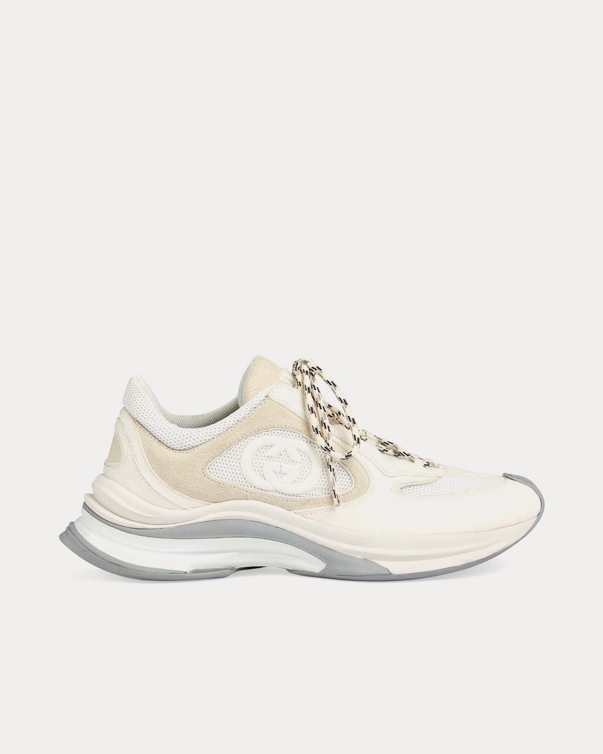 Baskets basses Gucci Run en daim blanc / blanc cassé / gris