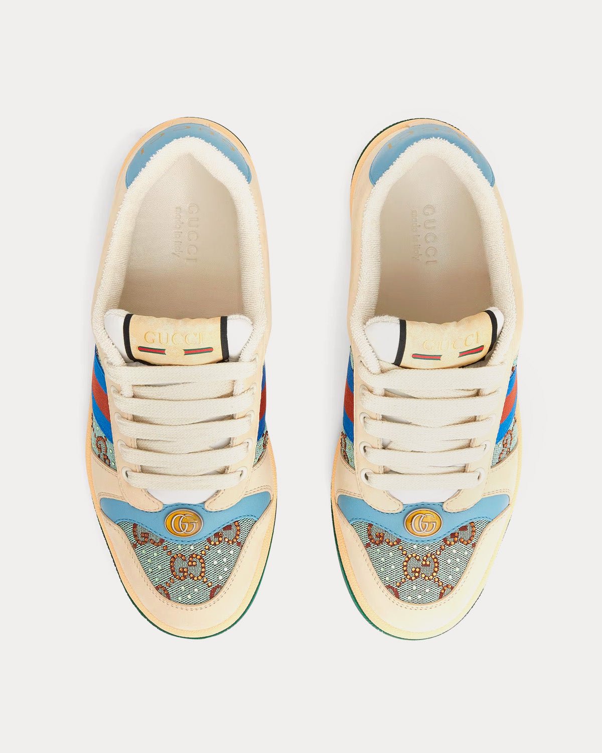 Baskets basses Gucci Screener avec cristaux et logo GG beige/bleu/vert