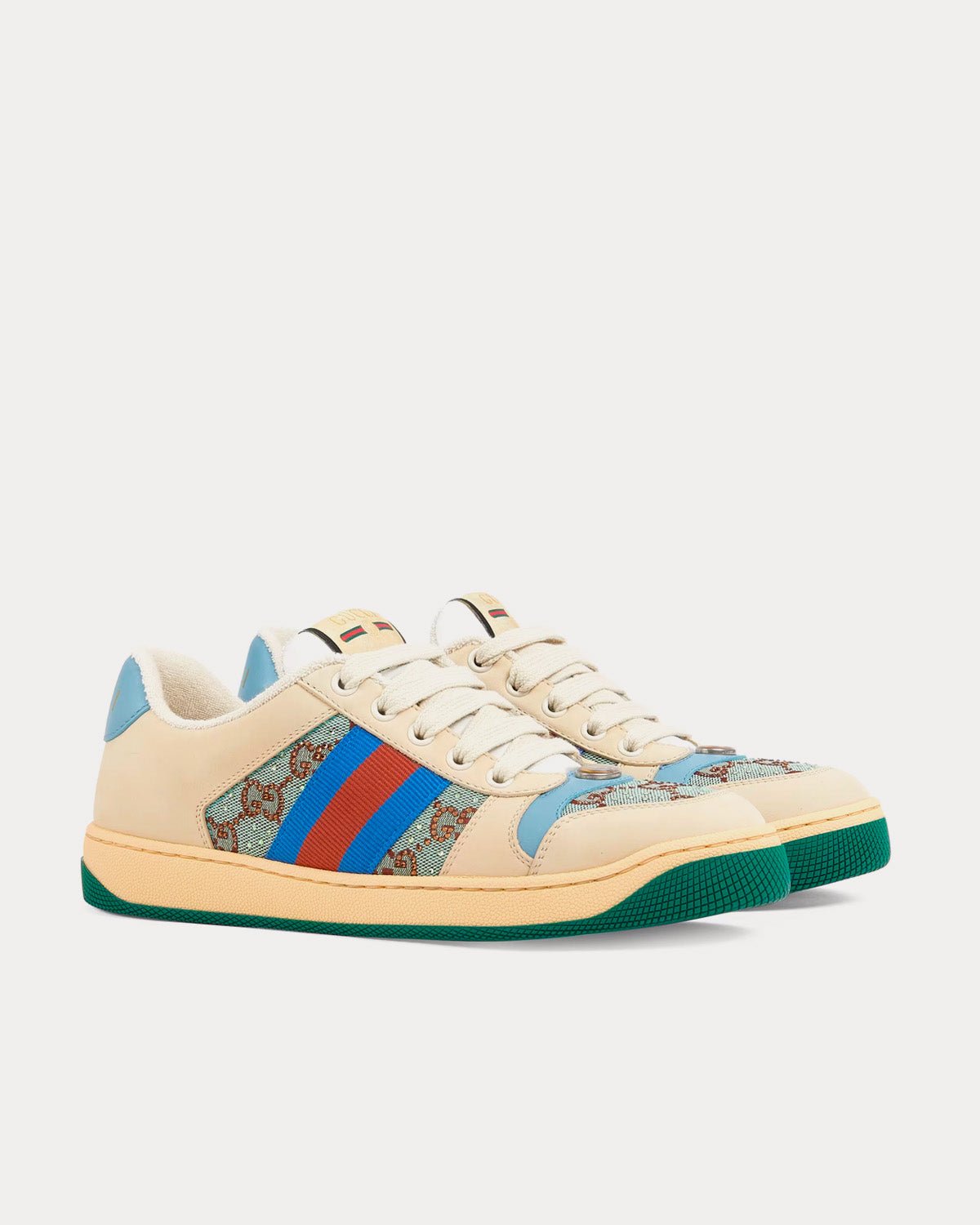 Baskets basses Gucci Screener avec cristaux et logo GG beige/bleu/vertBaskets basses Gucci Screener avec cristaux et logo GG beige/bleu/vert