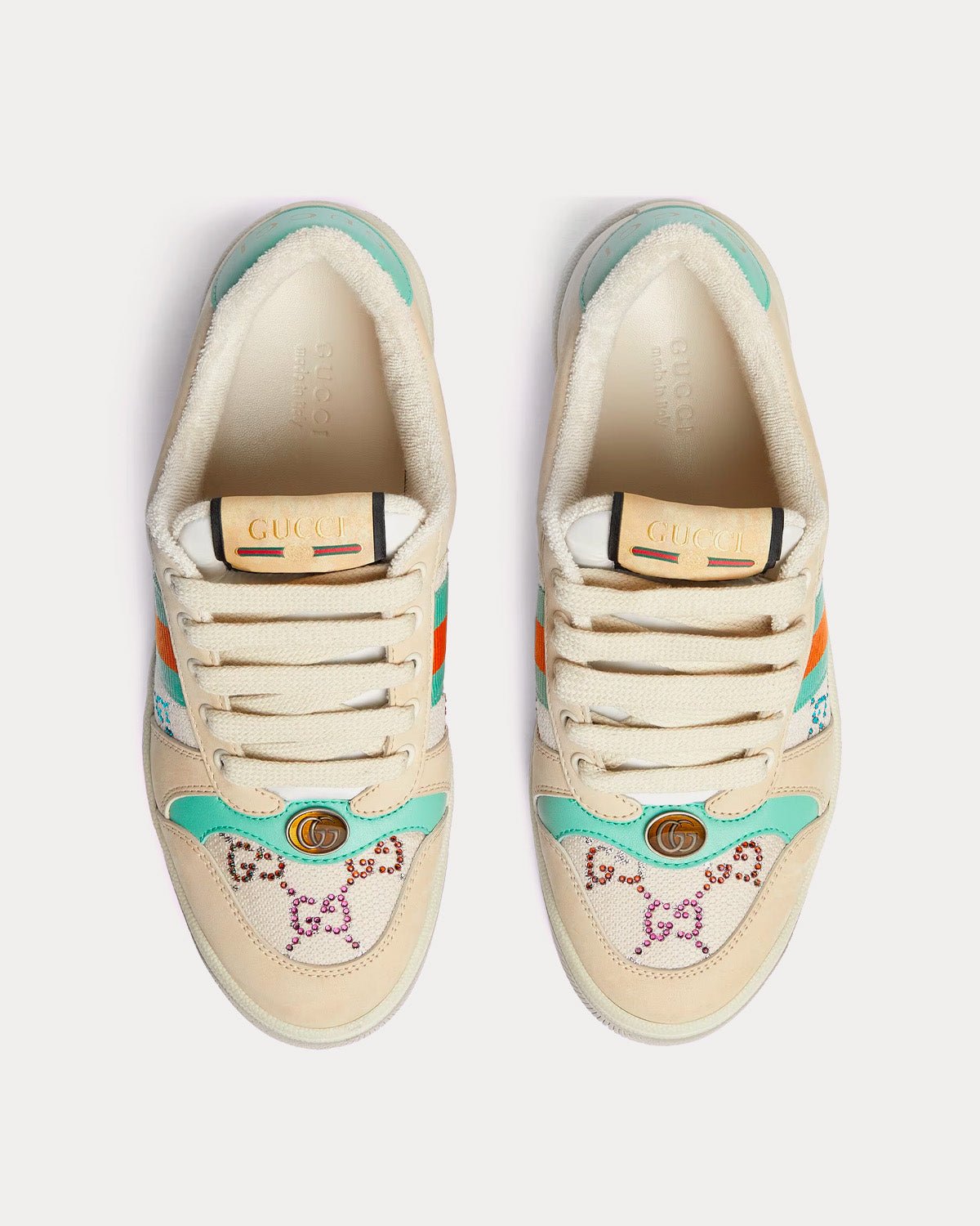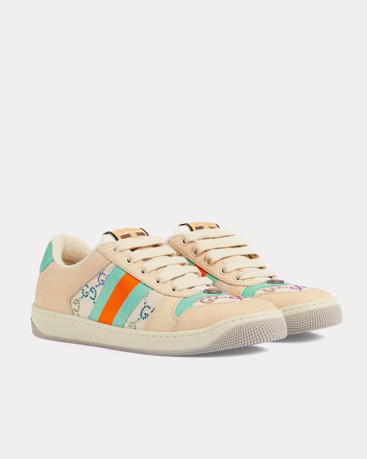 Baskets basses Gucci Screener avec cristaux et logo GG beige/vert/orange