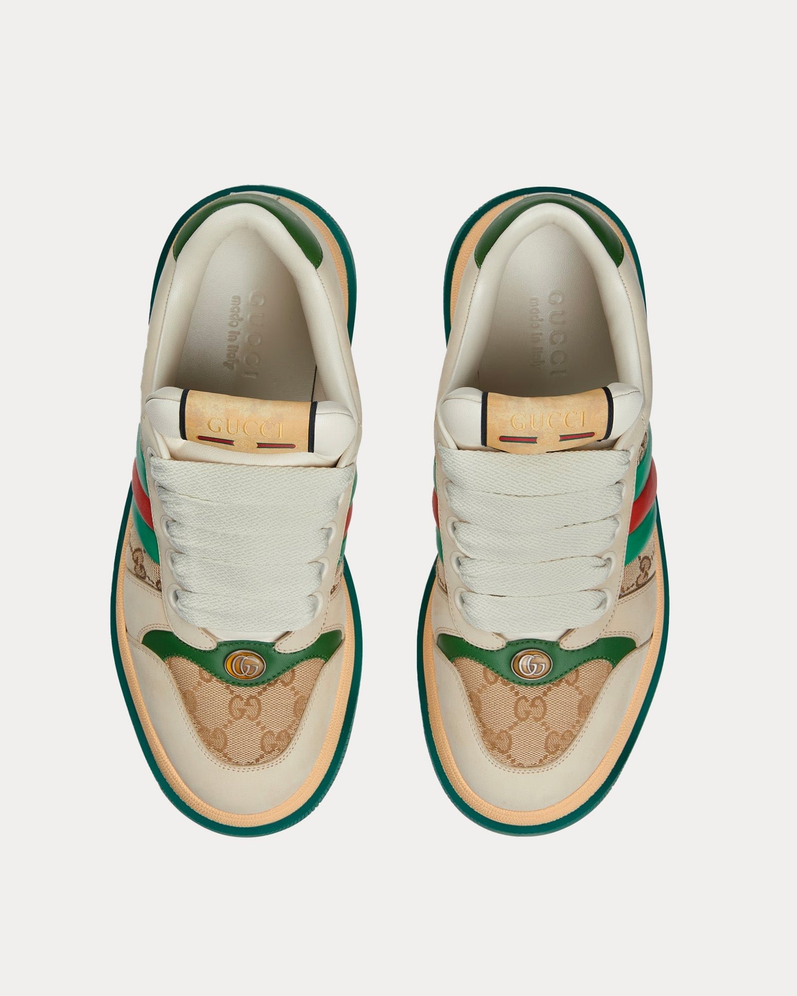 Baskets basses Gucci Screener avec bande Web et toile GG beige/vert