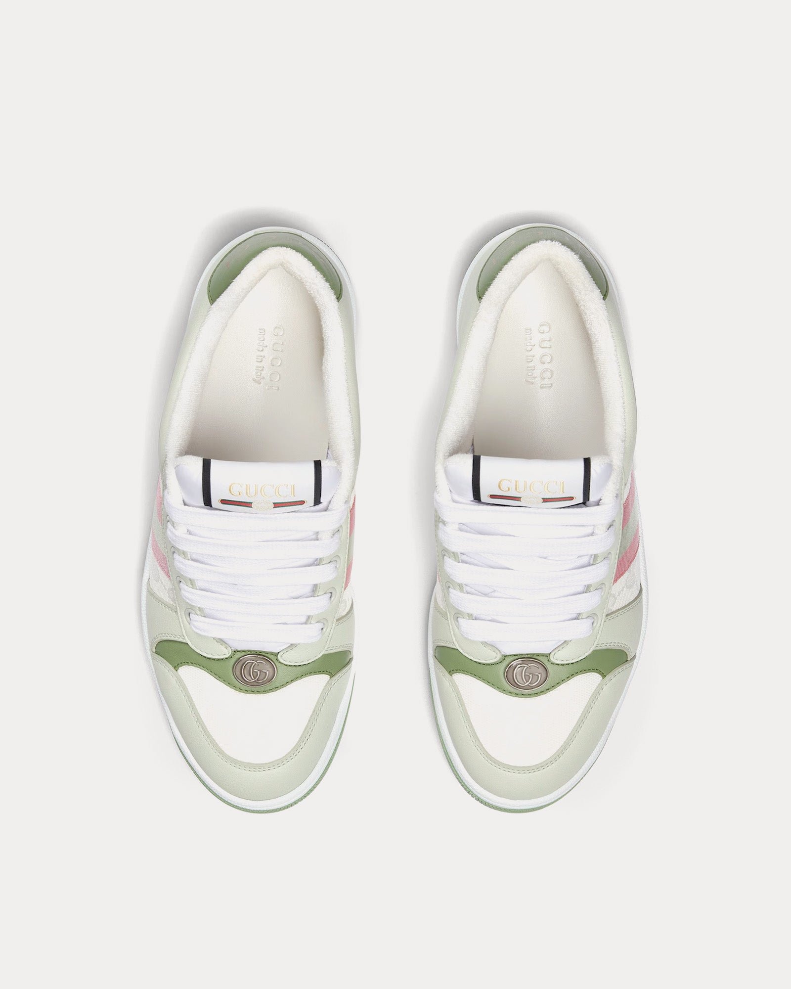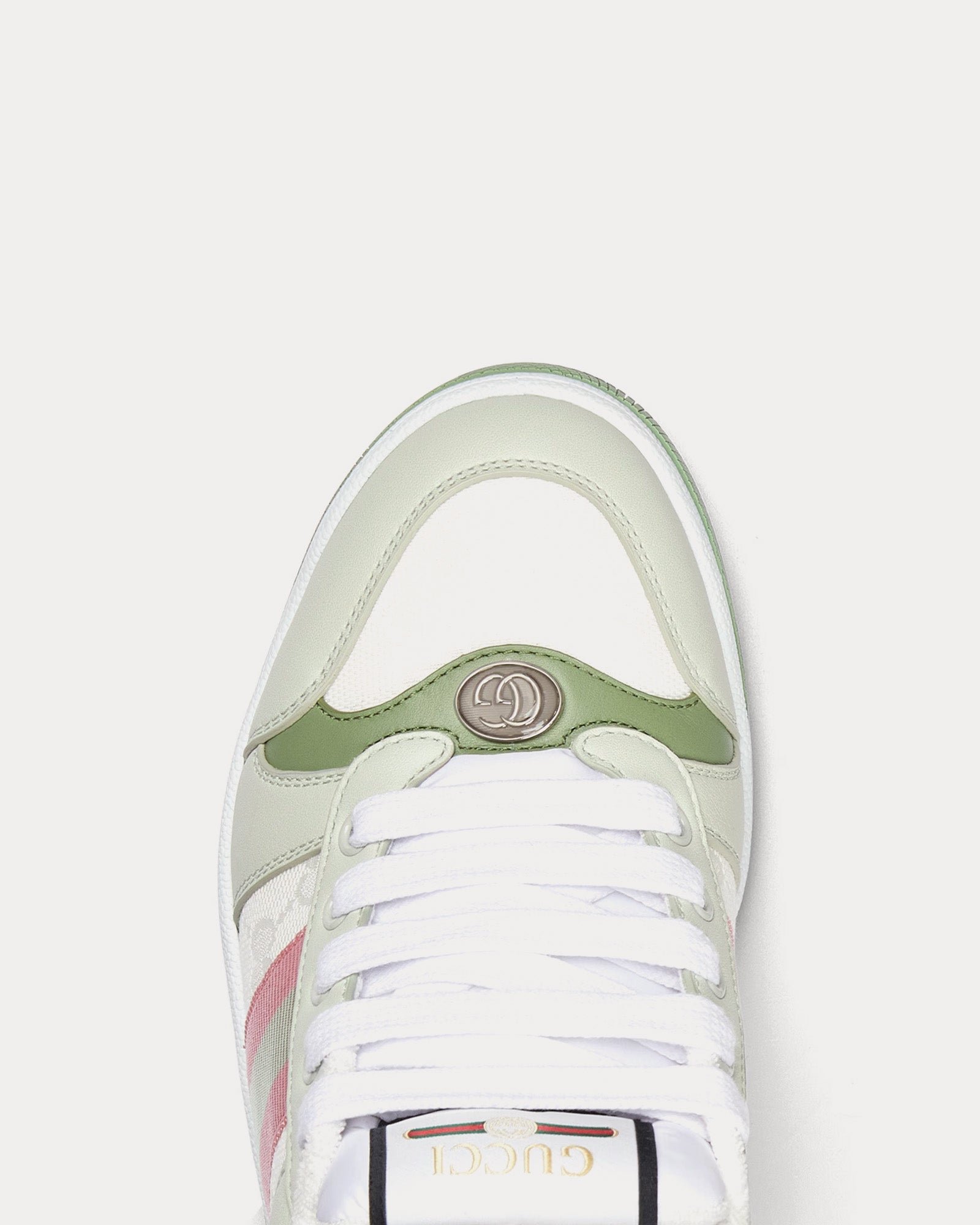 Baskets basses Gucci Screener avec bande Web, toile GG originale et cuir vert