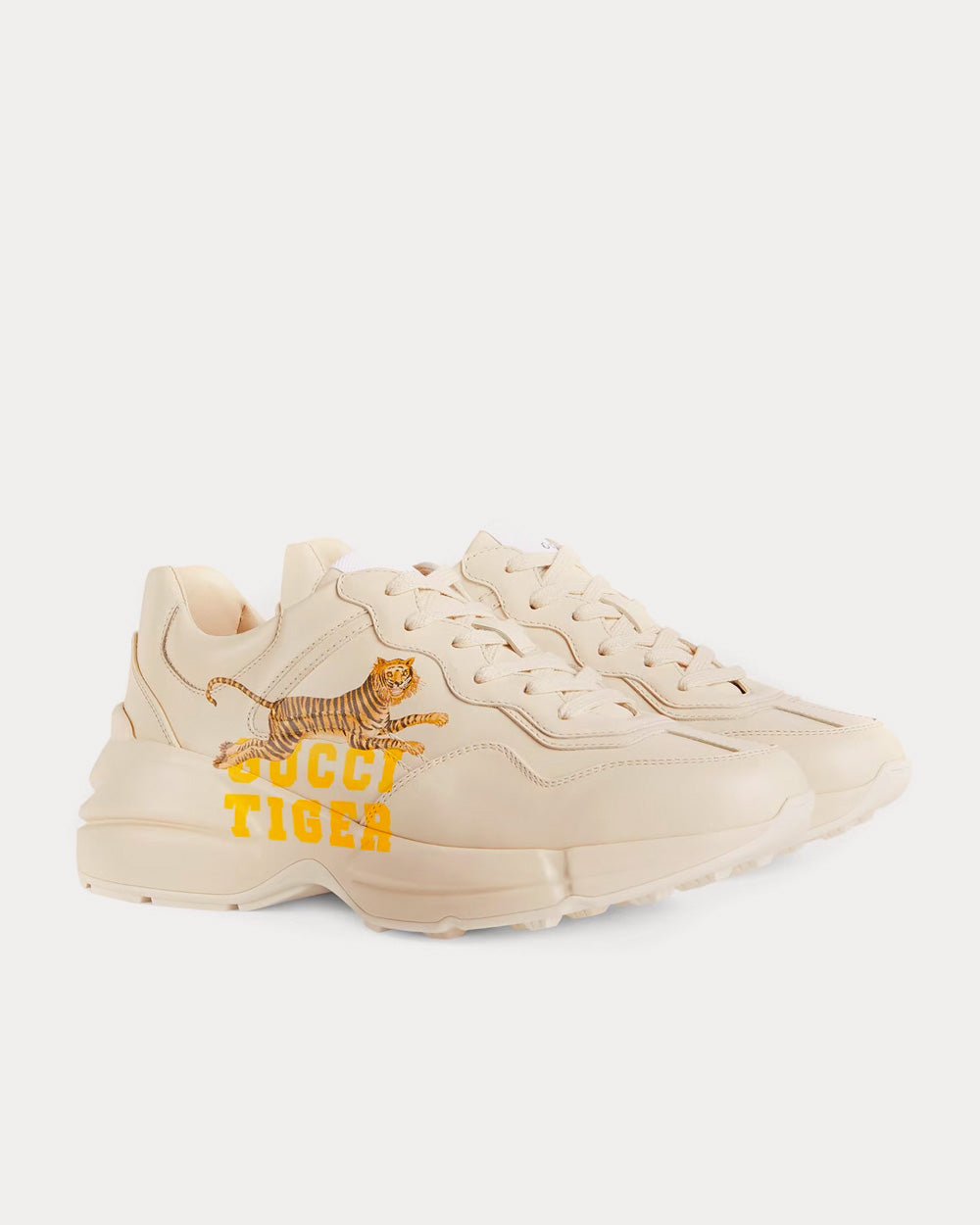 Baskets basses Gucci Tiger Rhyton en cuir ivoireBaskets basses Gucci Tiger Rhyton en cuir ivoire