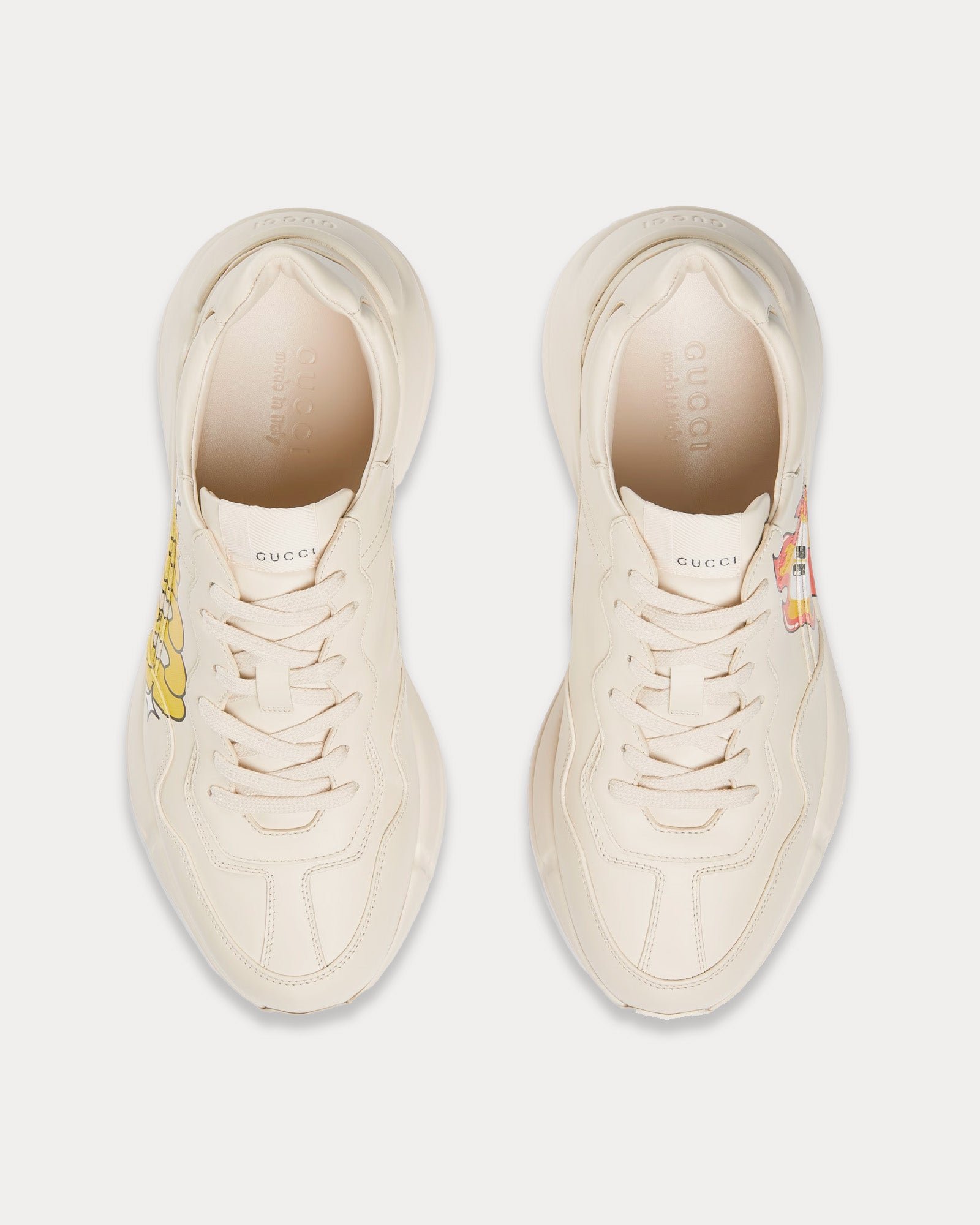 Baskets basses Rhyton en cuir blanc cassé avec sérigraphie Gucci x Hattie Stewart