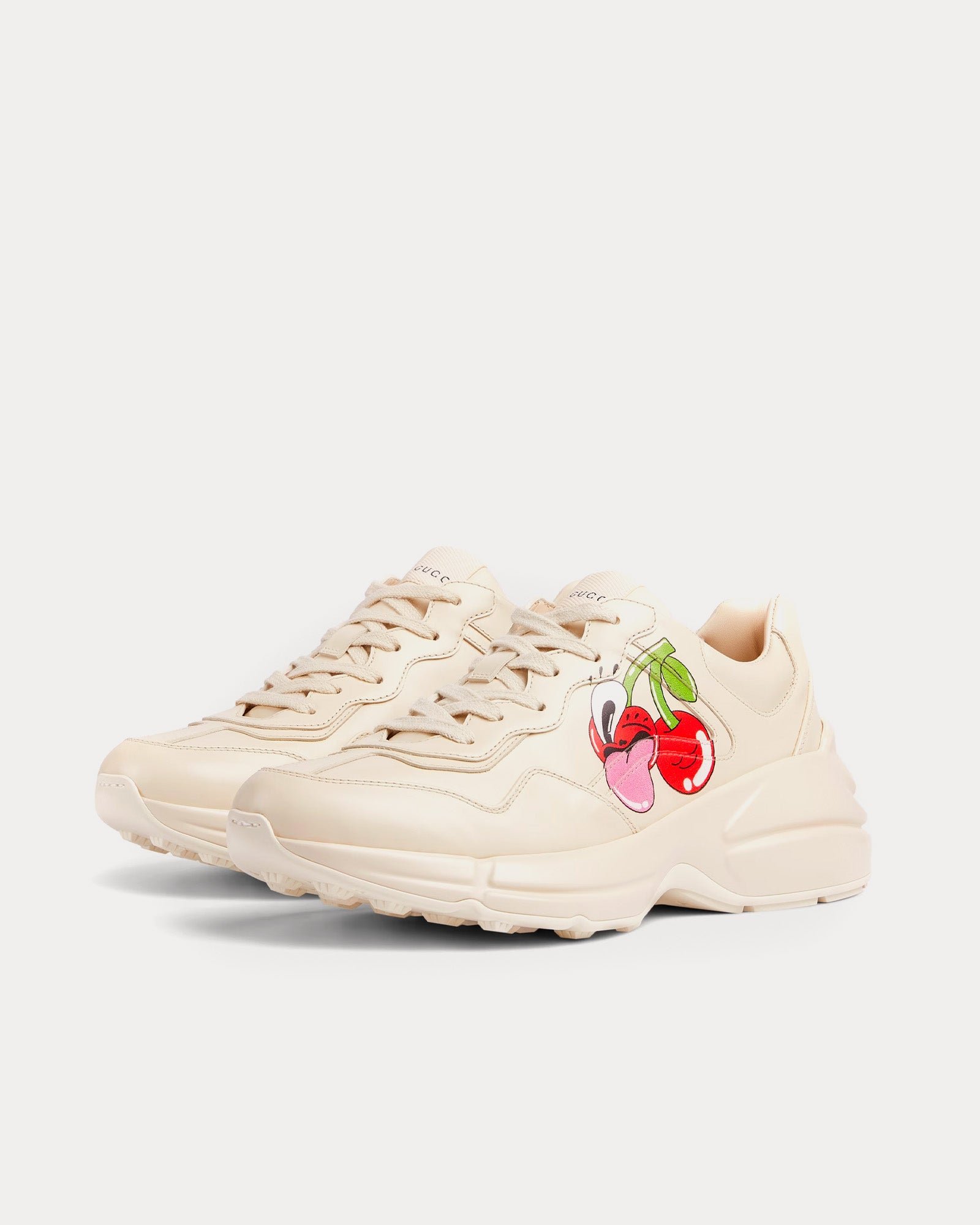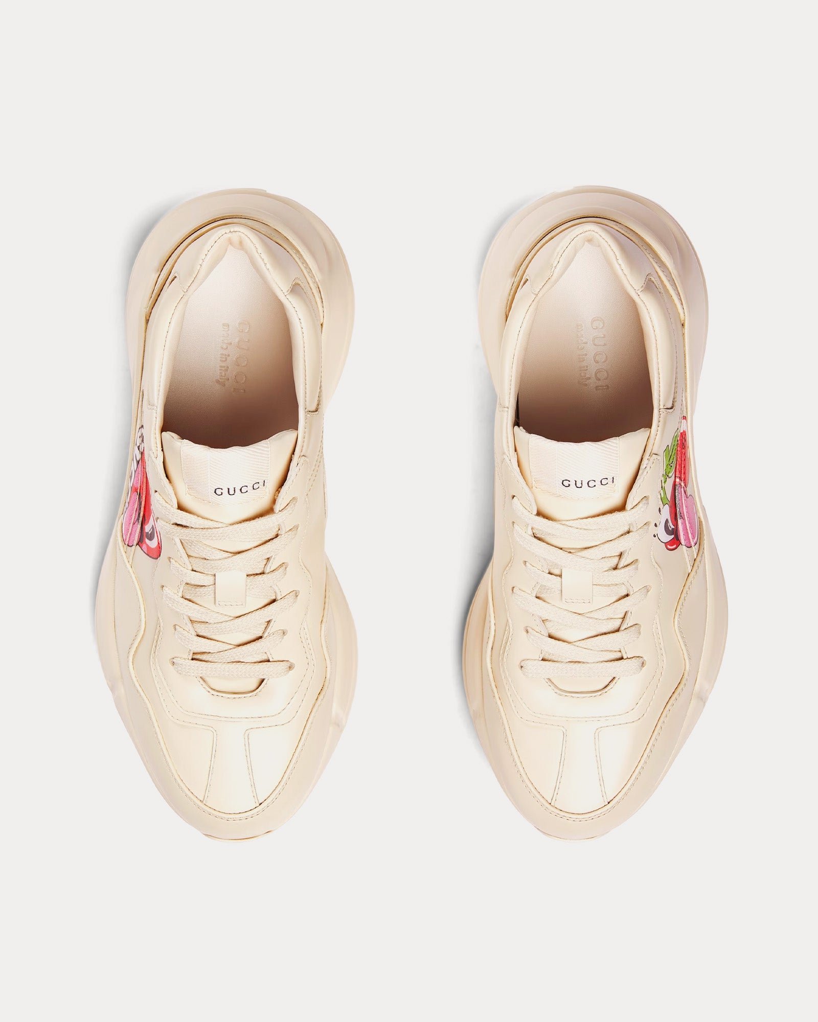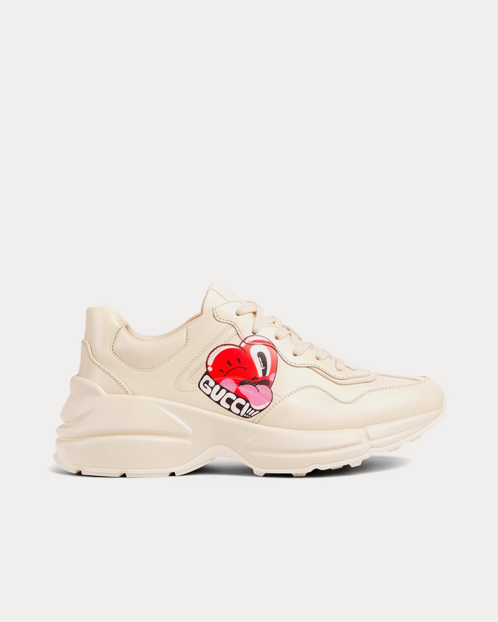 Baskets basses Rhyton en cuir ivoire avec cœur sérigraphié Gucci x Hattie Stewart