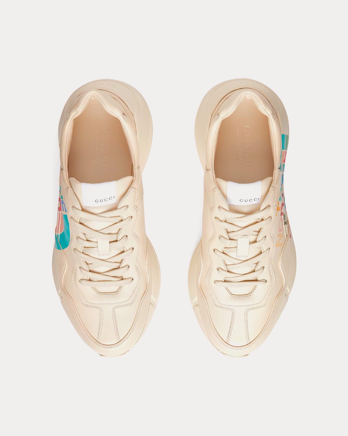 Cette paire de baskets Rhyton fait partie de la collection The North Face x Gucci, une collaboration entre deux marques partageant une histoire et des valeurs similaires, célébrant ainsi l’esprit d’exploration. Pour ce nouveau chapitre, le logo se décline en une version multicolore. The North Face possède une riche collection qui innove et repousse les limites en créant des modèles aux détails uniques et distinctifs.