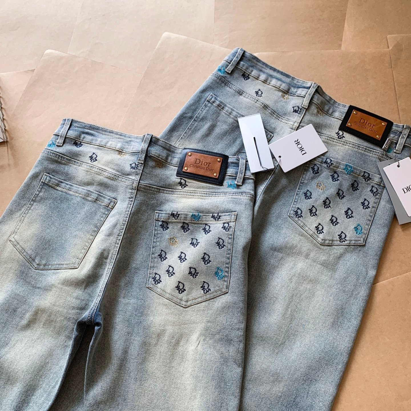 - Un logo oblique brodé sur la poche arrière droite, symbole de l’excellence de la marque Dior