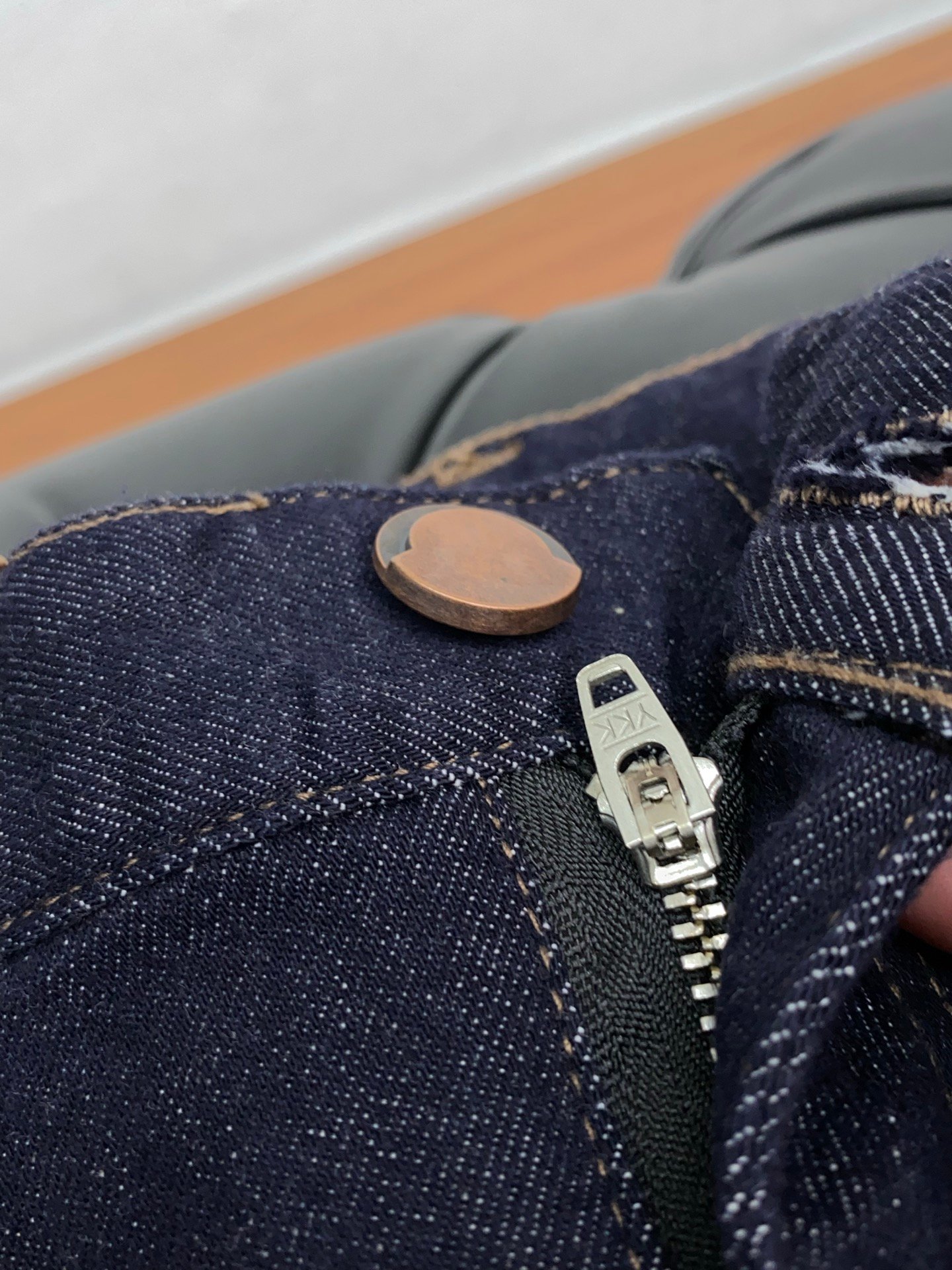 Confectionné dans un denim brut premium, ce pantalon affiche une coupe droite légèrement ajustée, idéale pour un look moderne et épuré.