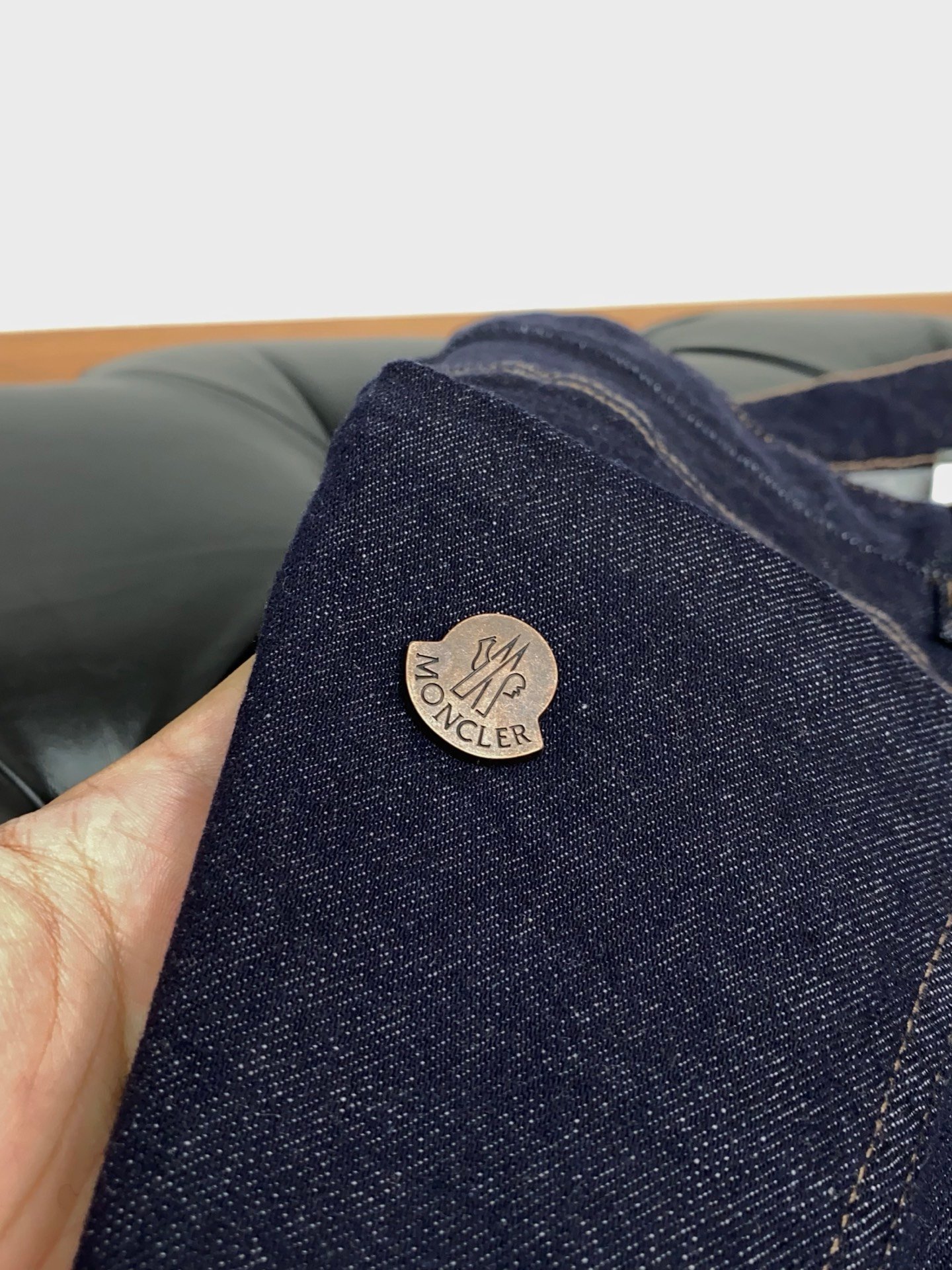 Discret mais raffiné, le logo Moncler en métal bronze est apposé sur la poche arrière, ajoutant une touche de luxe subtile. Ce jean s’associe facilement à une chemise ou un pull pour un style chic et décontracté, parfait pour toutes les saisons.