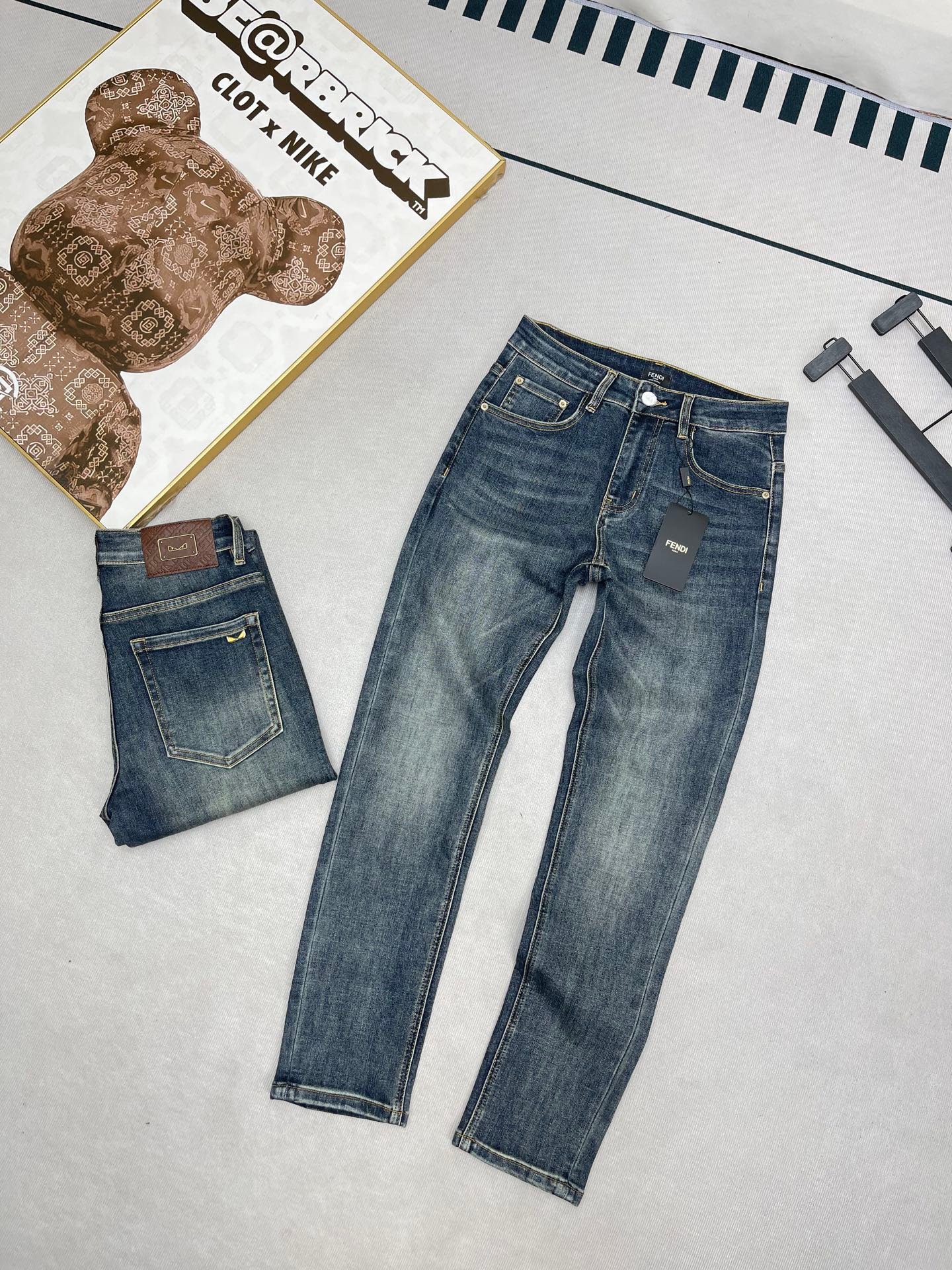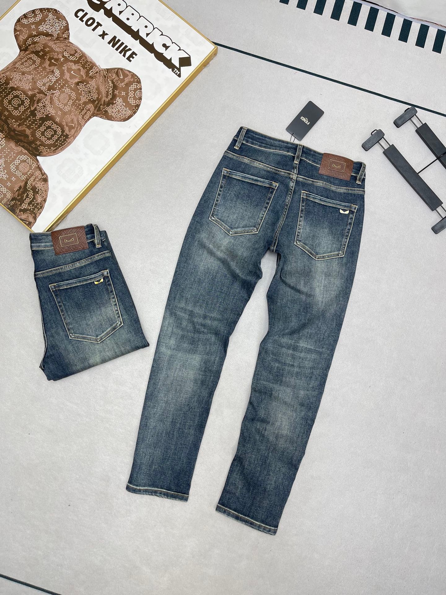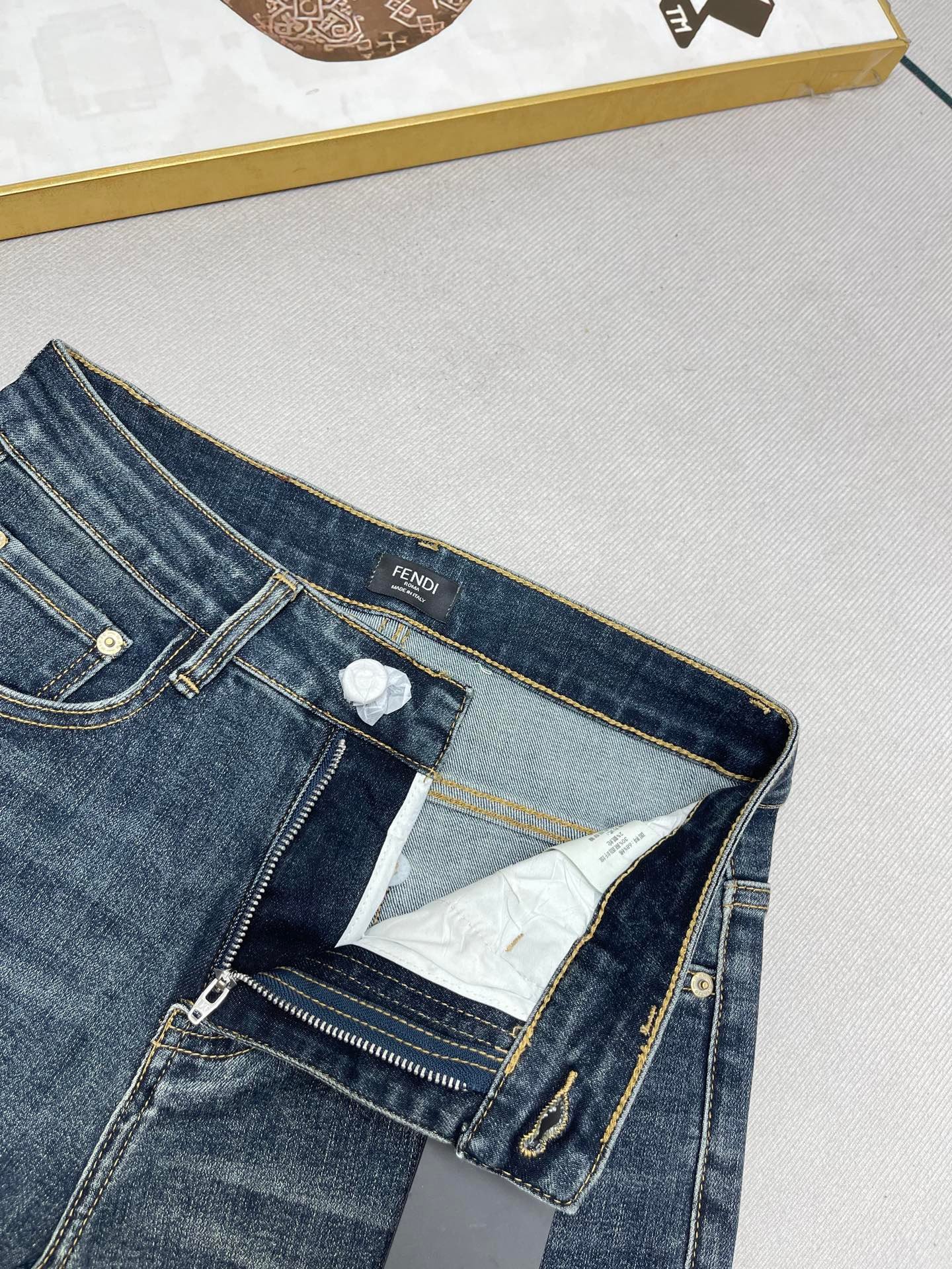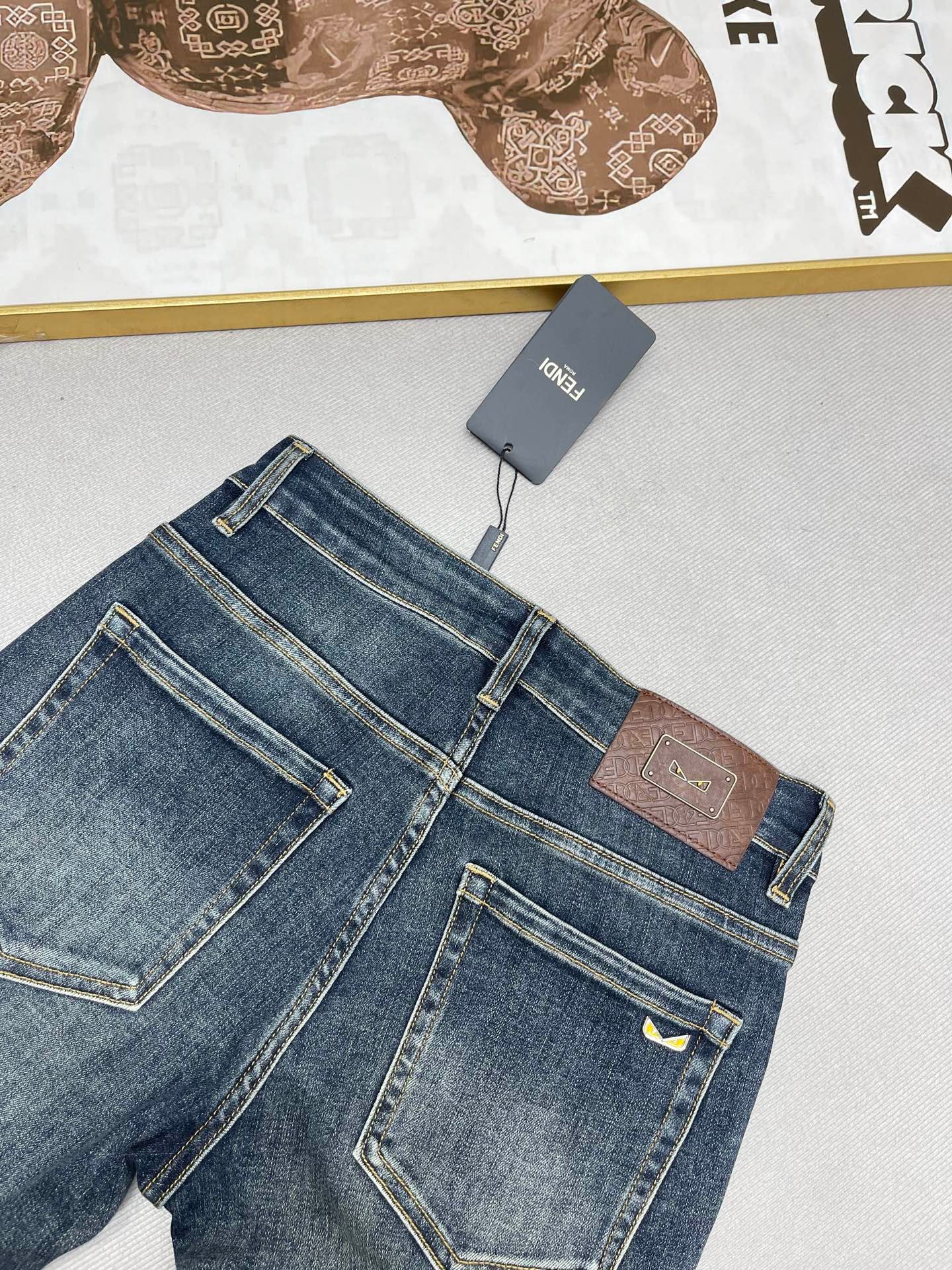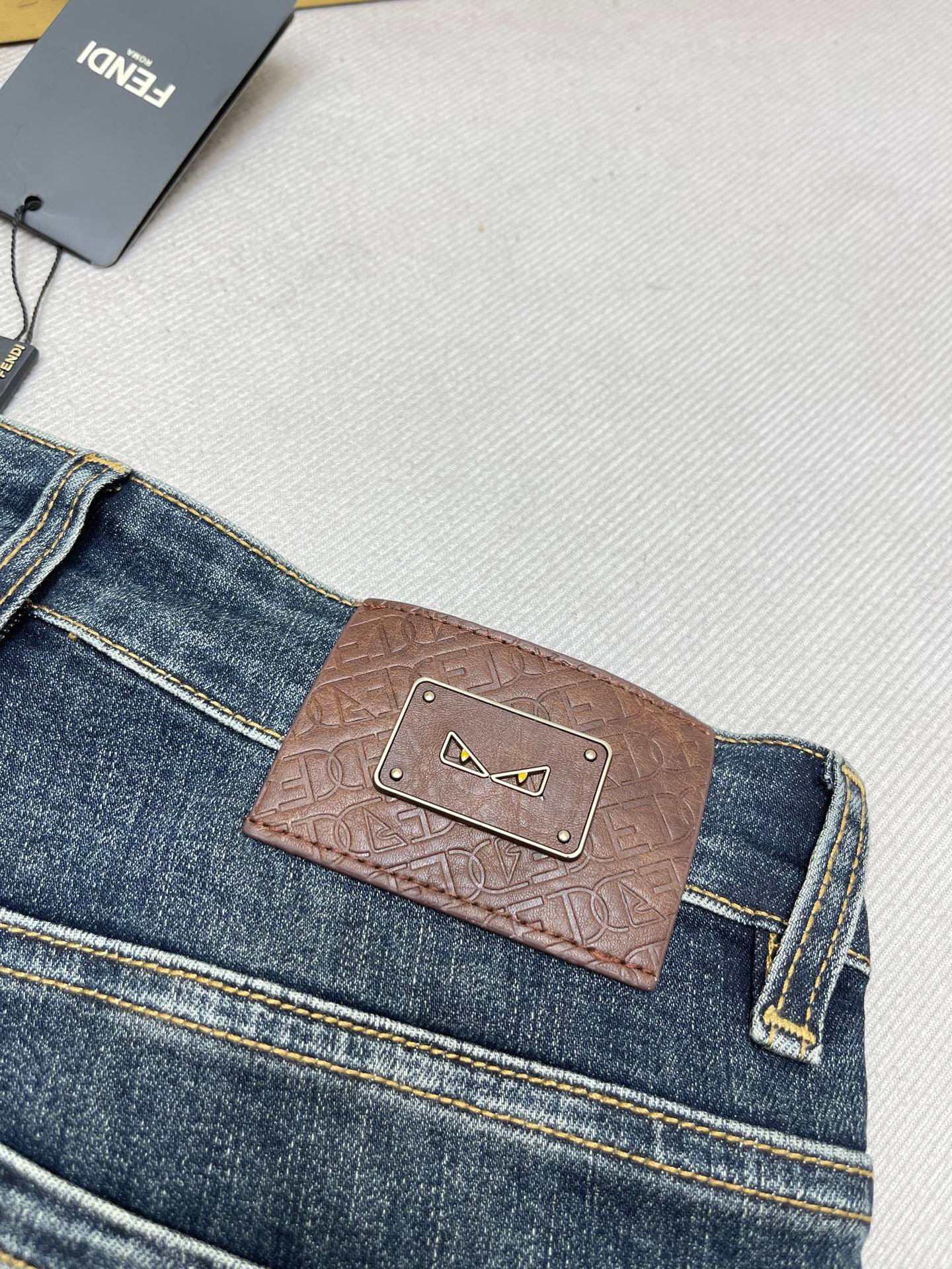 Les finitions précises, les surpiqûres contrastantes et la plaque Fendi au dos témoignent du savoir-faire luxueux de la maison italienne. Ce jean polyvalent se porte aussi bien avec un t-shirt décontracté qu’avec une chemise pour un look plus habillé.
