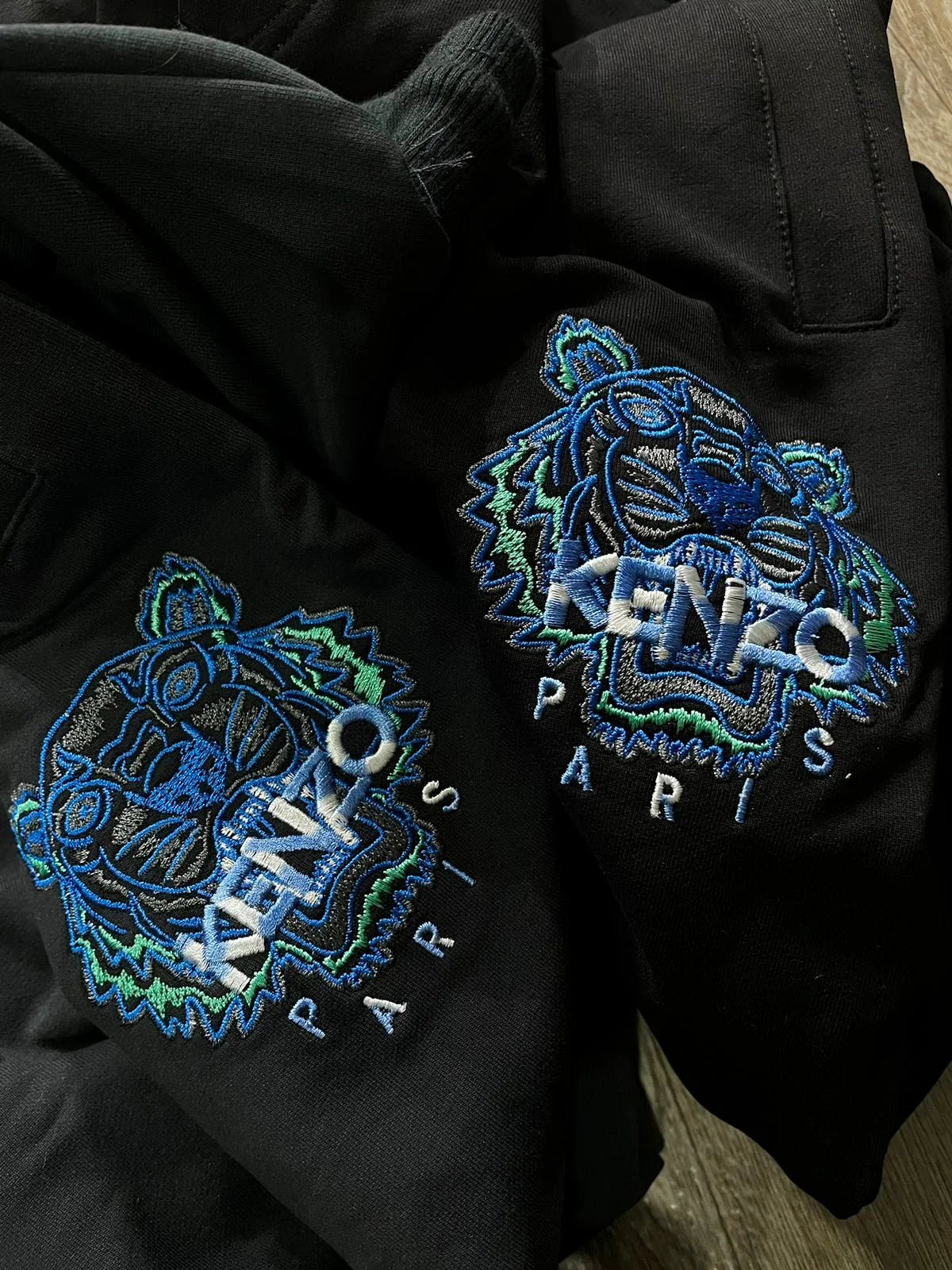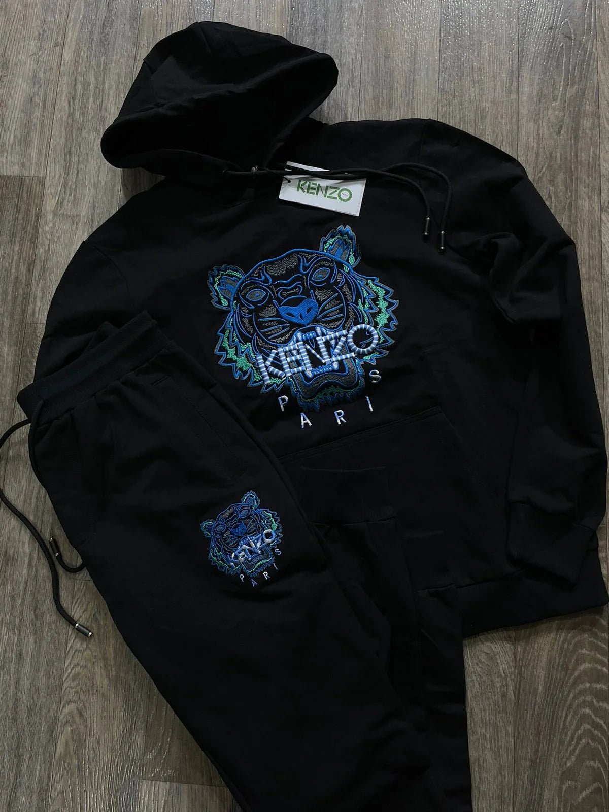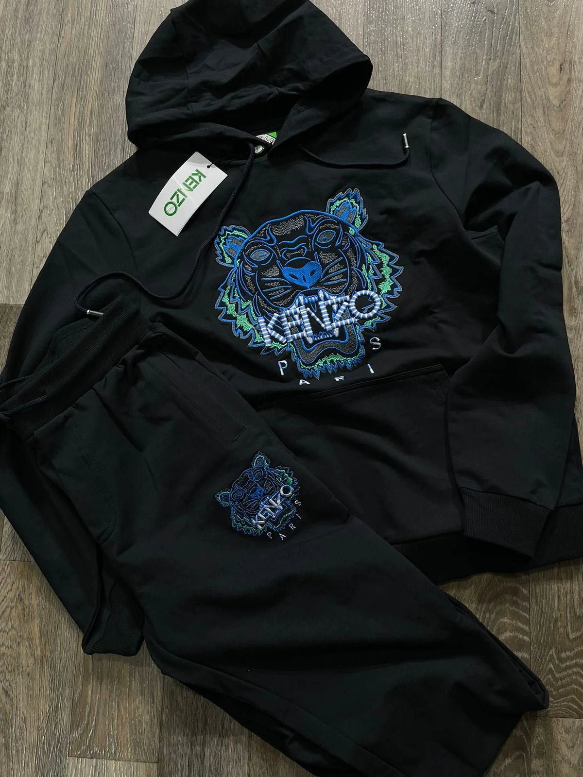 KENZO || Survêtement à capuche motif tigre embossé noir/bleu/blanc