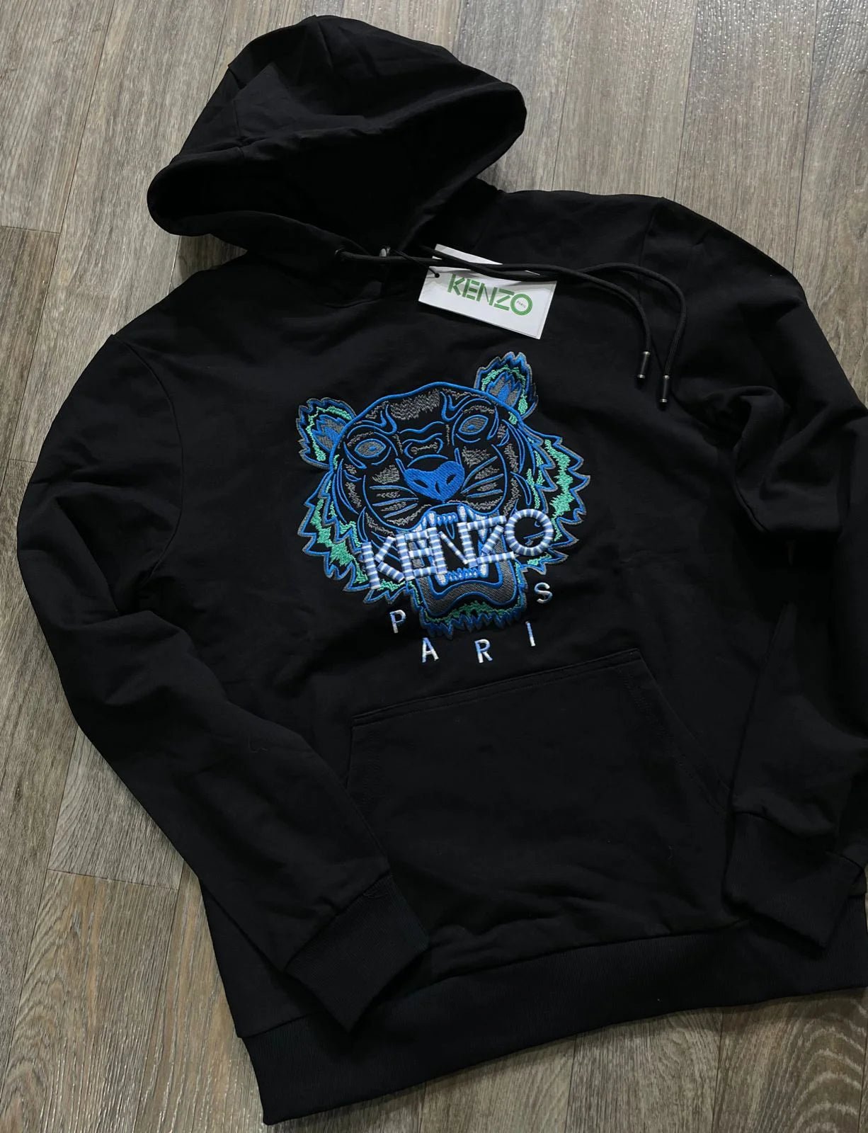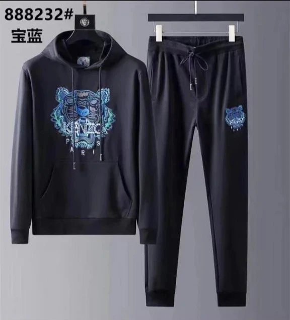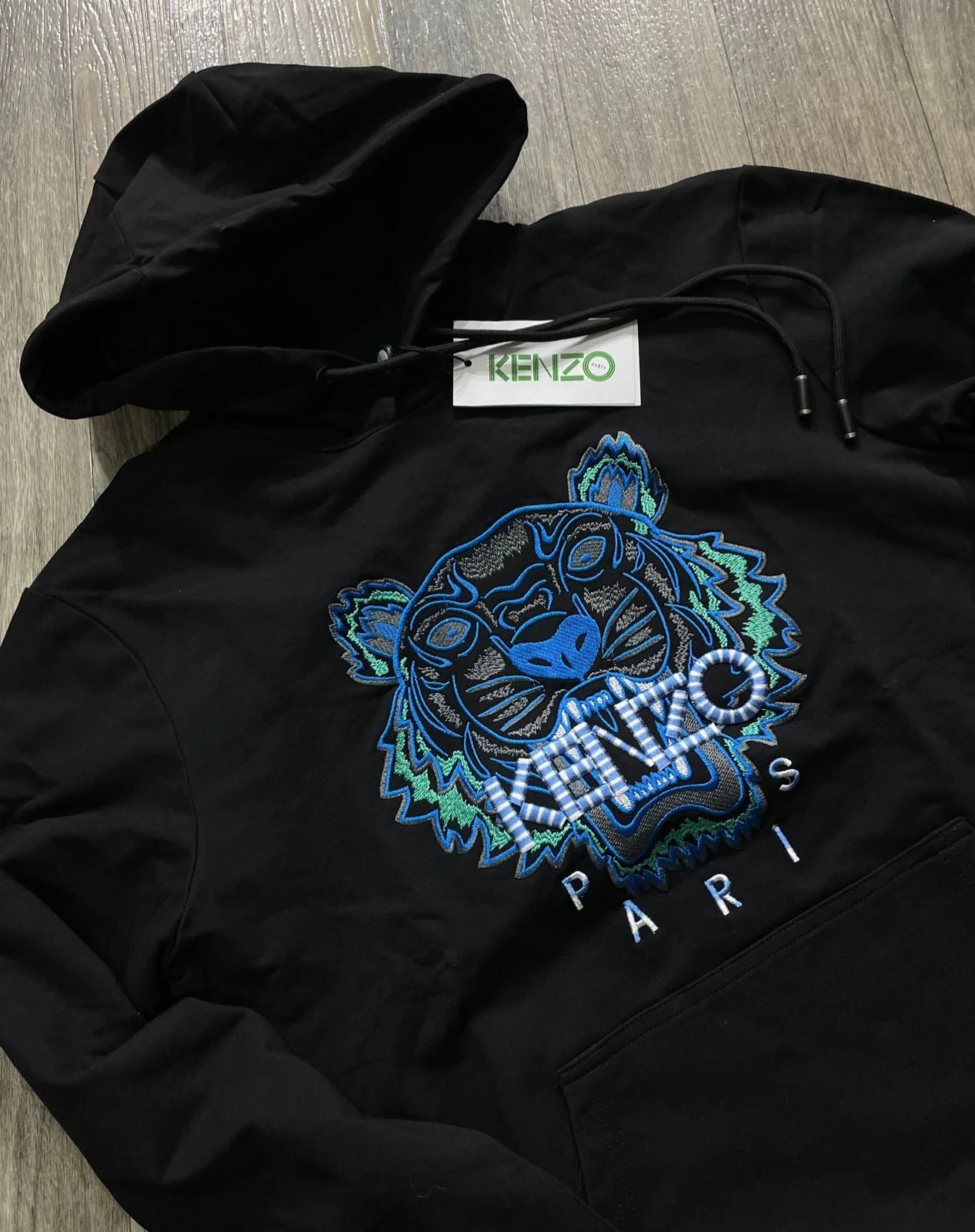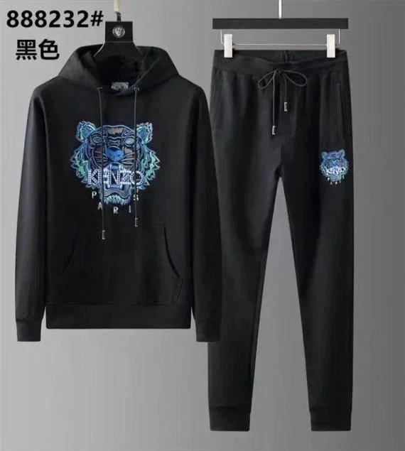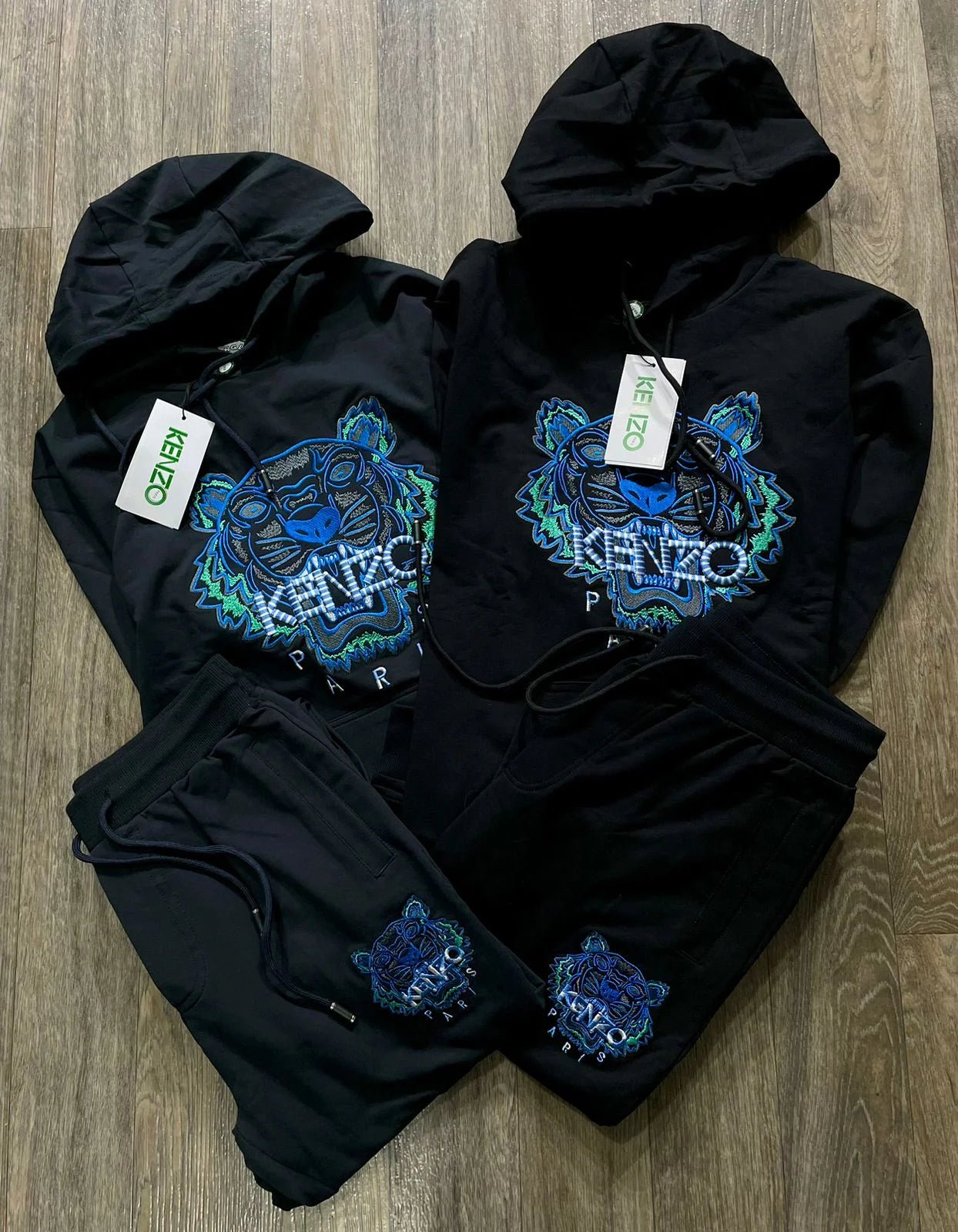 KENZO || Survêtement à capuche motif tigre embossé noir/bleu/blanc