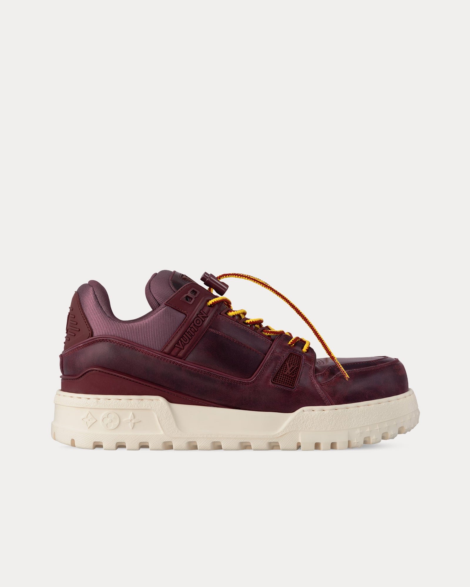 Baskets basses LV Maxi Trainer en cuir de veau bordeaux rouge