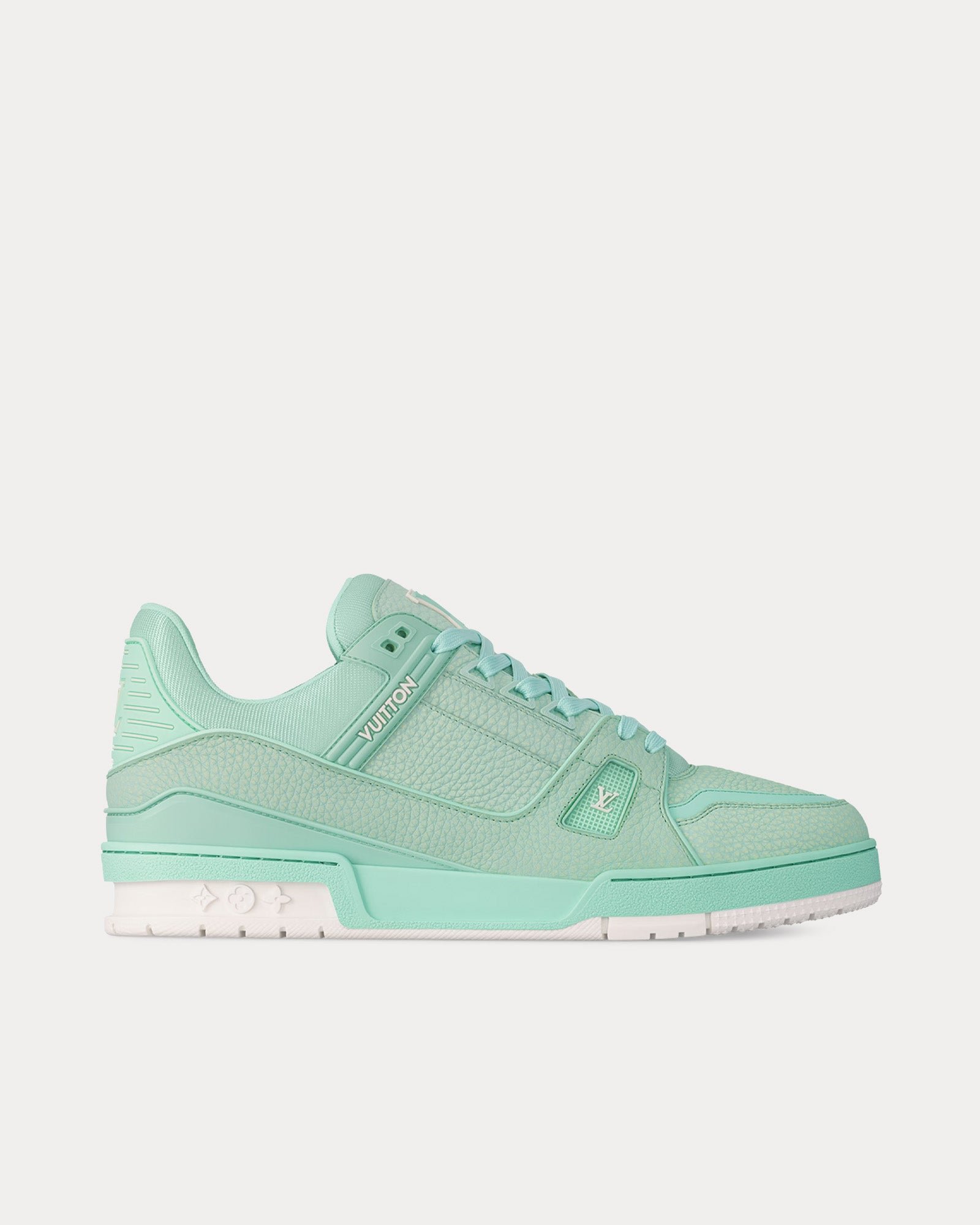 Baskets basses LV Trainer en cuir de veau grainé vert pastel
