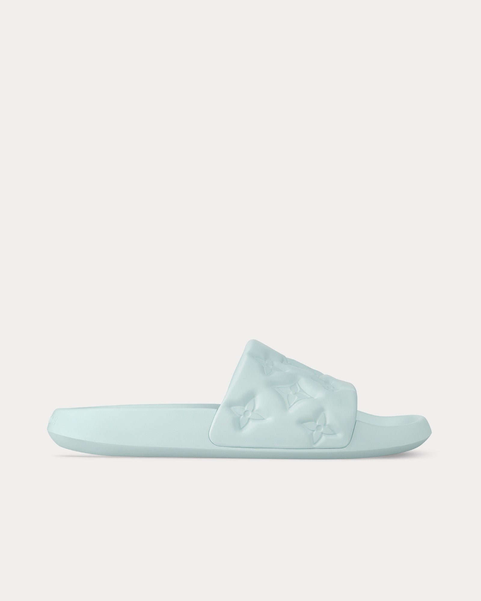Les mules Waterfront pour homme Louis Vuitton Waterfront de couleur vert d’eau sont fabriquées en caoutchouc imperméable et présentent un monogramme en relief sur la tige, des semelles intérieures anatomiques pour plus de confort, des semelles extérieures légères et flexibles et des brides avant. Fabriquées en Italie.